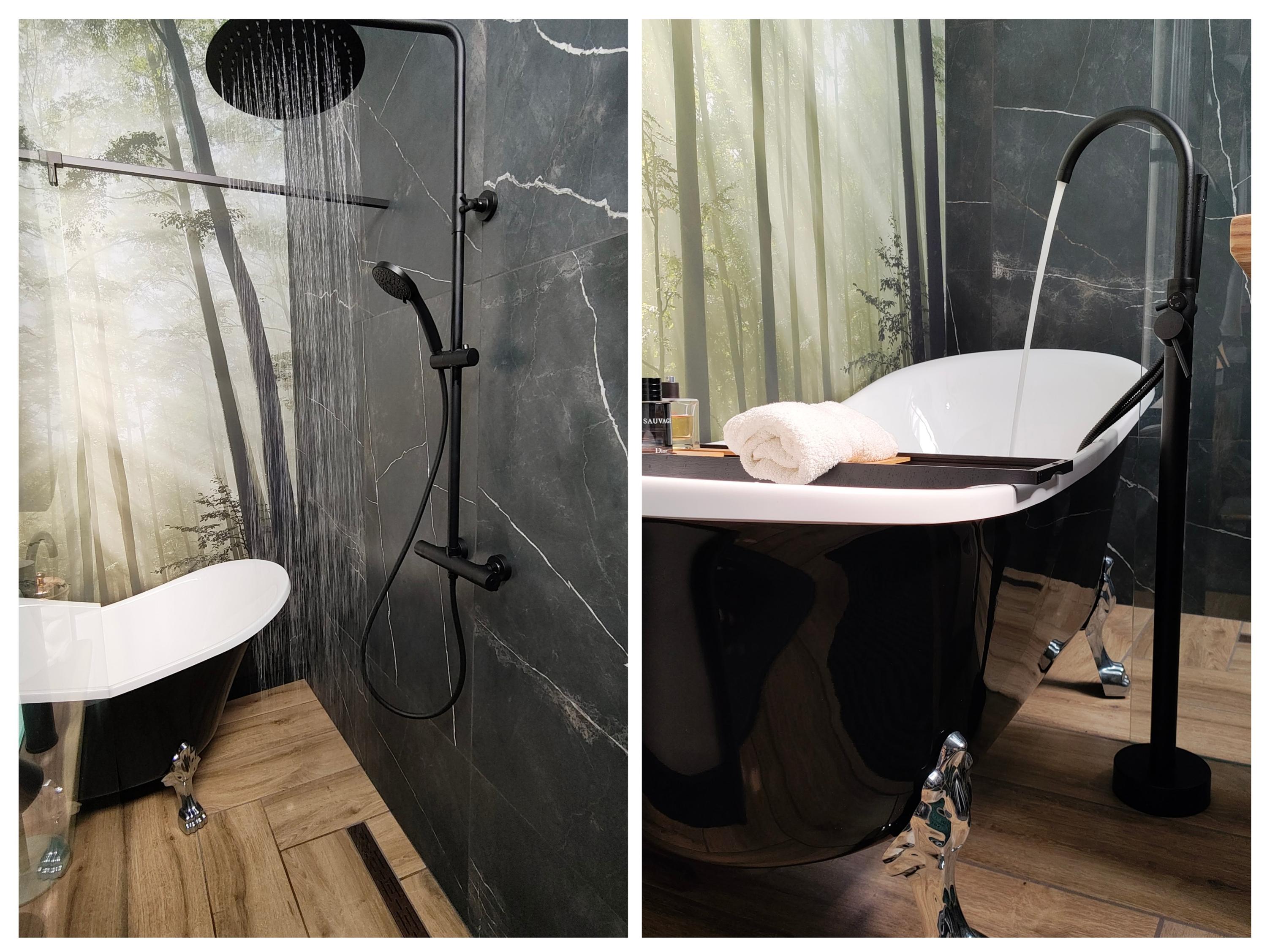 The master bedroom exudes grandeur, with mahogany parquet flooring, elegant period details, and direct access to the garden. A second room on this level – currently used as a study – also opens onto the garden through French doors. Both luxurious bathrooms are fitted with a freestanding bathtub, walk-in rain shower, and double sinks, finished with high-end materials and chic herringbone floor tiles.
