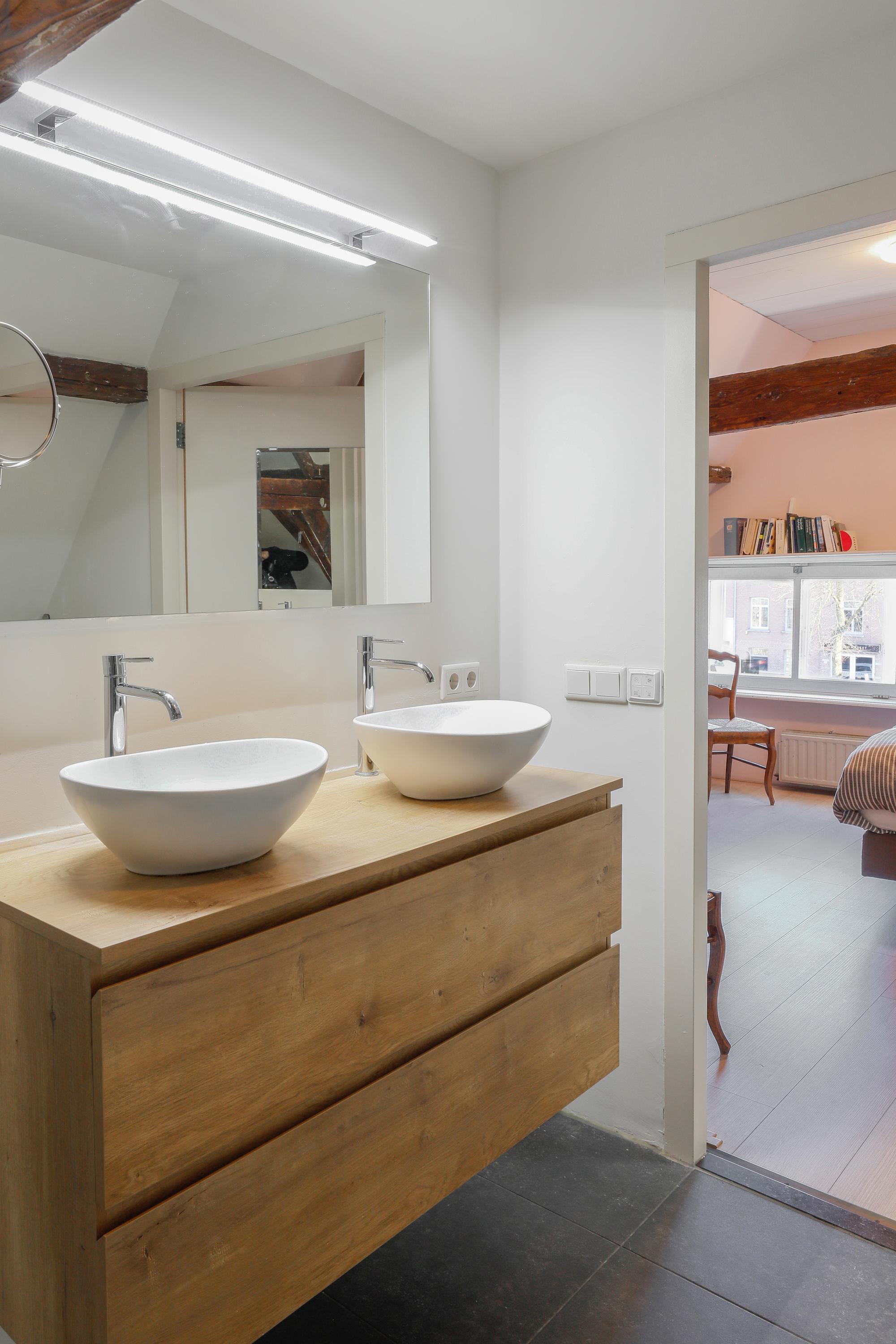 Live in one of the most beautiful locations in Den Bosch's city center, with water at both the front and back. This charming townhouse, dating from around 1670, features two living rooms, two roof terraces, a private garage, an elevator, and a beautiful view of the Brede Haven.