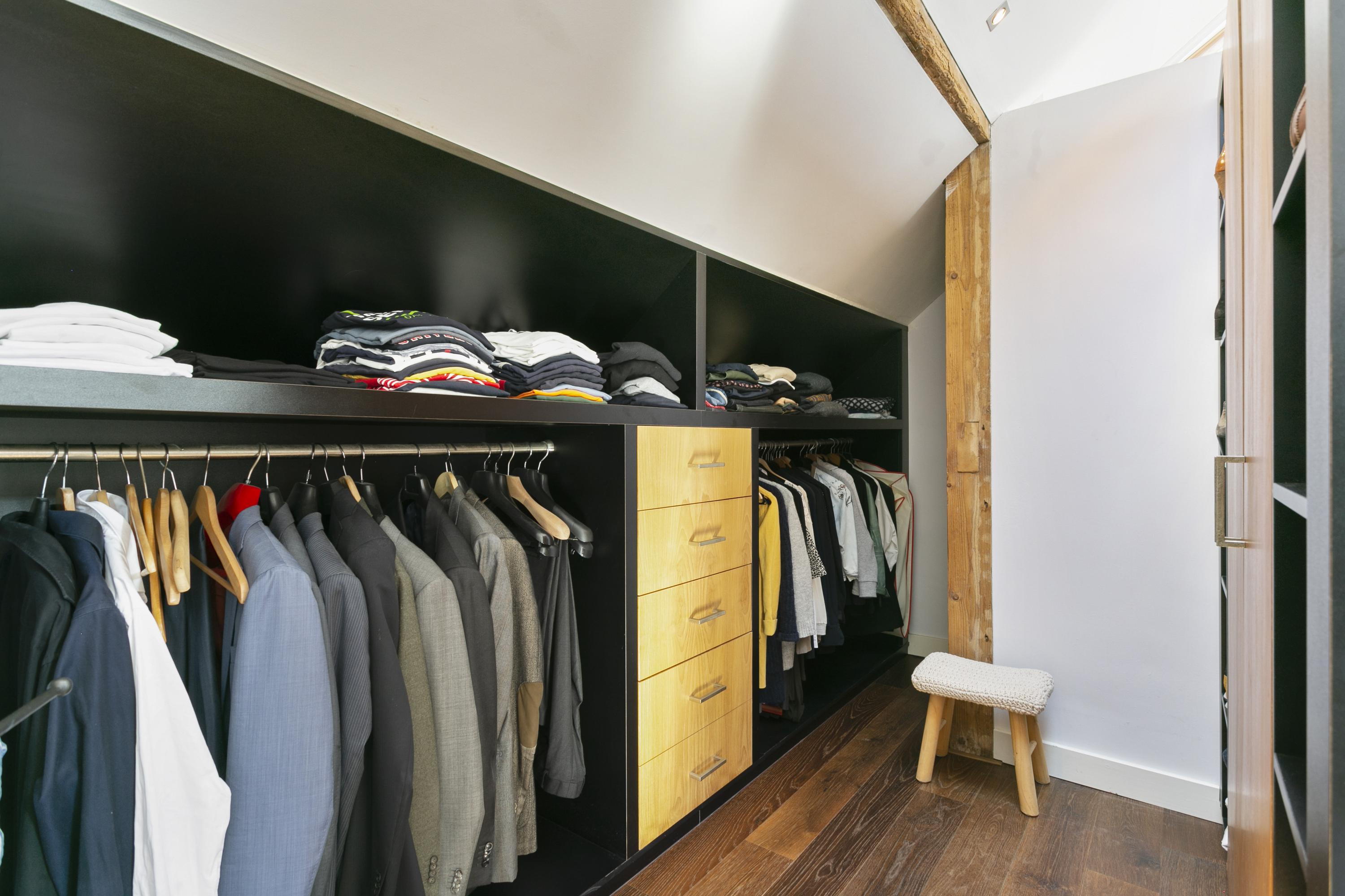 To the right is the master bedroom (50 m²), with a spacious walk-in closet and a beautiful bathroom with bathtub, WC, 2 sinks and walk-in shower. On both sides lots of extra storage space.