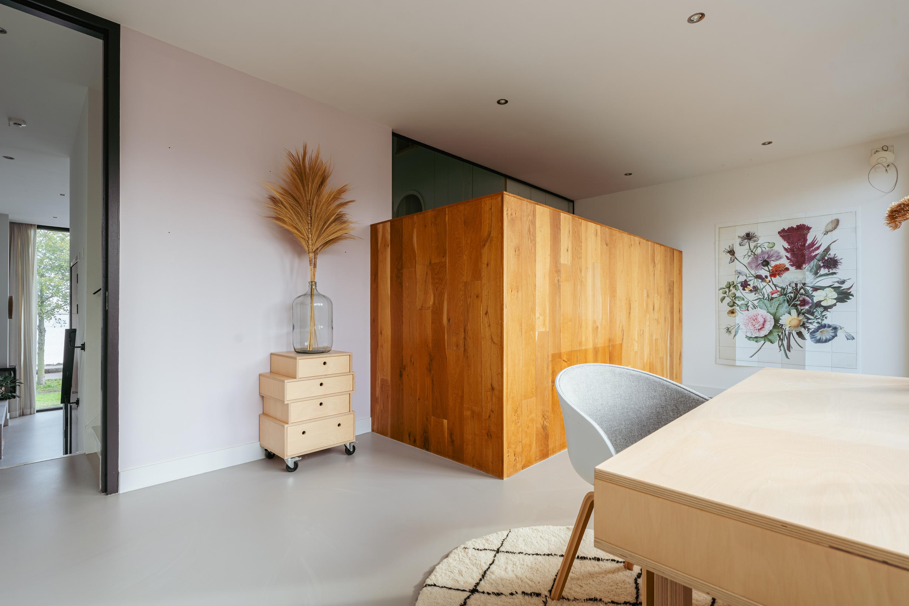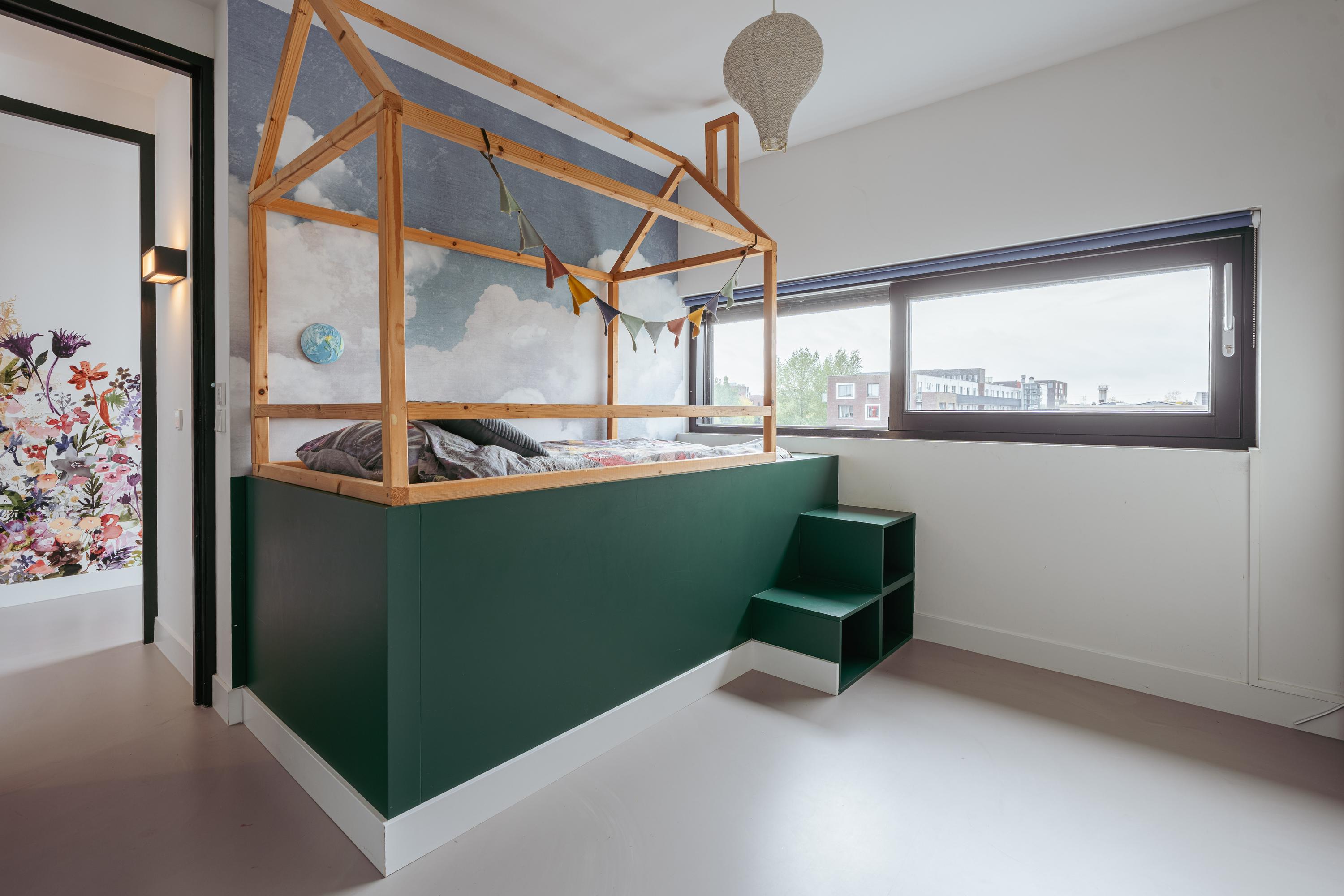 Via the staircase from the first floor, you reach a split-level area currently designed as a unique children’s play area with an open view of the living room below. This creative space is a true eye-catcher and highlights the family-friendly character of the home.