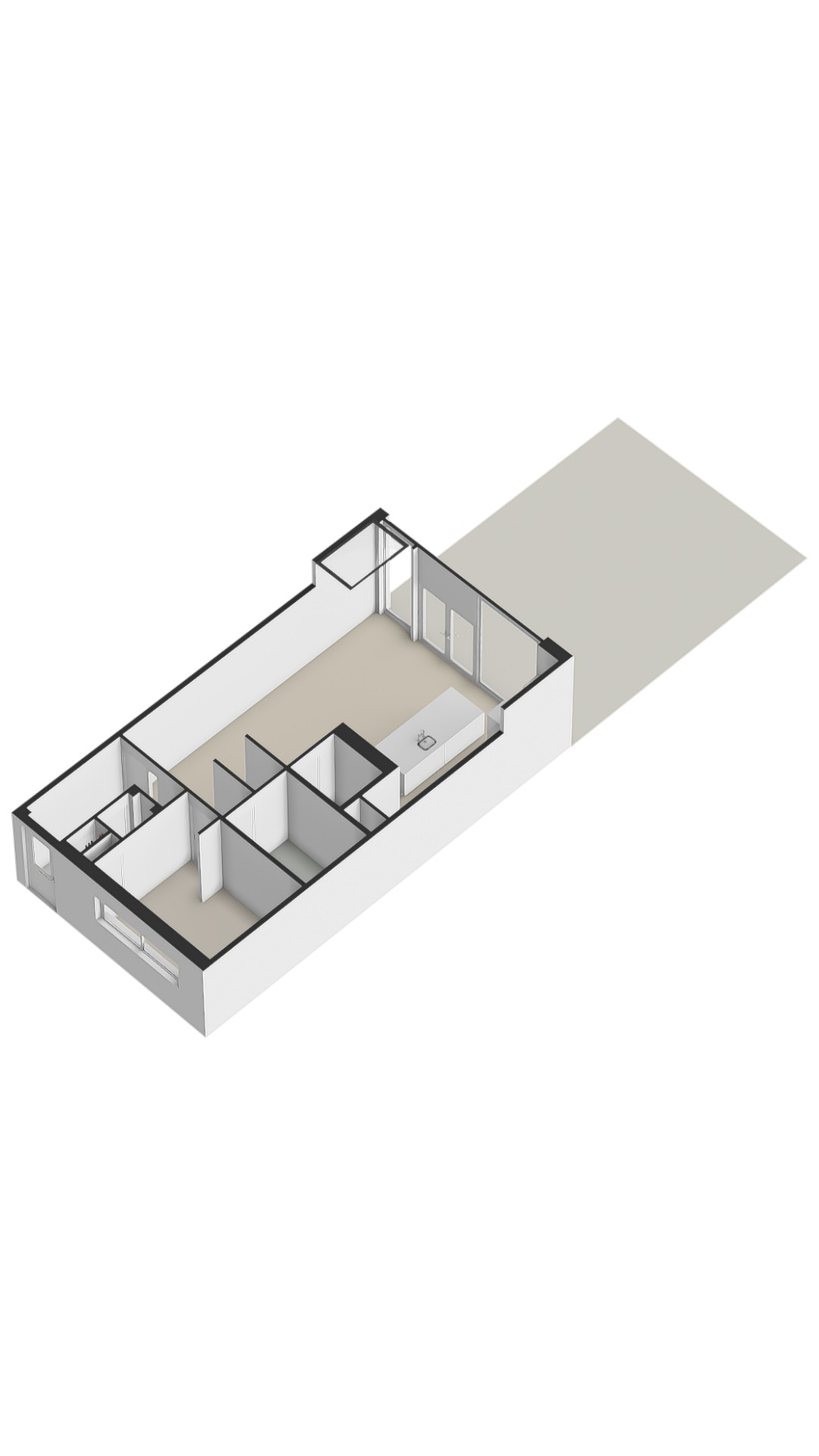 A welcoming entrance hall with a separate guest toilet leads to a spacious room at the front — ideal for working from home or as an additional bedroom. At the rear, the expansive living kitchen impresses with high ceilings and floor-to-ceiling windows overlooking the garden, creating an abundance of light and a sense of openness.