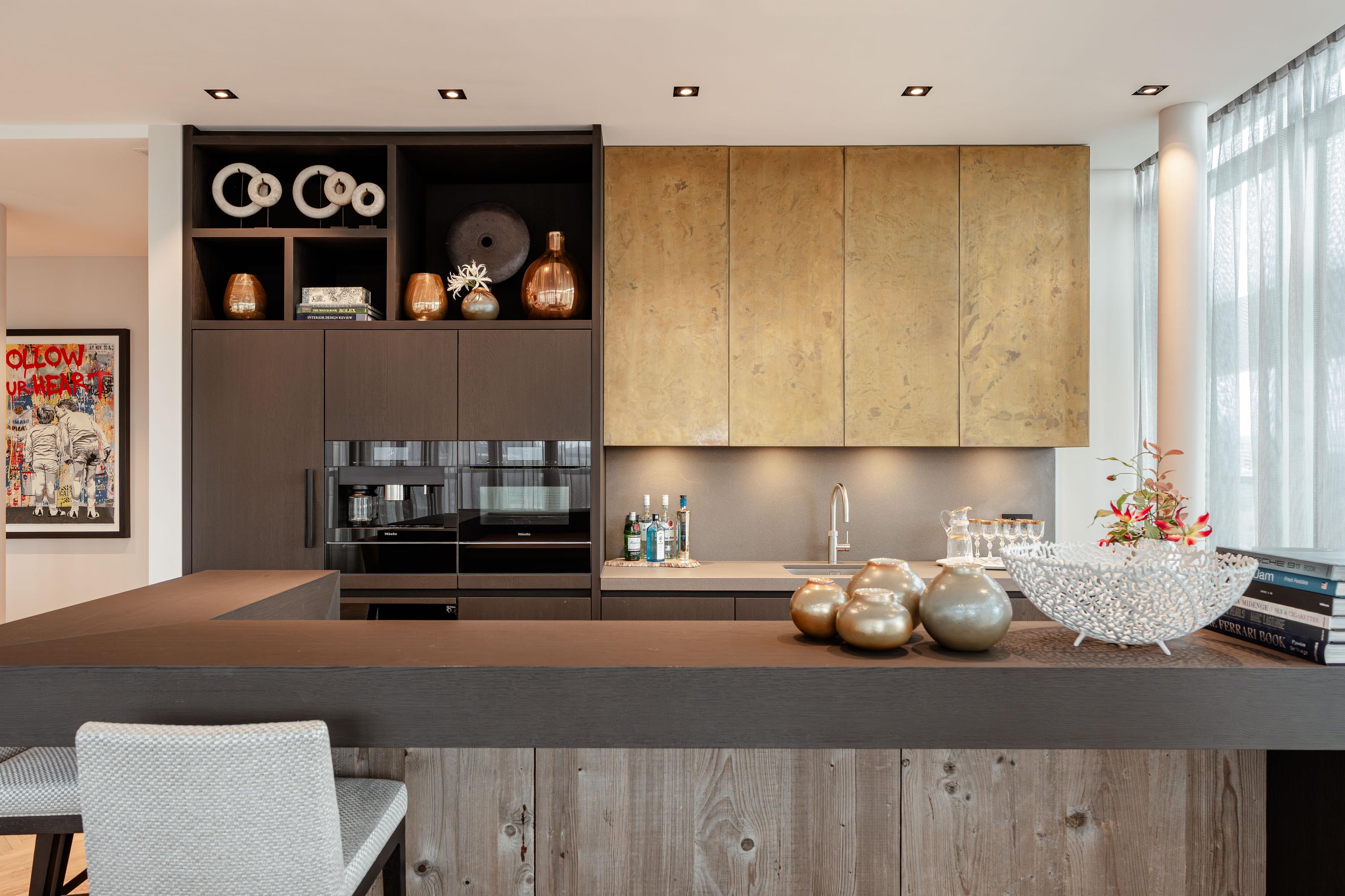 The open-plan kitchen with cooking island forms the heart of the home. Fully equipped with premium Miele appliances, including a wine cooler, steam oven, and coffee machine, it flows into the dining area and the large terrace, where you can enjoy a truly unique view over Dam Square.