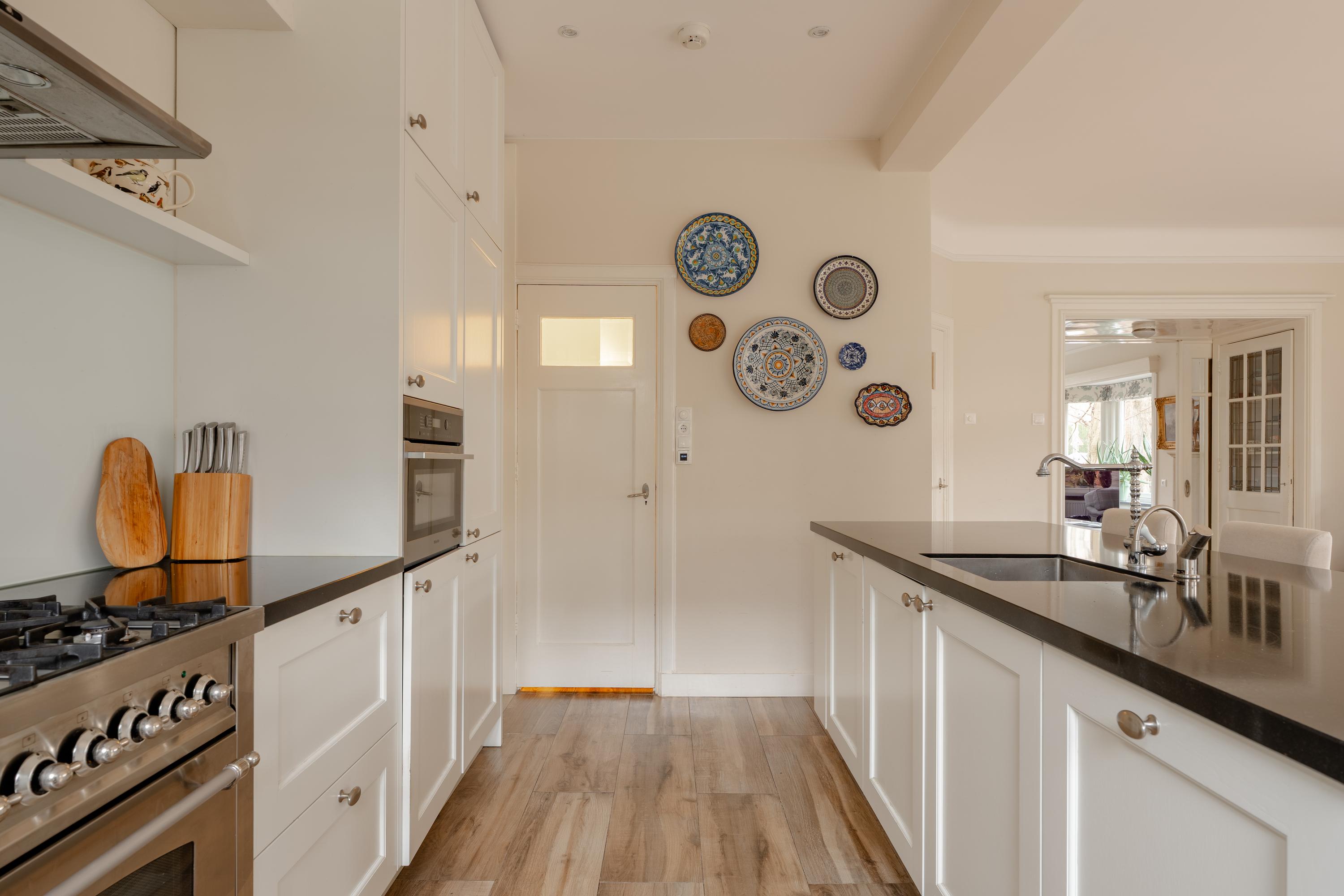 From the living room you enter the generous dining room, which connects to the semi-open kitchen. The kitchen is equipped with various built-in appliances including a dishwasher, Quooker and microwave. In addition, the kitchen features a large gas stove with oven. From the kitchen there is also access to the spacious basement.