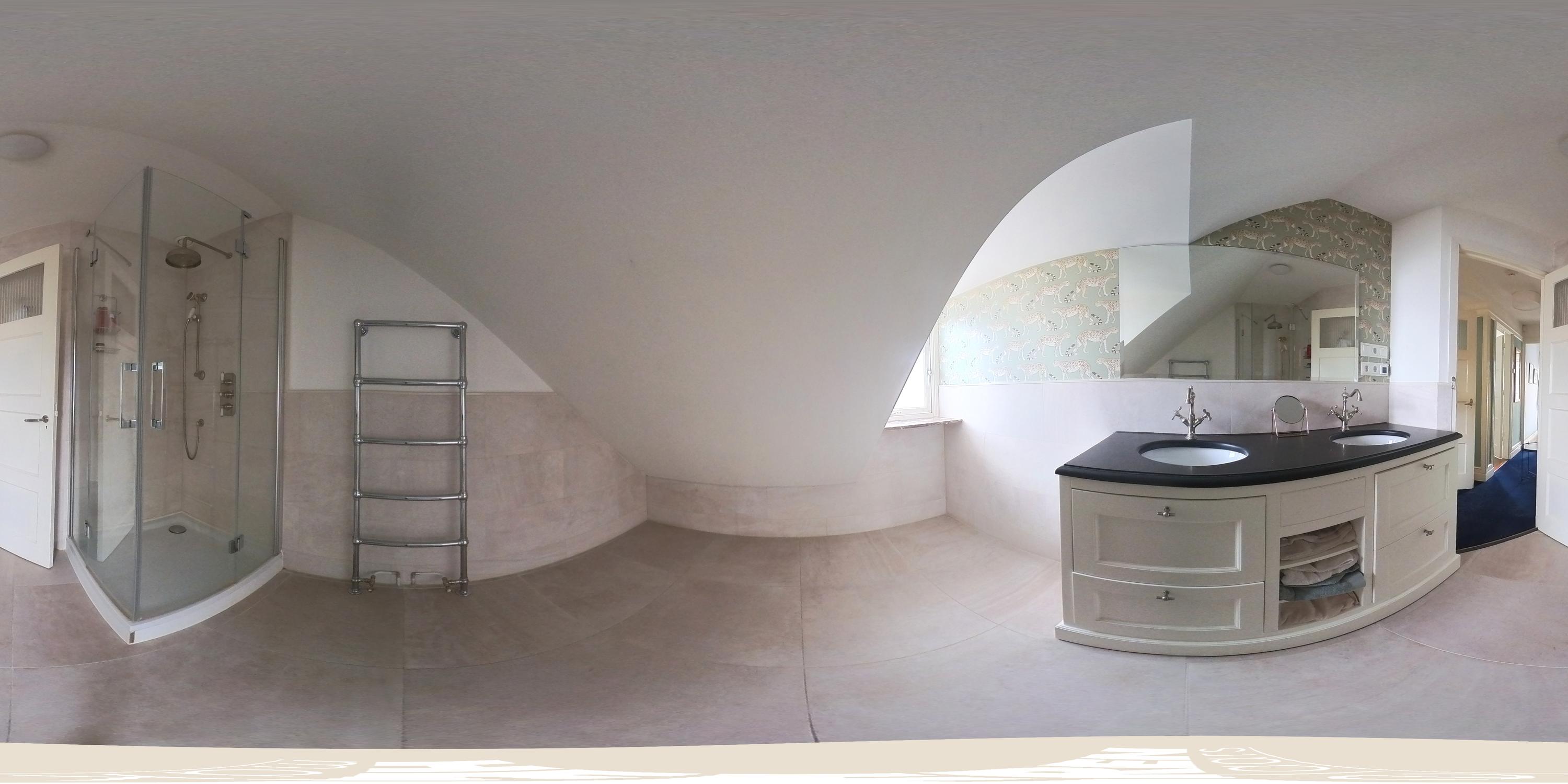 At the front of the house there is a third bedroom. The bathroom on this floor is equipped with a double washbasin with vanity, a spacious walk-in shower and a towel radiator.