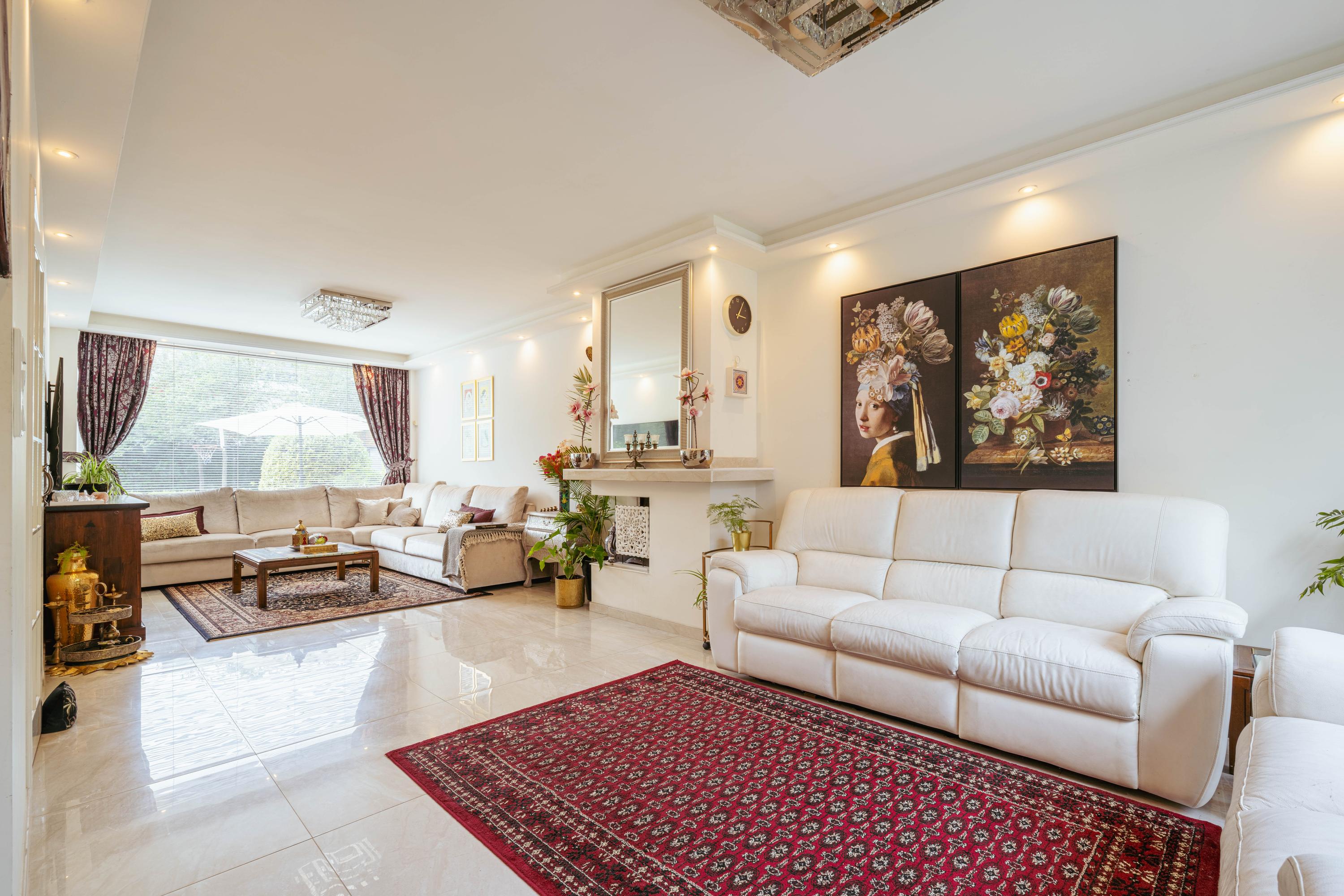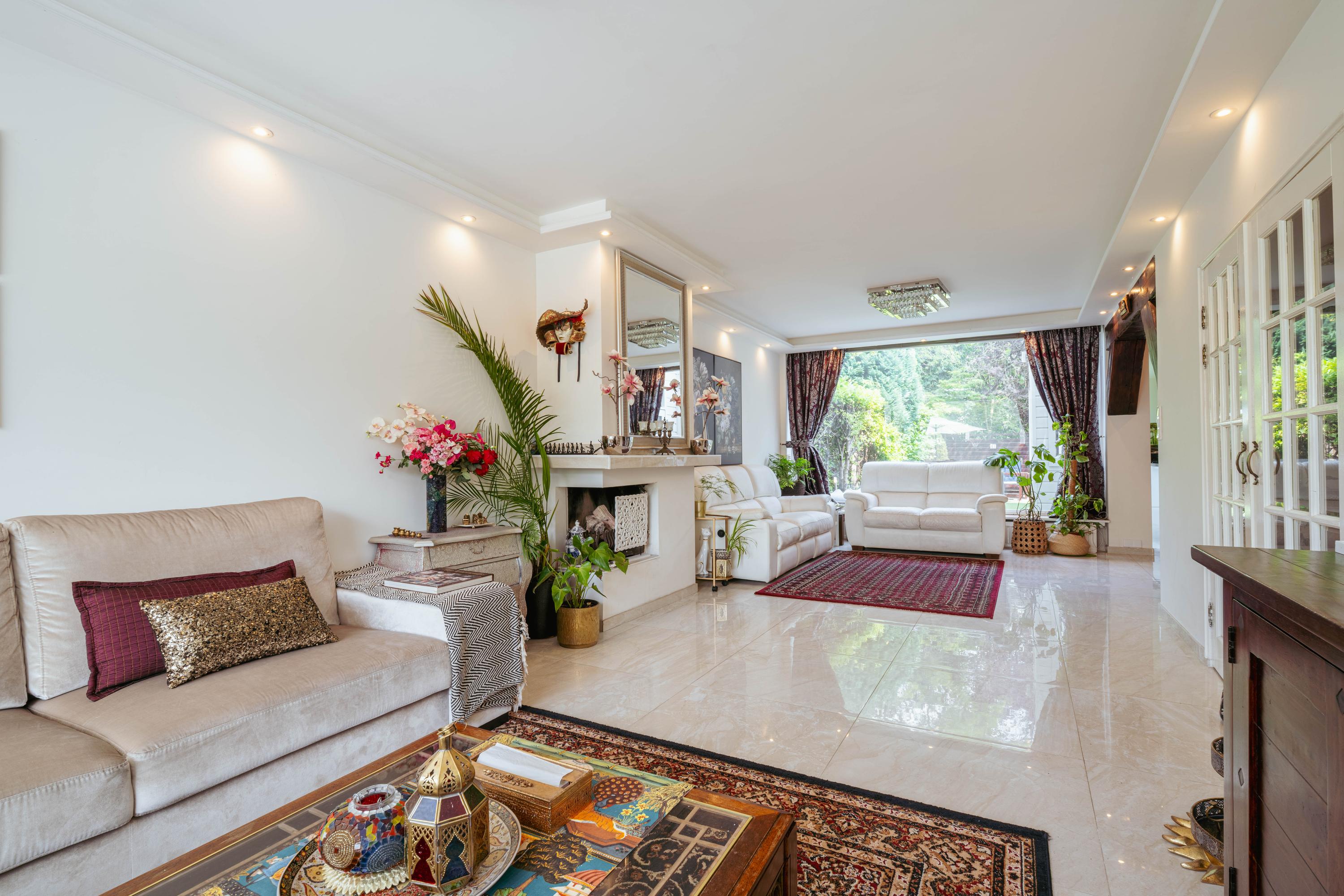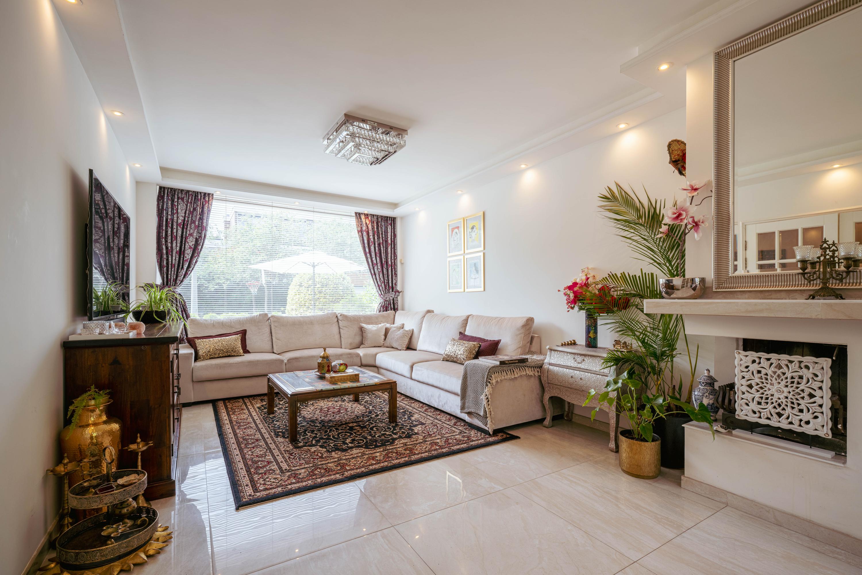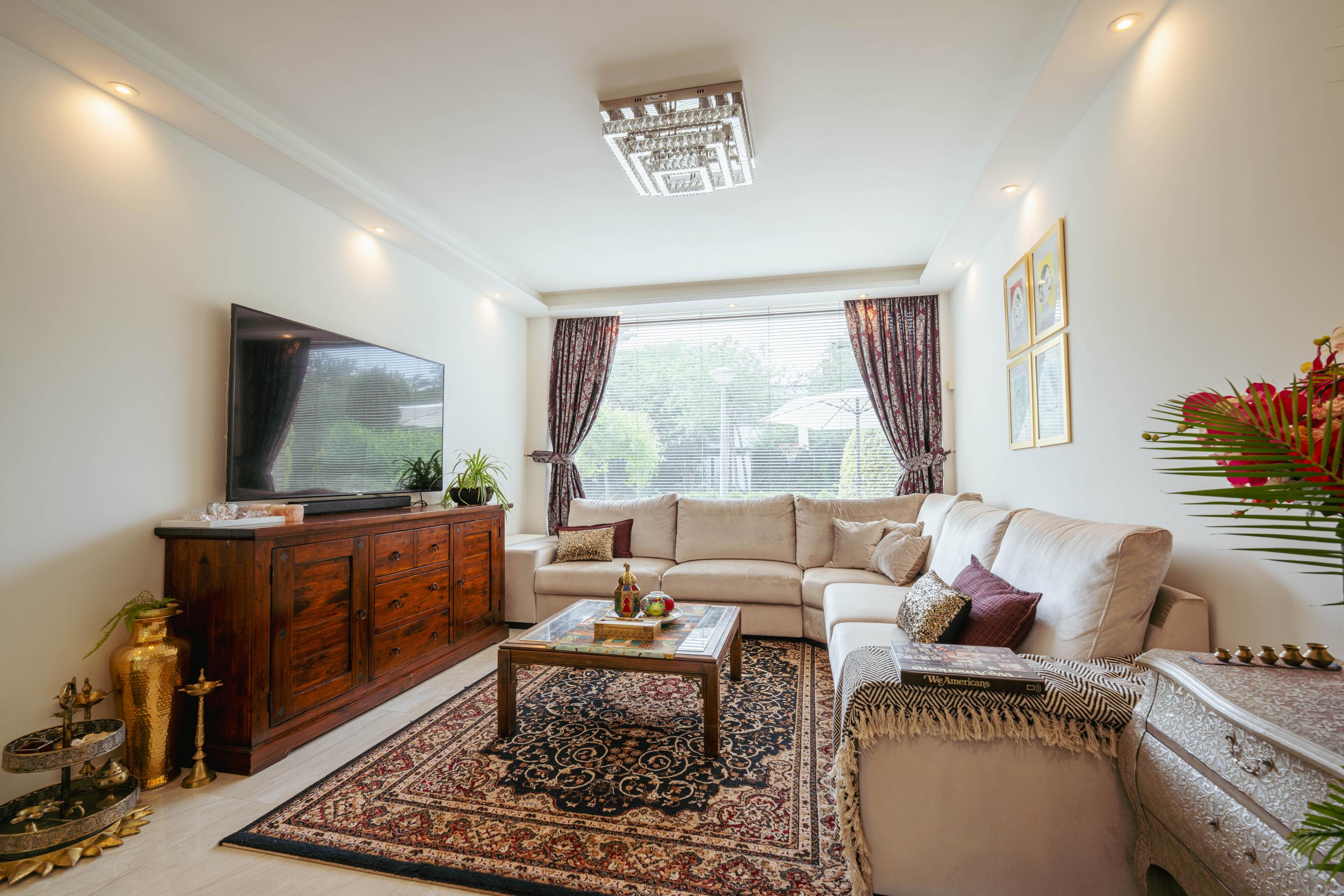 - Spacious living room with semi-open kitchen