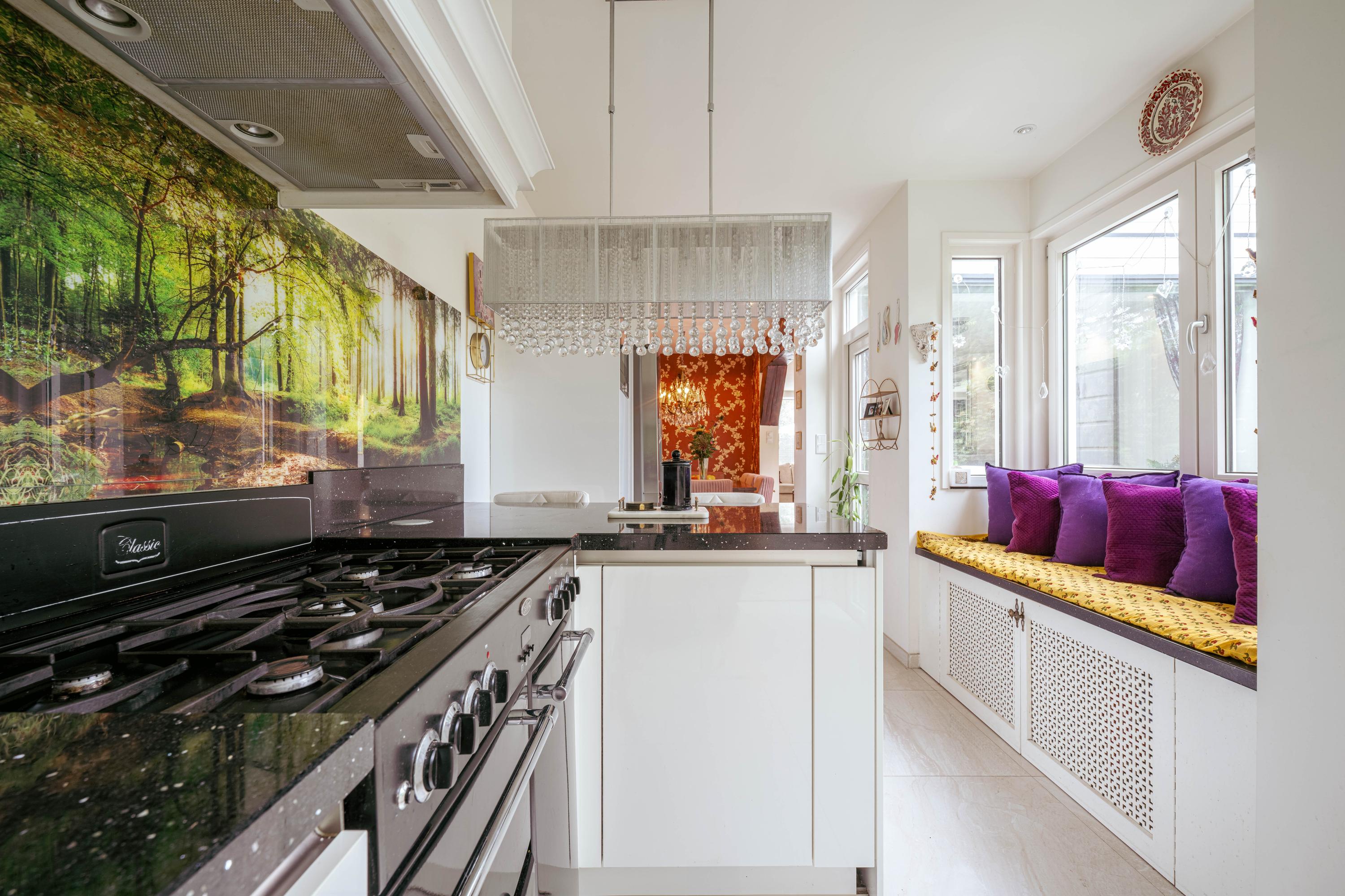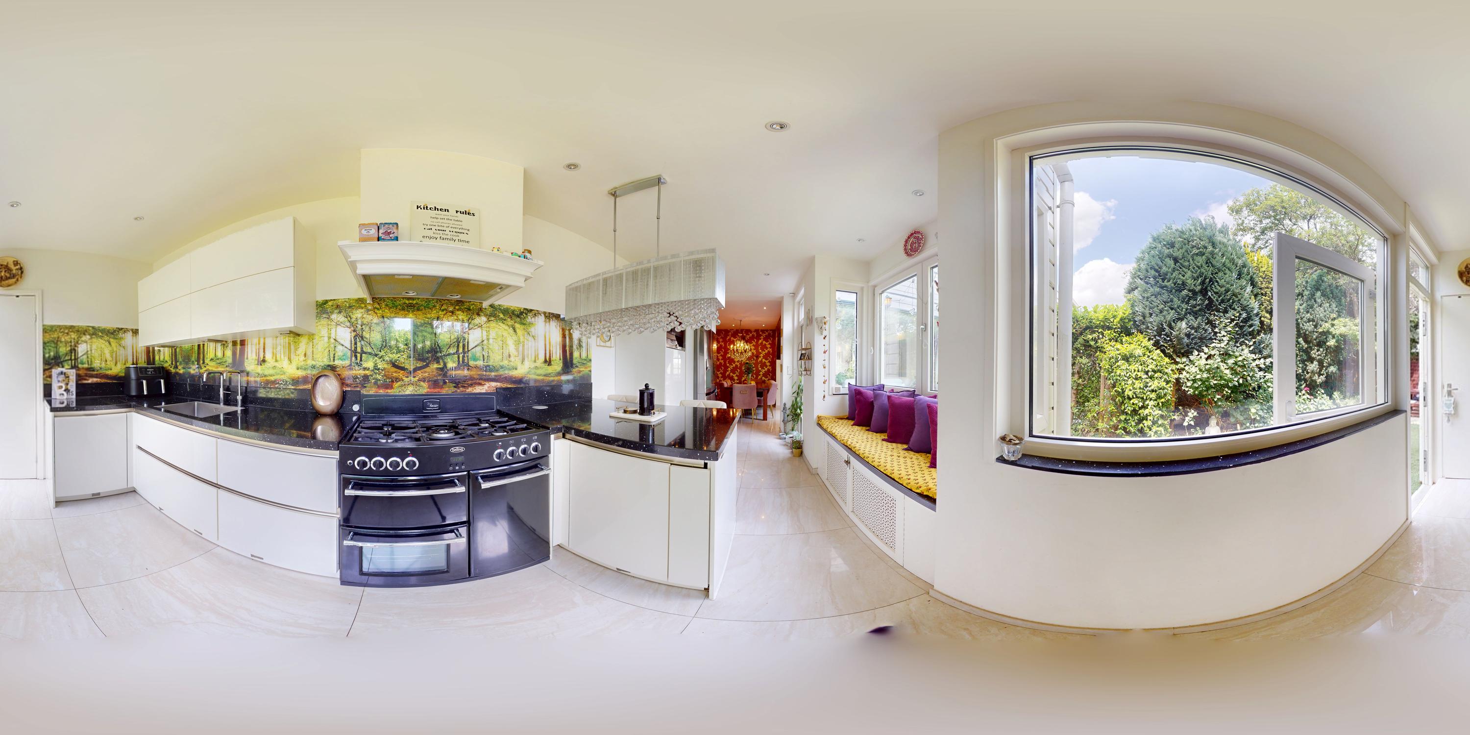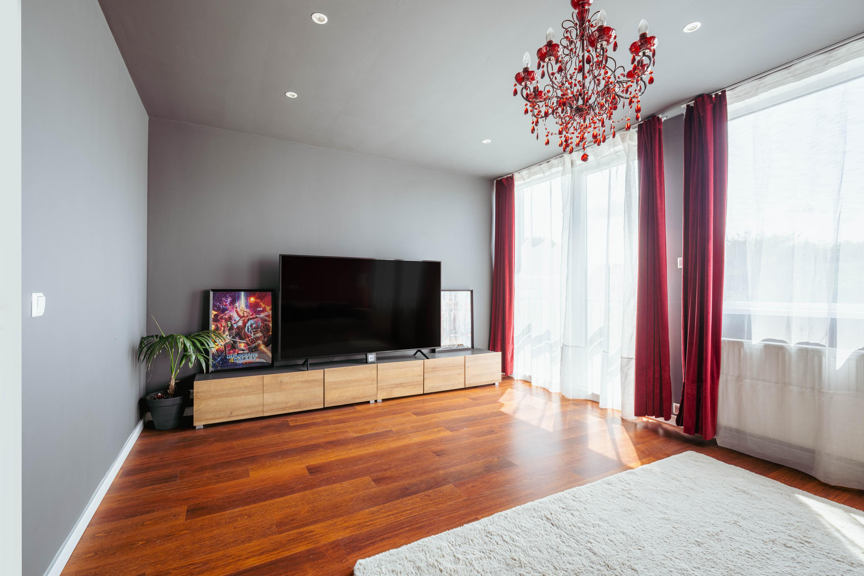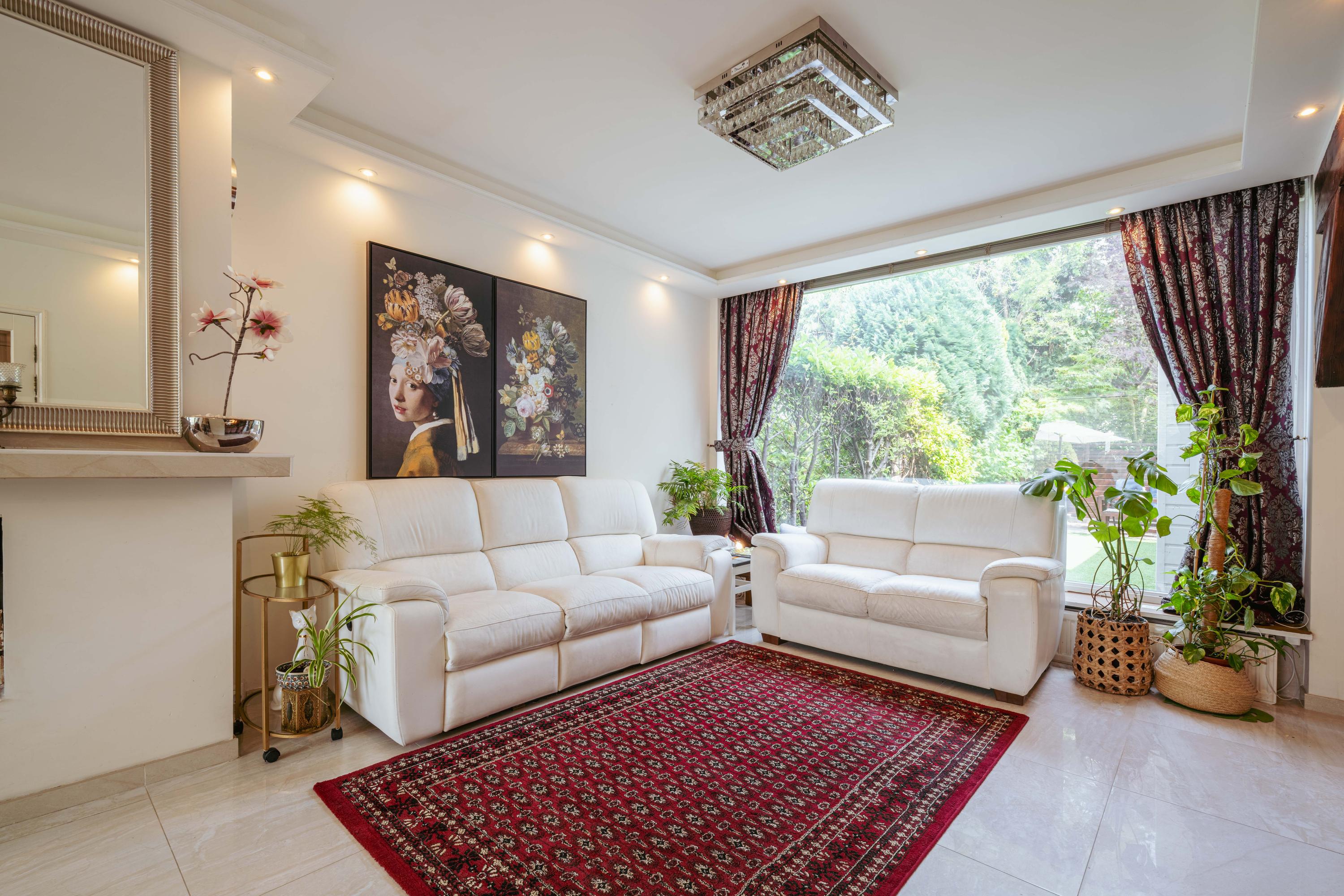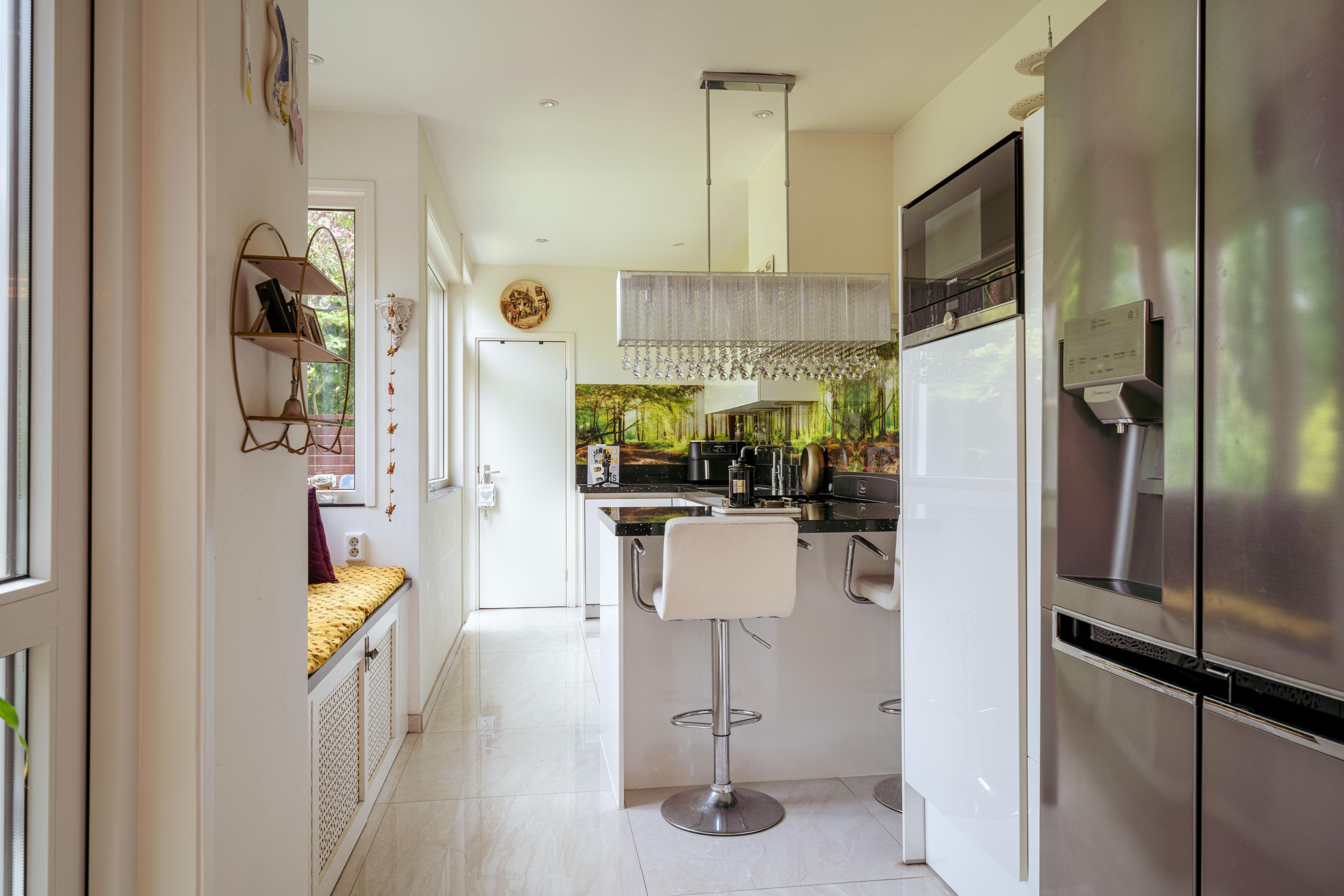 - Spacious living room with semi-open kitchen