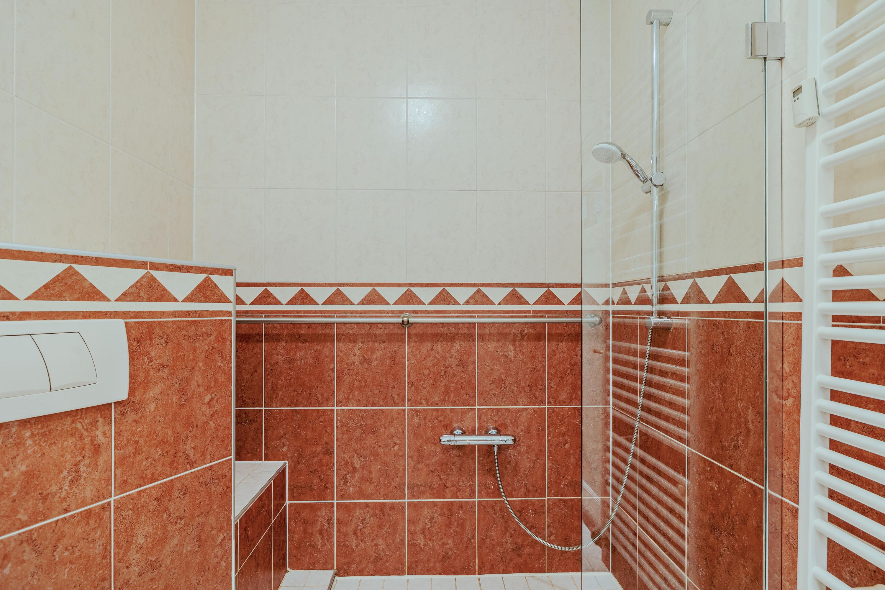 Attic room with sink, shower, and built-in wardrobes. Access to your private roof terrace through a door.