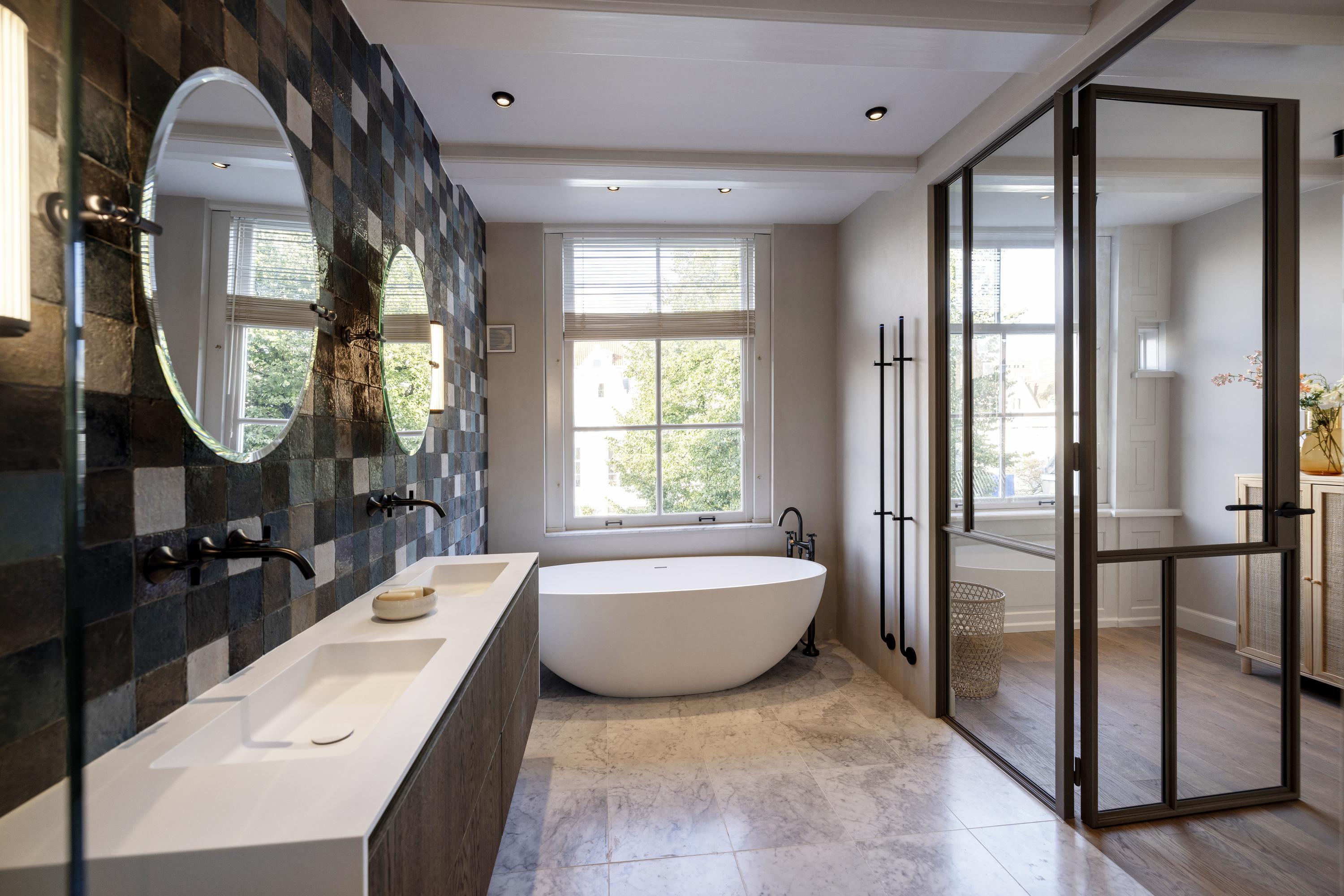 - High-end bathrooms with original tiling, microcement and Dornbracht taps