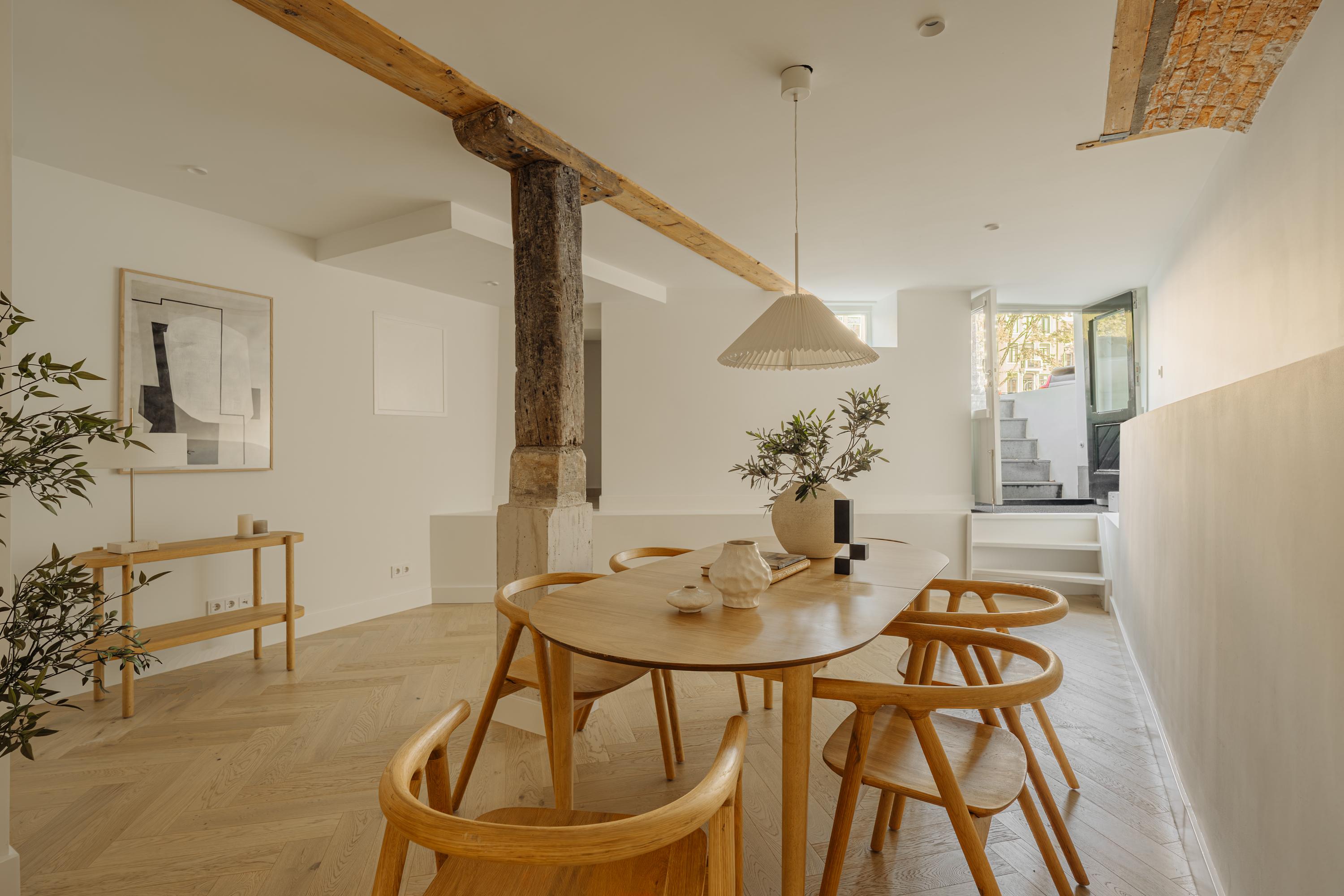 The property has been meticulously renovated with great attention to detail and respect for its original architecture. Exposed beams, high ceilings, and large windows recall the building’s historic character, while bespoke craftsmanship, natural materials, and serene finishes create an atmosphere of modern luxury.