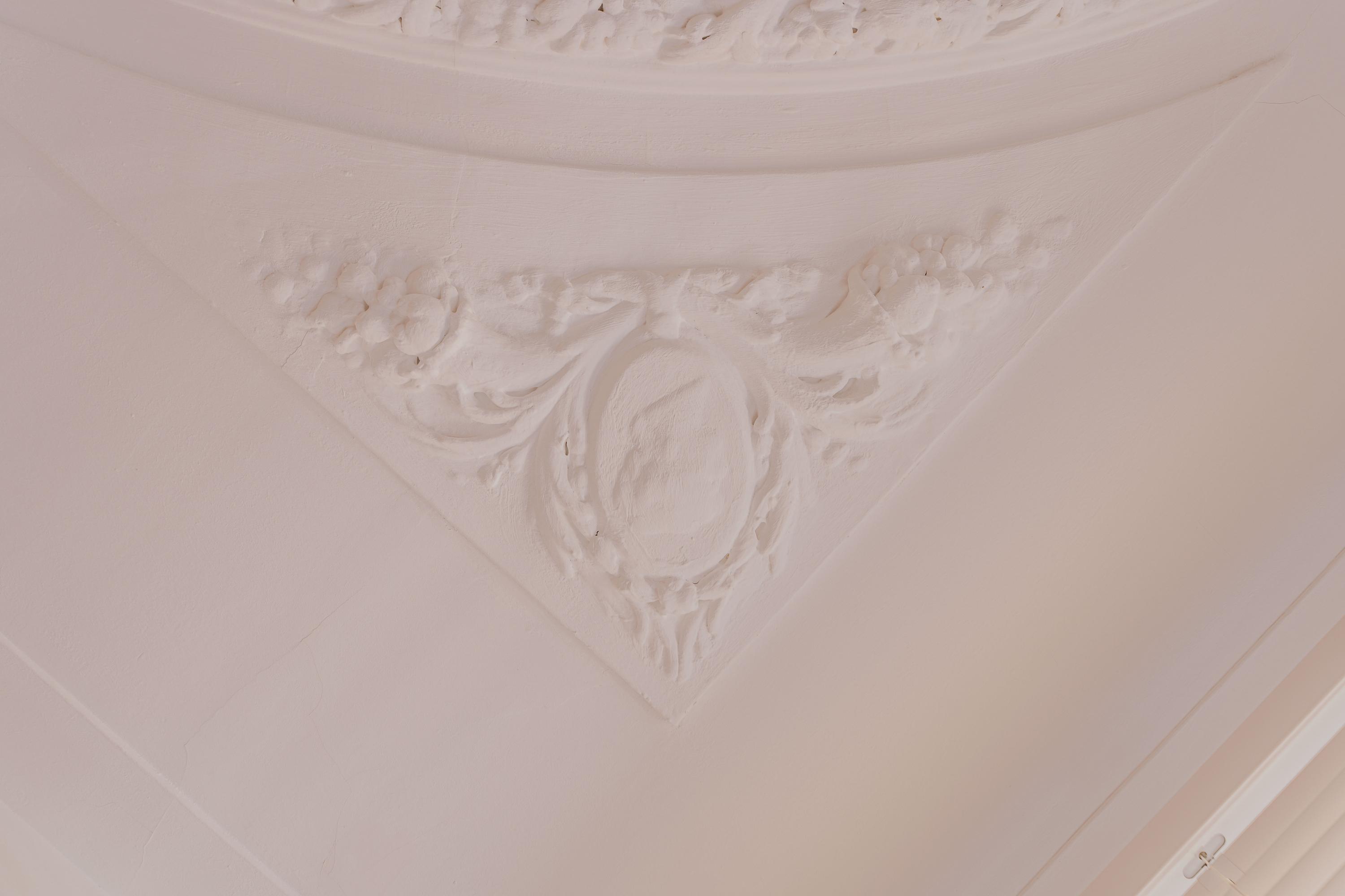 From the spacious hallway, you have access to the generous living room located at the front of the apartment. The living room boasts high ceilings with beautiful detailing and large windows; the first bedroom is en-suite. This bedroom, situated at the rear of the property, is accessible via built-in sliding doors from the living room and offers access to a deep balcony of approx. 7 m², facing south-east. The kitchen, also located at the rear, is fitted with luxury built-in appliances including a five-burner gas hob with extractor fan, a wide oven, fridge/freezer combination, and dishwasher. Electric shutters are installed along the entire rear side of the apartment. Adjacent to the kitchen is a separate toilet with washbasin and a convenient storage room.