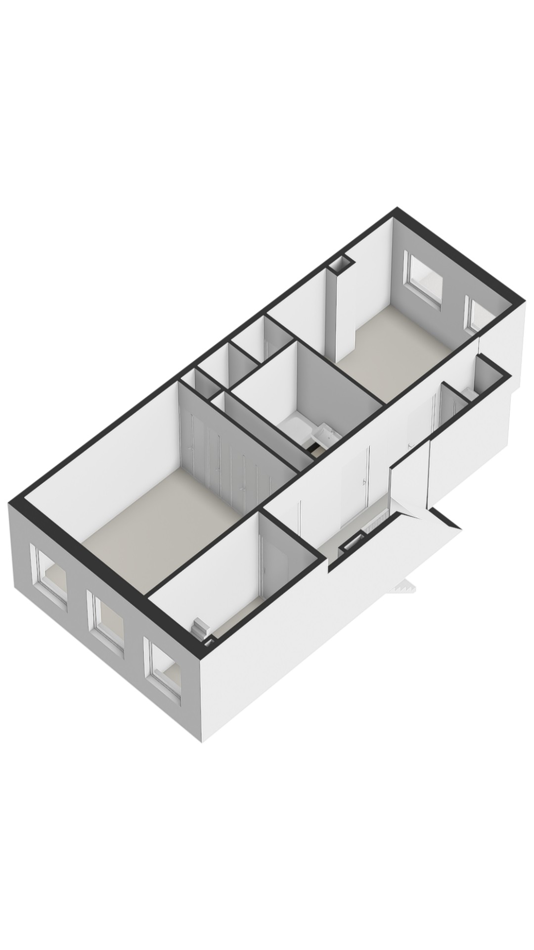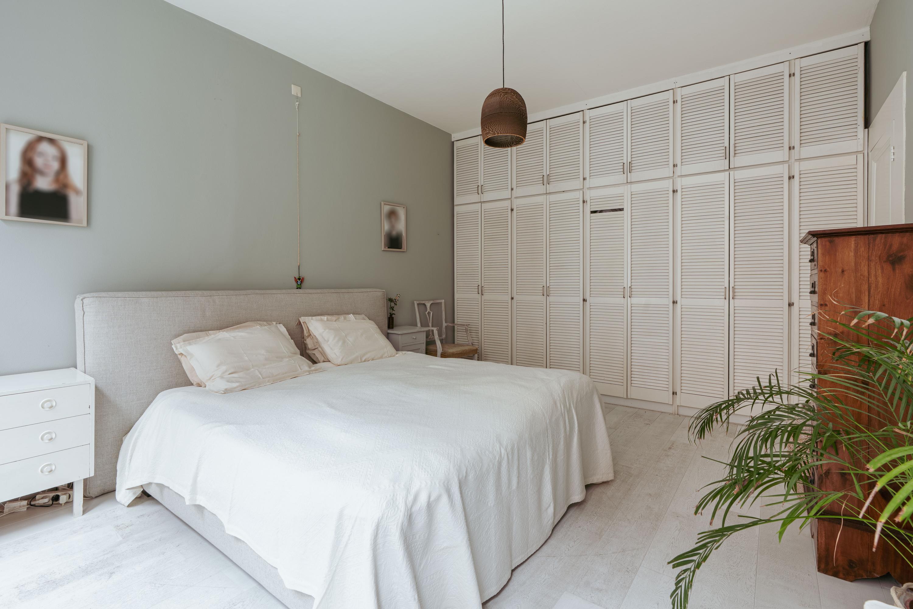 The landing provides access to three bedrooms and the centrally located bathroom. At the rear you will find the spacious master bedroom with an impressive ceiling height of no less than 3 meters, creating a wonderful sense of space. At the front there is a second generously sized bedroom, as well as a third bedroom ideal as a child’s room or home office. The centrally located bathroom is equipped with a bathtub with shower, washbasin cabinet, and toilet. Thanks to several built-in cupboards, this floor offers ample storage space.