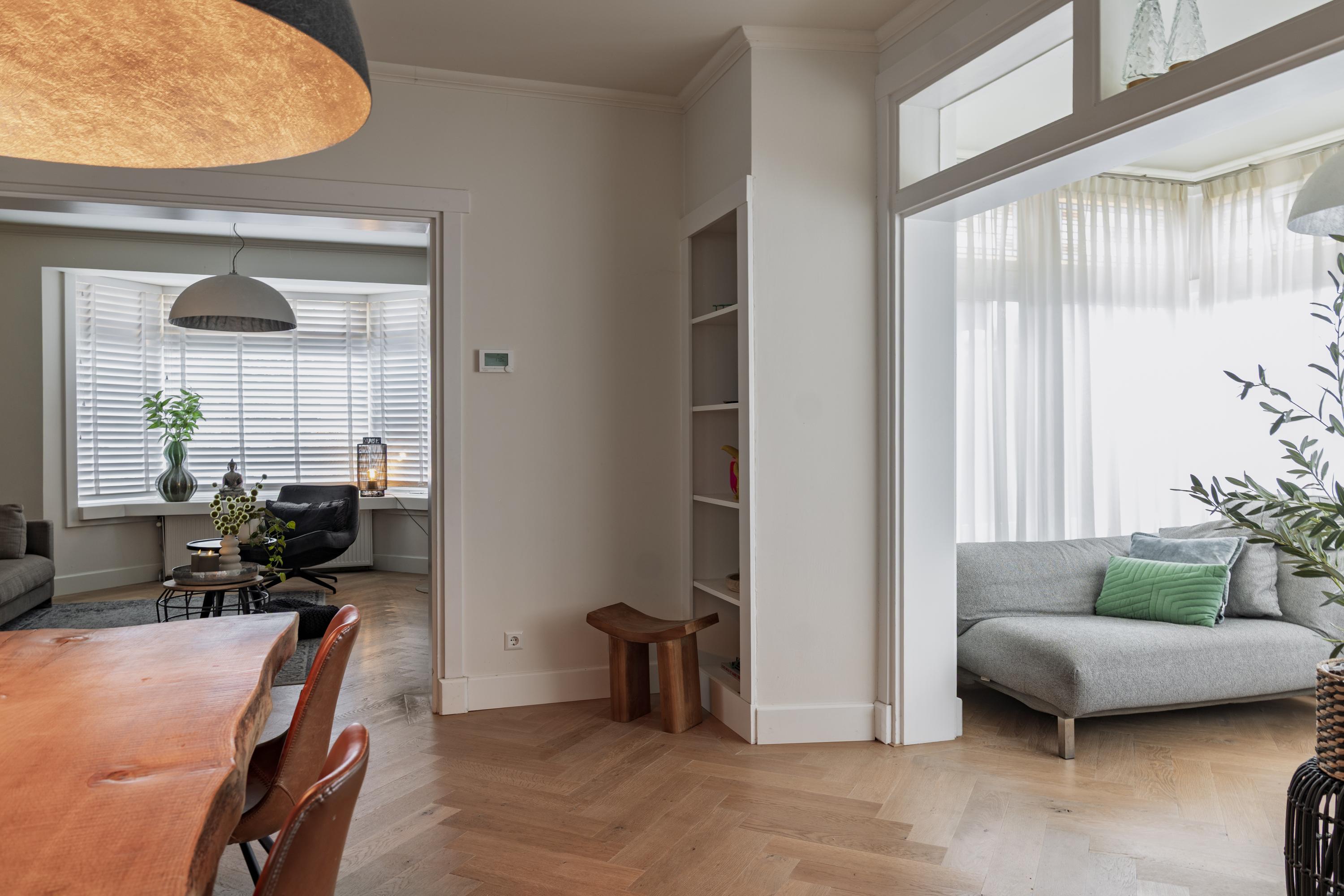 Fully modernised and extended, this characterful detached 1930s home is set on a generous plot of 819 m². Authentic period features are seamlessly combined with contemporary living comfort, creating a home of real quality and atmosphere. The property offers approximately 202 m² of living space and, thanks to its well-considered layout, is ideally suited for dual occupancy or multigenerational living, such as accommodation for parents or (young) adult children. The rear section can, if desired, be used as a largely self-contained residential unit, all within a single residential designation.