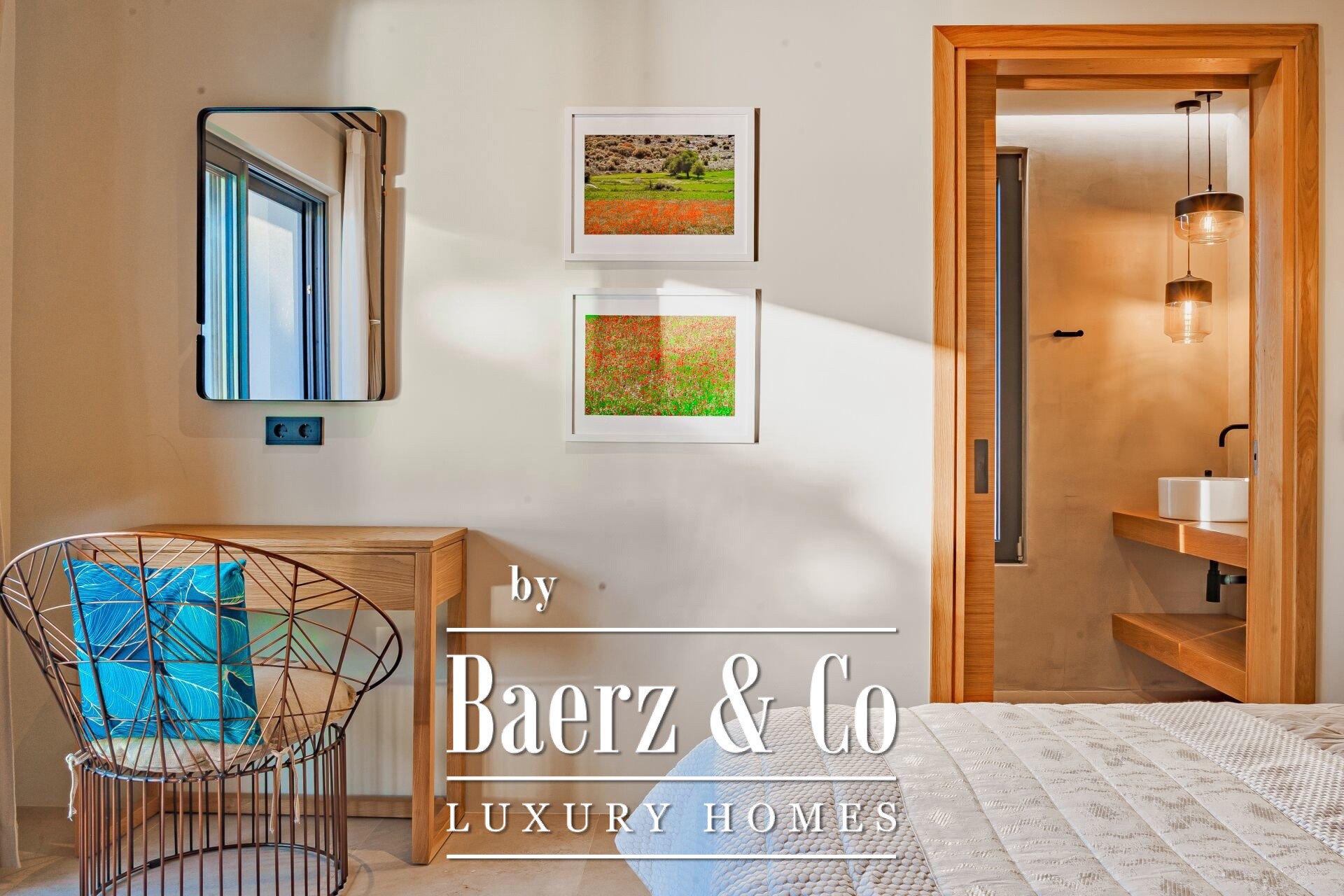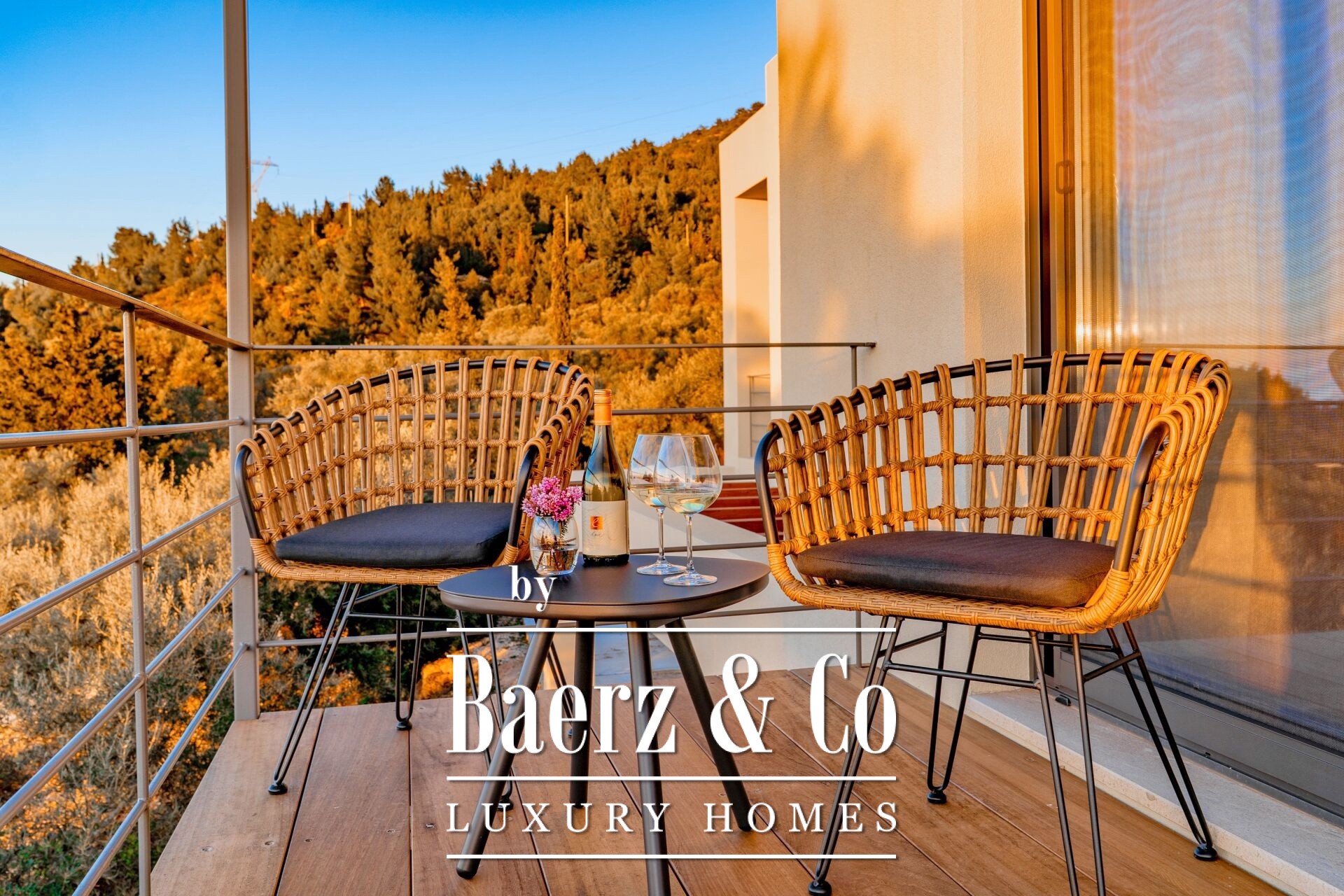Set in a serene natural landscape, just 530 meters from the sea, this luxurious newly built villa with a total area of 237 sq.m. is situated on a private plot of 5,380 sq.m., offering unobstructed 180-degree panoramic views of the Ionian Sea, the surrounding mountains, and the lush greenery of Lefkada. Its location, close to the famous Egremni Beach, makes it one of the most privileged properties on the island.