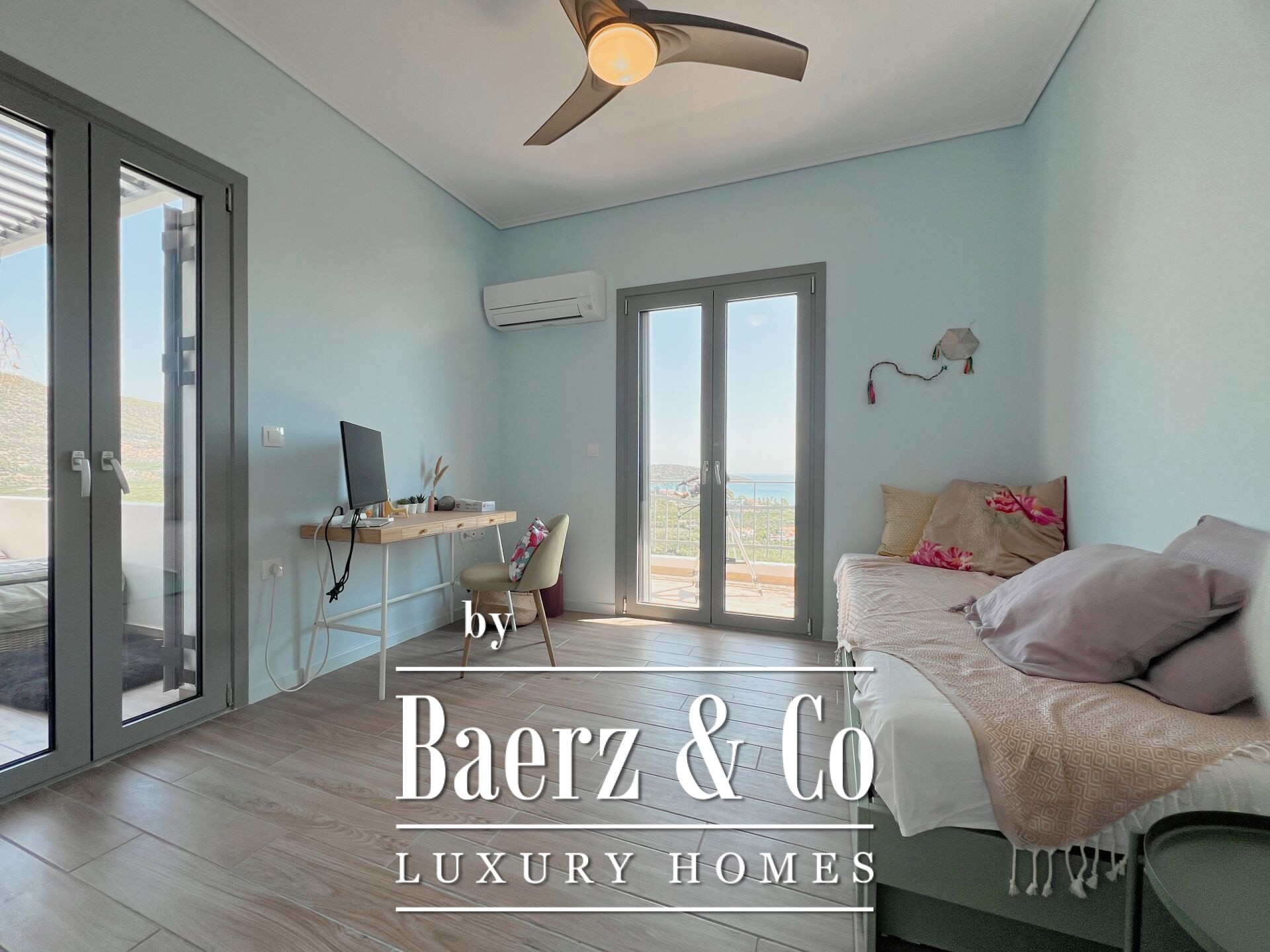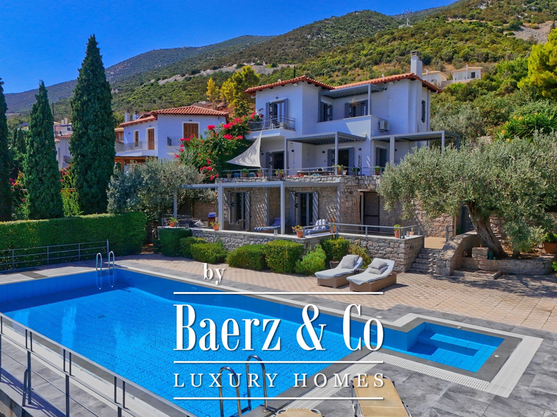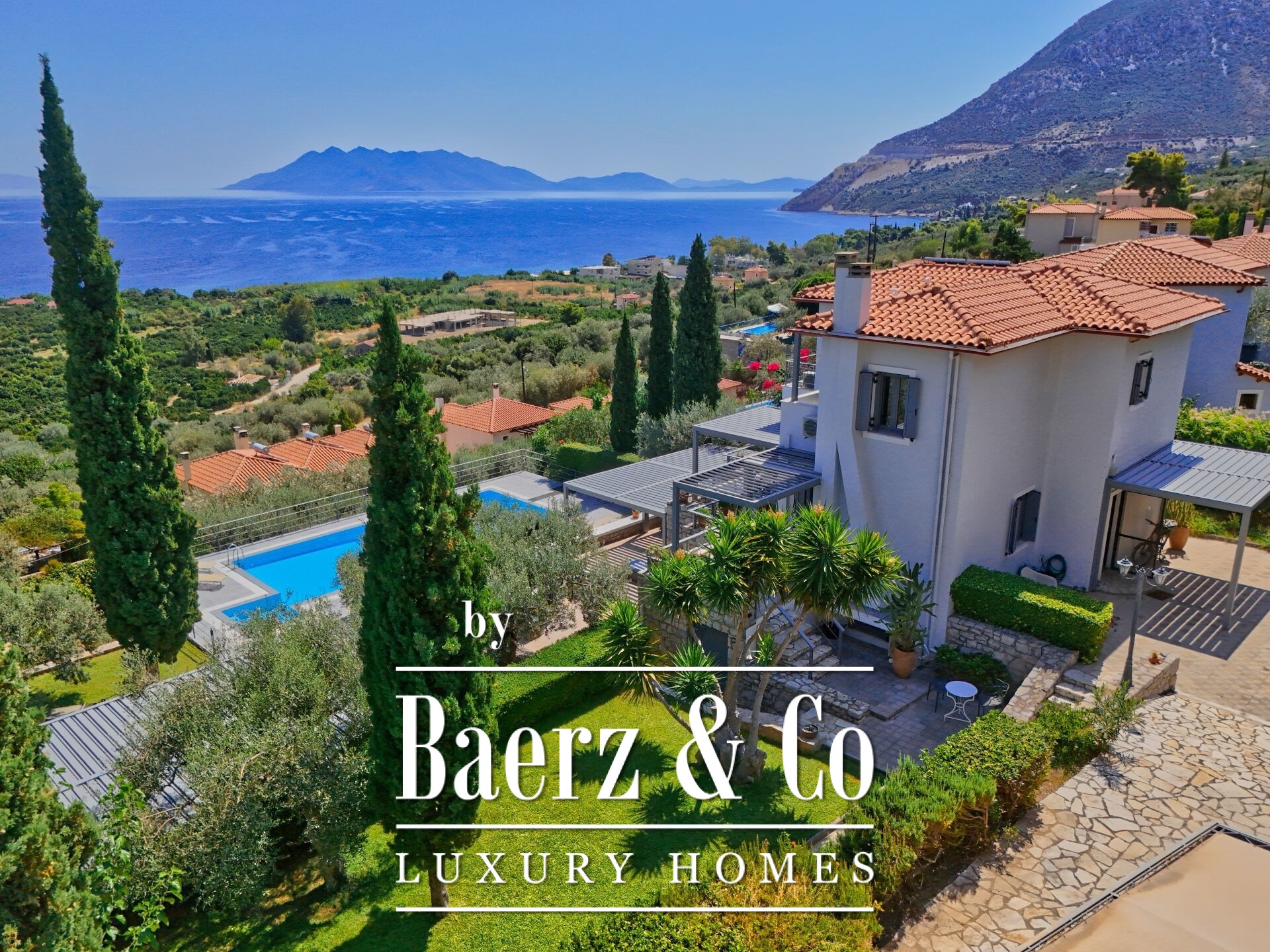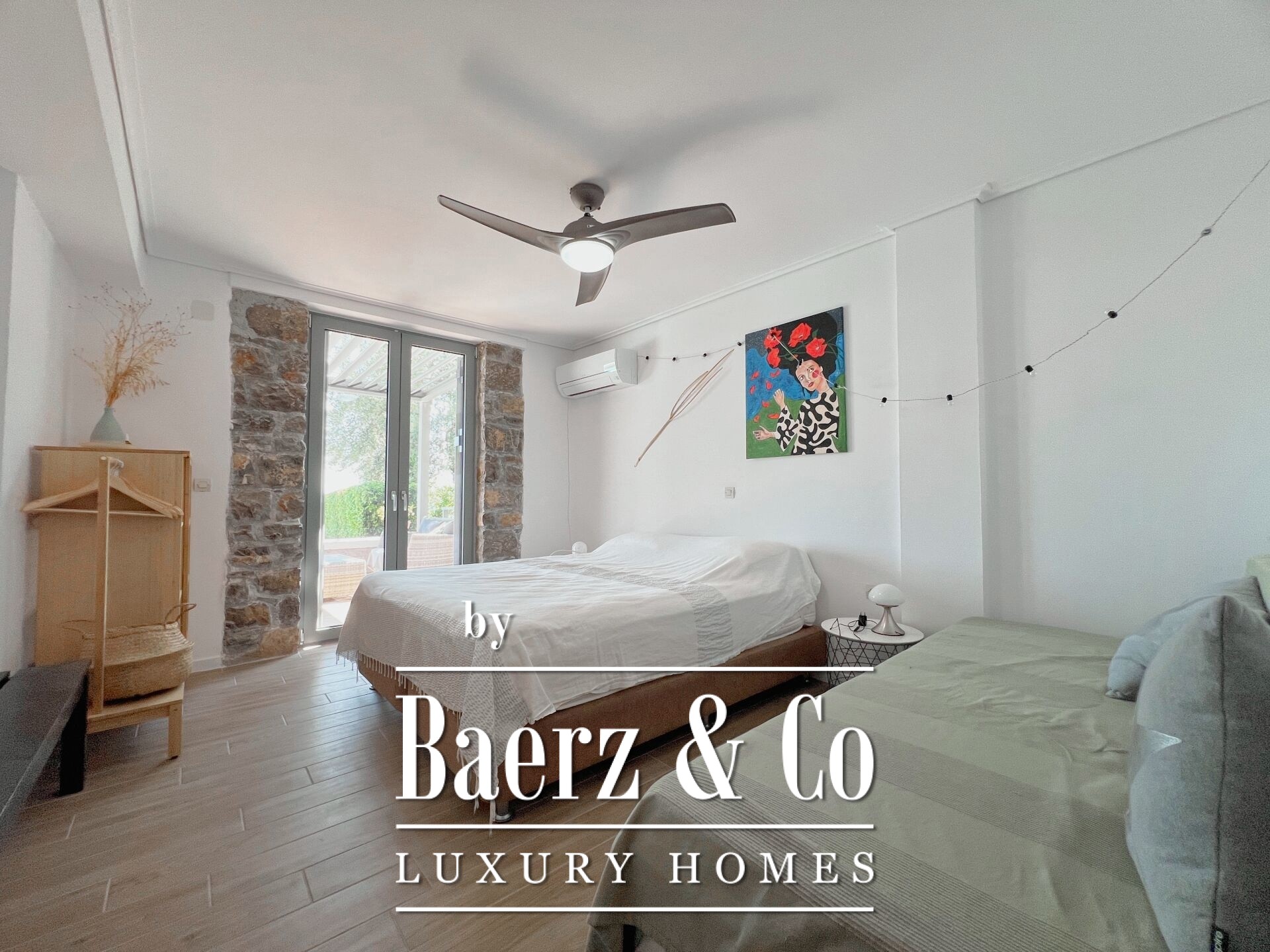 Detached house Archaia Epidavros presents a refined balance of timeless materials and contemporary design, set within a 1,500 m² privately owned garden overlooking the sea. This 198 m² residence underwent a full renovation beginning in 2018, highlighting quality of materials, bioclimatic pergolas, and smart living solutions that suit both permanent and holiday living.