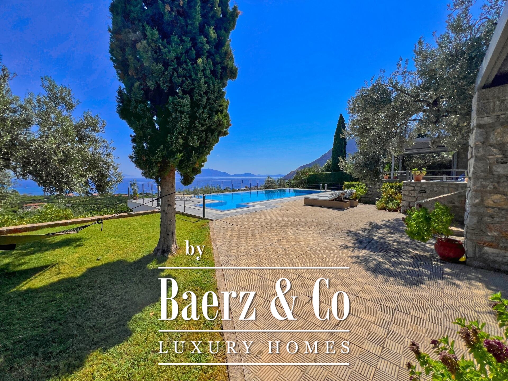 Across three levels, the architectural narrative fuses traditional stonework with modern lines and panoramic sea and mountain views. The ground floor offers a self-contained apartment with three bedrooms, a living area, kitchen, and two WCs, each space opening directly to verdant gardens. The middle level is anchored by a bright living and dining area, main kitchen, WC, and access to upper bedrooms. The first floor features two further bedrooms and a spacious bathroom, all complemented by verandas that invite uninterrupted vistas and natural light.