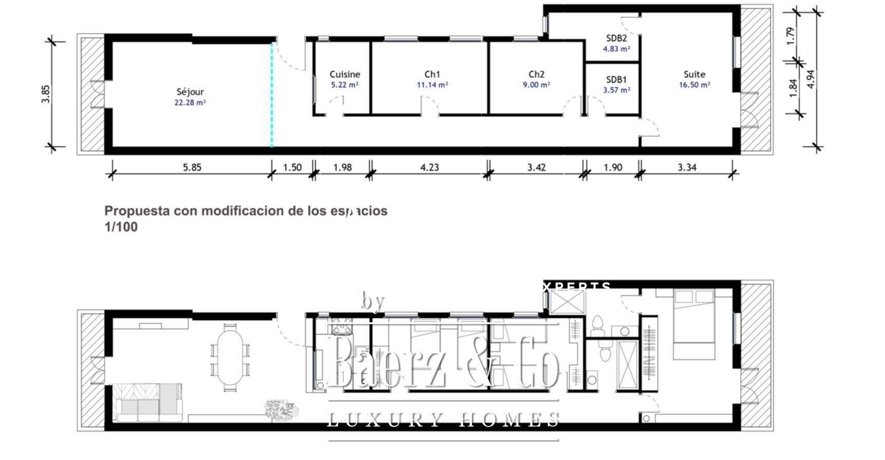 Apartment Barcelona Eixample Esquerra is defined by its address on an exclusive street in the heart of Consell de Cent. This 109 m² residence was renovated in 2022, where contemporary design meets meticulous craftsmanship and quality materials. Its south-facing orientation ushers daylight into every corner, softly illuminating the refined textures and open spaces.