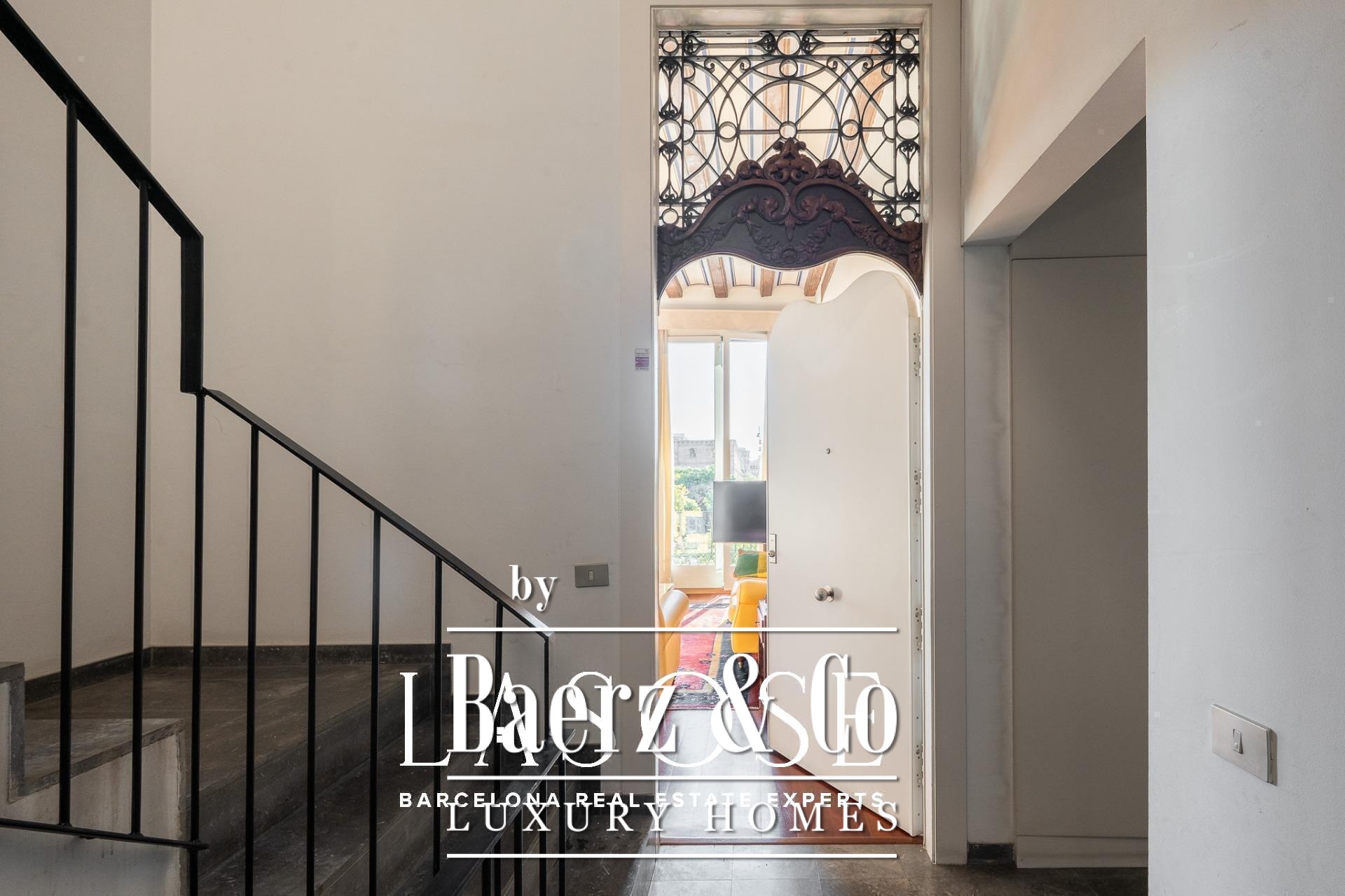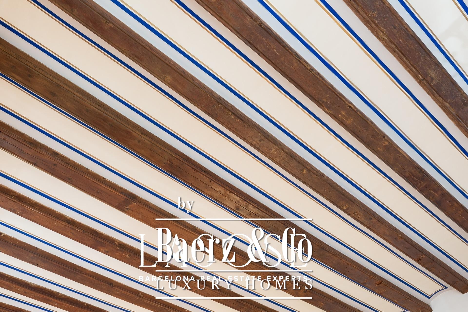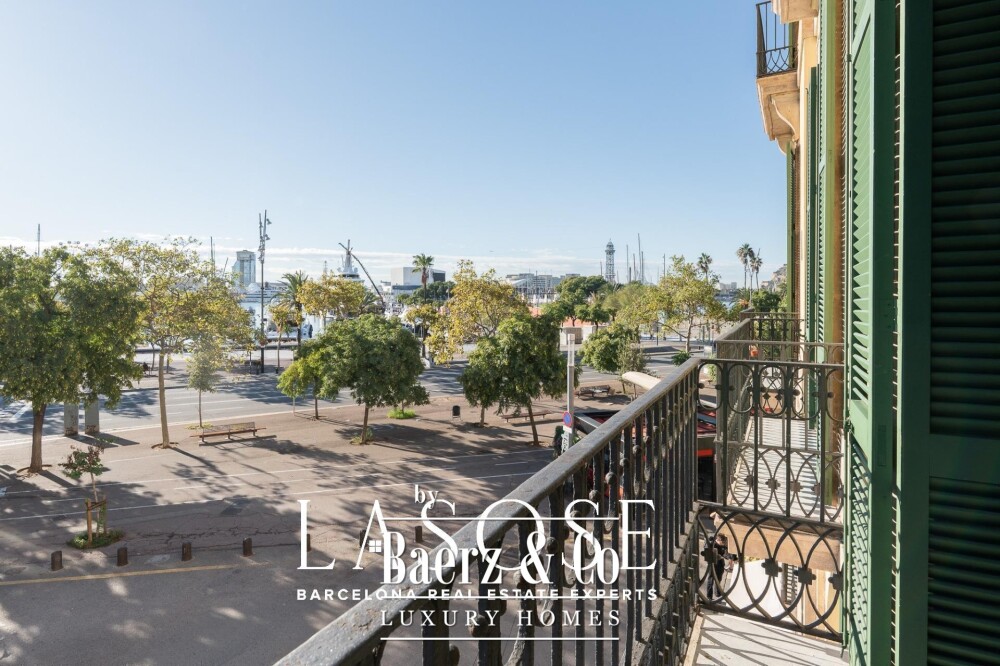 Apartment Barcelona sets its stage within a historic building overlooking the city’s marina. This apartment, spanning 122 m², occupies a distinguished address on Carrer Llauder and presents a rare interplay of heritage and contemporary living. Step inside to a volume defined by 3.8-meter ceilings, exposed wooden beams, and Catalan vaulted ceilings with hand-painted details. Wrought-iron balconies frame the open sea and the greenery of Las Ramblas de Mar, filling each room with Mediterranean light.