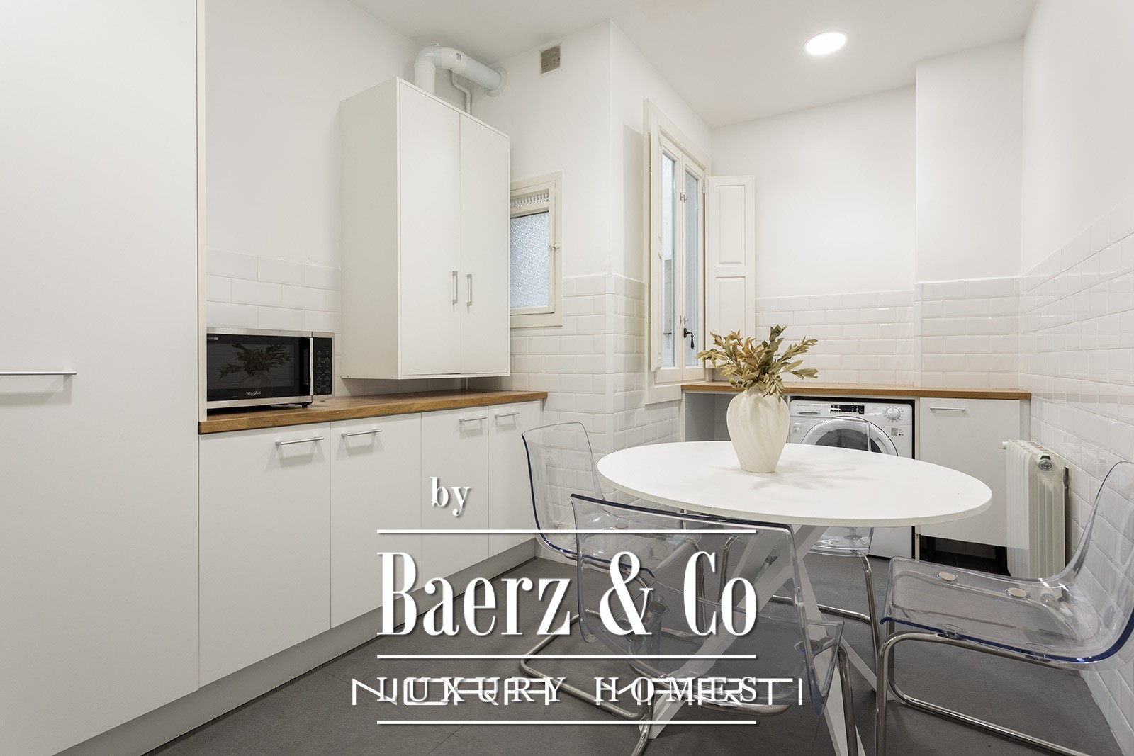 The 152 m² apartment has been extensively renovated, bringing contemporary sensibility to historic bones. Inside, refined modern furnishings lend clarity and cohesion, setting the tone for discreet urban living. The layout features three bedrooms, including one double and two singles, and two bathrooms, creating a balance of private and social spaces. The living room’s tall windows, characteristic of its era, saturate the interiors with natural light, enhanced by a favorable orientation and the warmth of parquet floors. A fully equipped kitchen with a breakfast area adds comfort to the daily rhythm.