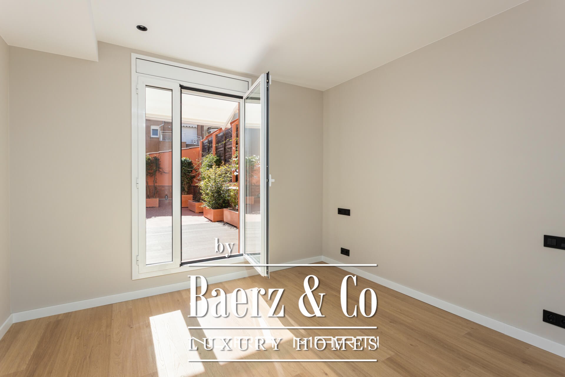 There are three bedrooms, including a master suite with private bathroom and direct terrace access, each space crafted with clean lines and fine materials. The additional bedrooms face a quiet interior courtyard and share a spacious, contemporary bathroom. The overall design balances contemporary warmth and functional elegance, with soft transitions between indoor and outdoor living.
