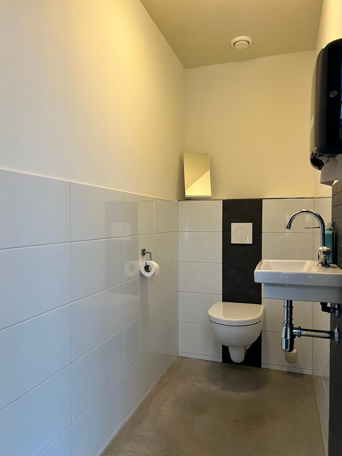The toilet room is equipped with a urinal and Mera Geberit shower toilet.