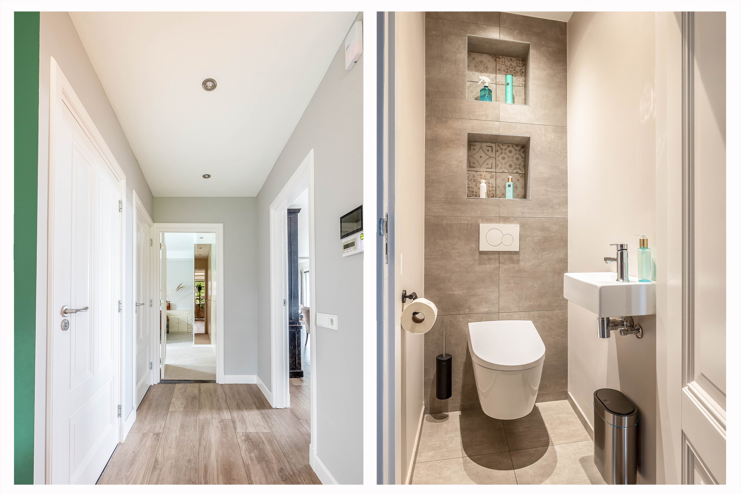 From the stunning, high L-shaped living room (approx. 72 m²), there is a fantastic view of the River Maas. The high ceiling, numerous windows, and double sets of garden doors ensure beautiful natural light. The solid kitchen (approx. 7 m²) is equipped with an induction hob, extractor hood, dishwasher, refrigerator, and a combination steam oven. From here as well, there is a lovely view of the Maas. The kitchen is finished with a composite worktop.