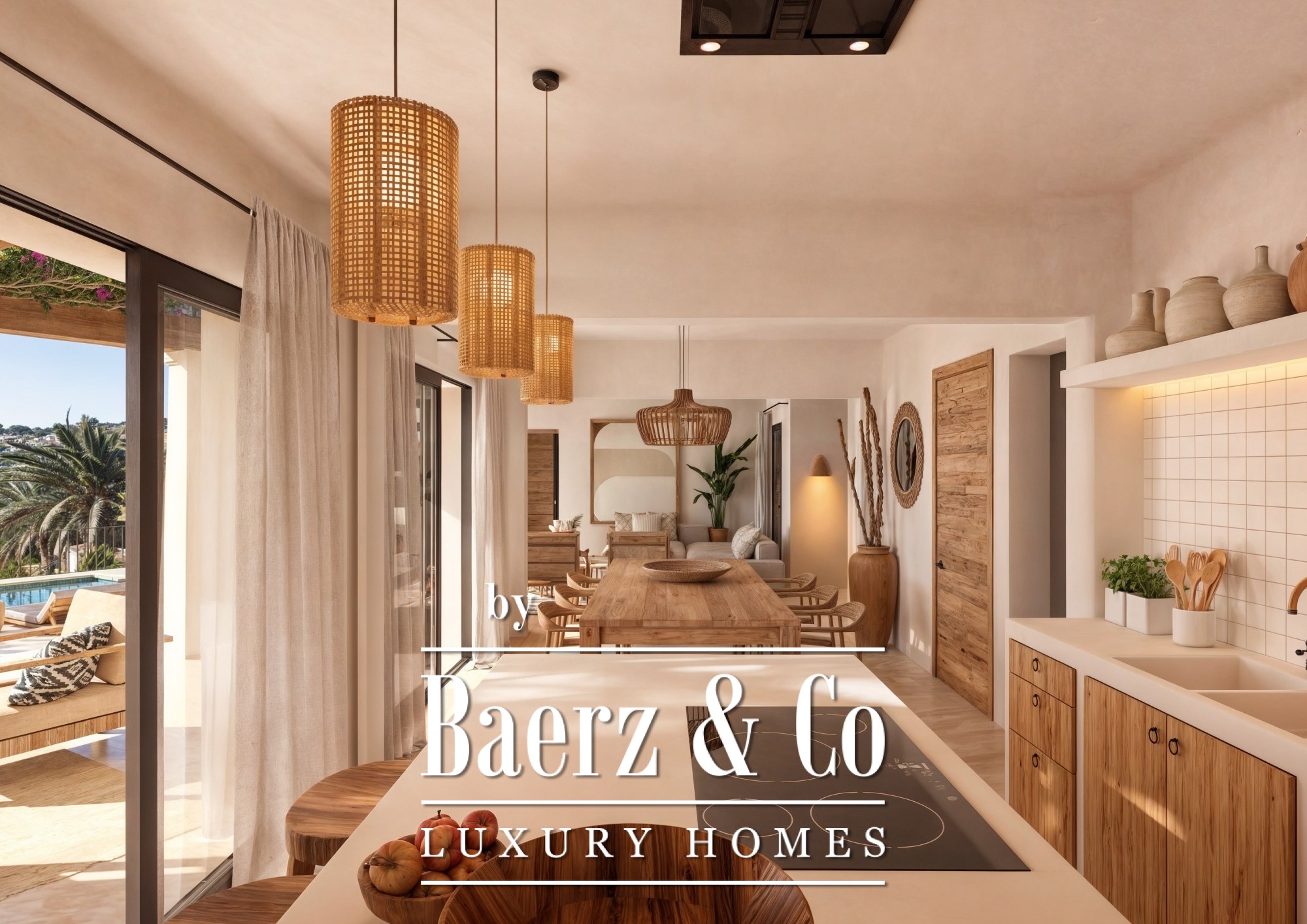 Villa Benissa embodies the convergence of Mediterranean ease and architectural clarity, set in the sought-after enclave of San Jaime near the Ifach Golf Club. This villa Benissa balances modern lines with natural materials, warm textures, and abundant light, revealing a sequence of spaces where the indoors and outdoors merge fluidly. Expansive windows look out over a private garden, the pool, and a distant vista of the sea, enhancing the sense of openness central to contemporary design.