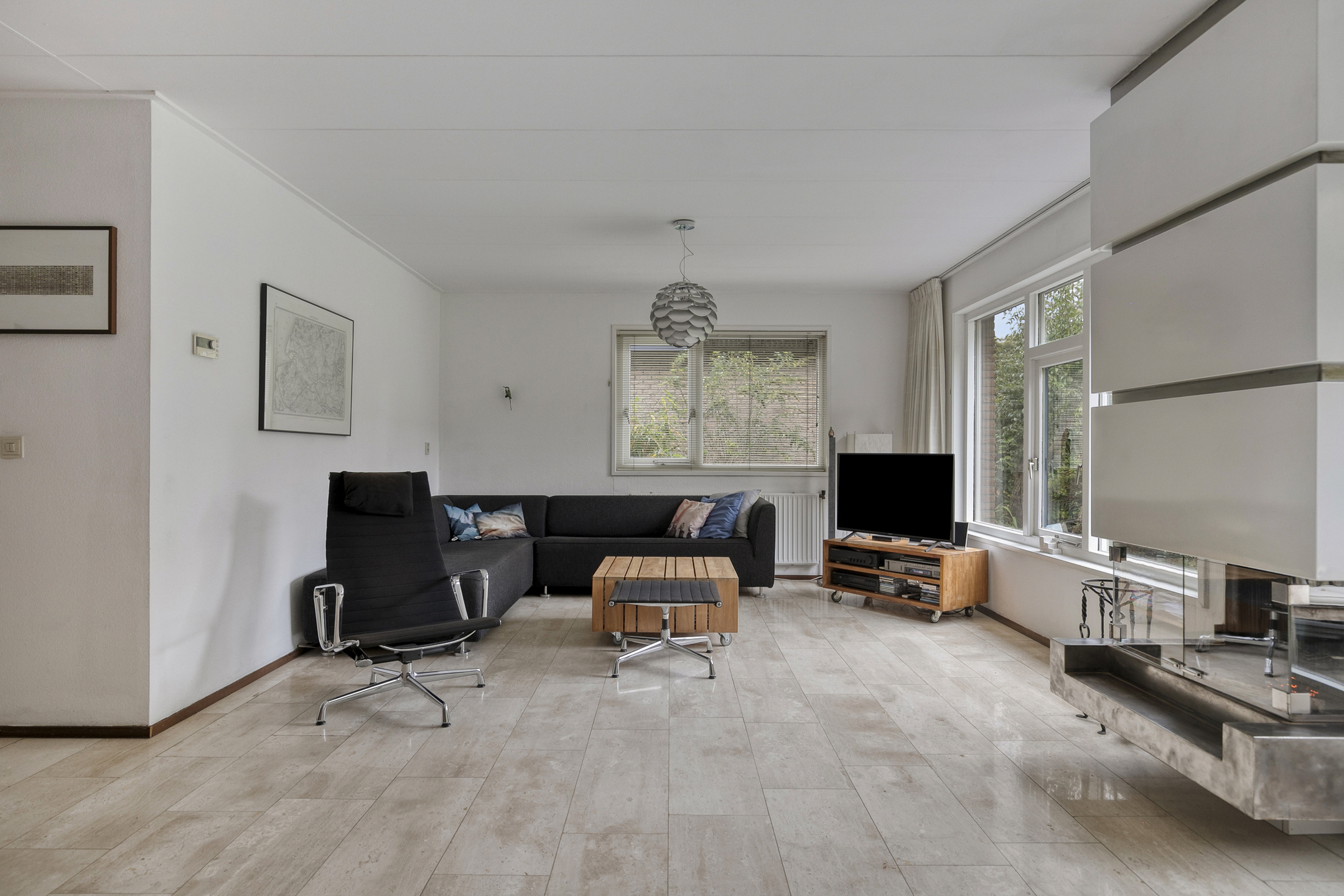 - Spacious, bright living room with cozy fireplace