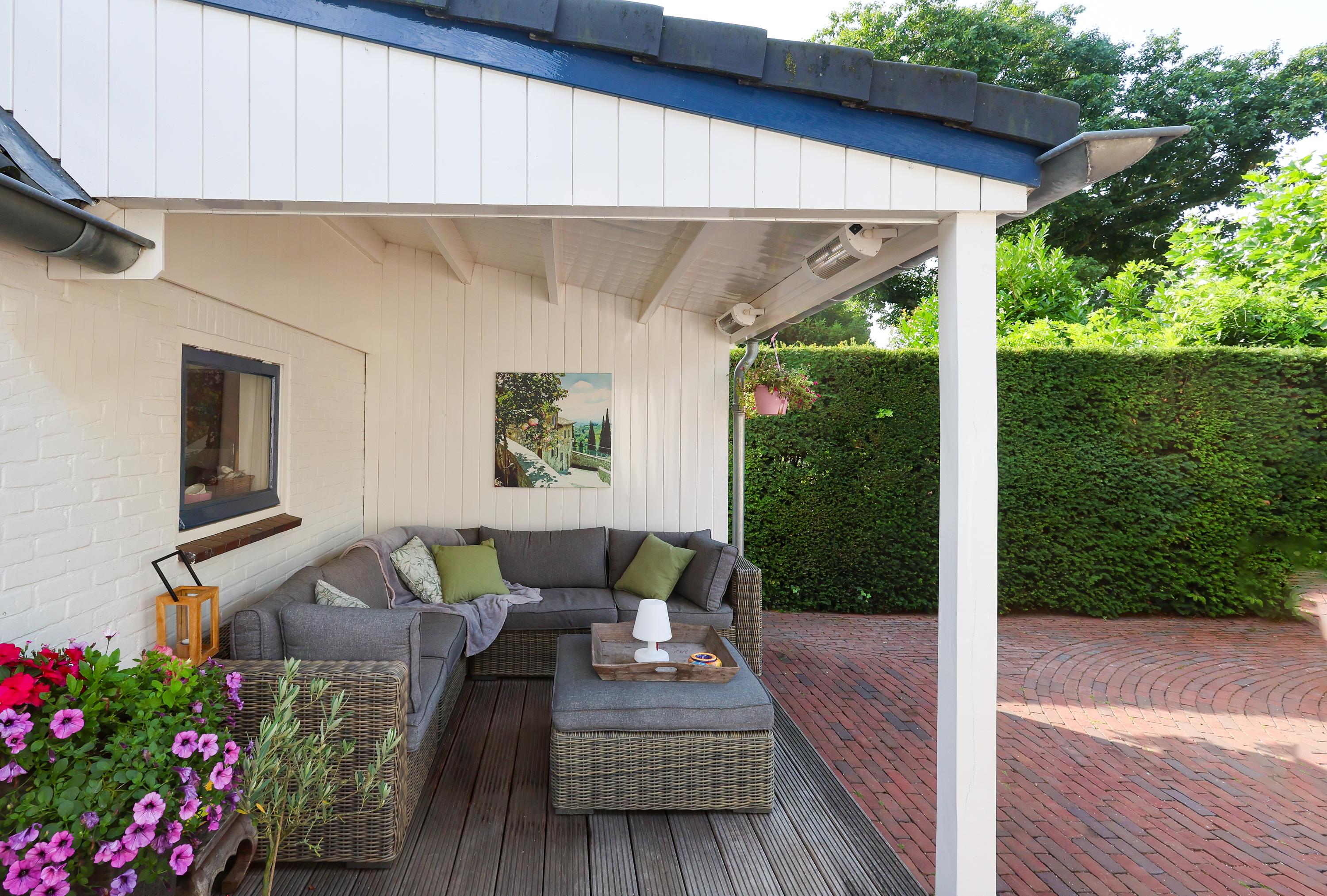 The detached studio of approx. 16 m² — formerly a garage — has been converted into a bright, heated space with water and electricity. An ideal spot for peaceful work or creative pursuits. There is also potential to extend the ground floor towards the studio.