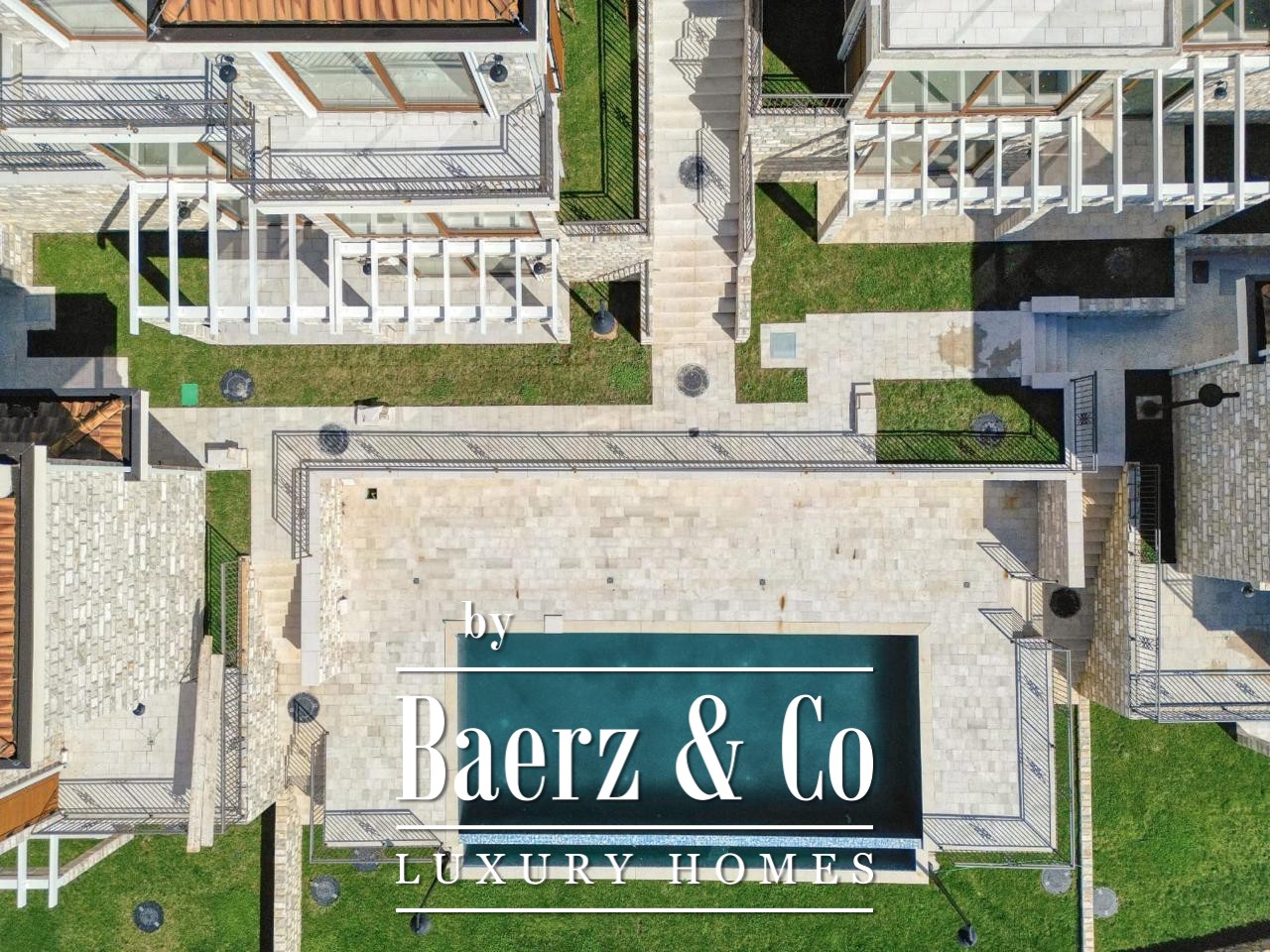 The elevated position brings wide sea and mountain views into daily perspective, while the shared pool and the enveloping quiet of nature set a measured pace of life. Proximity to the Adriatic—just 1.2km away—offers effortless beach access, as well as a short route to Budva’s cosmopolitan vitality, cultural offerings, and renowned coastline. Tivat and Podgorica airports lie within practical reach for international arrivals. This villa complex in Budva is equally suited for multi-generational living or as a strategic rental investment, in a region where discerning global buyers are increasingly drawn by its Mediterranean rhythms and discretion.