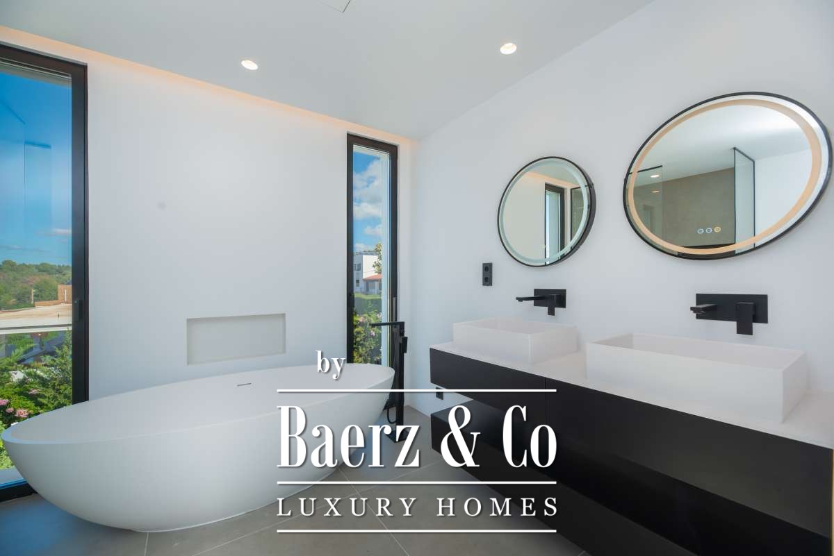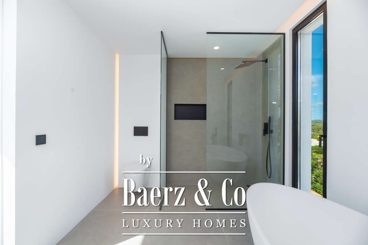 Minimalist villa Can Bessó presents a compelling blend of discreet luxury and refined architectural clarity on the outskirts of Ibiza Town. This newly built residence occupies 600 m² of living space set on a 2,240 m² plot, offering four bedrooms and four bathrooms over two levels. The design anchors itself in minimalism, with white and black contrasts and expansive glass, drawing Mediterranean light into each room. The open-plan living area extends onto generous terraces, framing views of the private garden and surrounding countryside for a seamless indoor-outdoor rhythm.