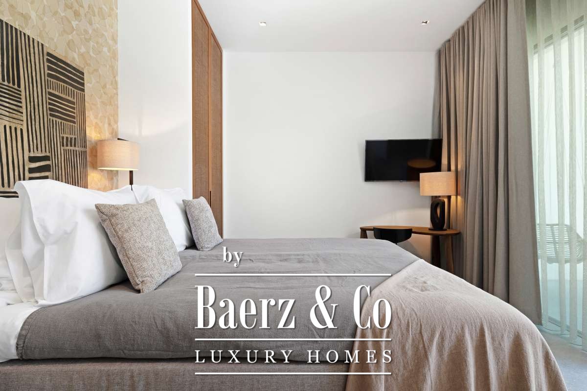 Five generously proportioned en suite bedrooms, all on the lower level, open onto private balconies and terraces, each offering a vantage point over the expansive tropical gardens and the pool. The master suites benefit from tranquil garden views and direct access to the serene pool terrace. Throughout, underfloor heating, air conditioning, double glazing, and a full alarm system ensure comfort and peace of mind.