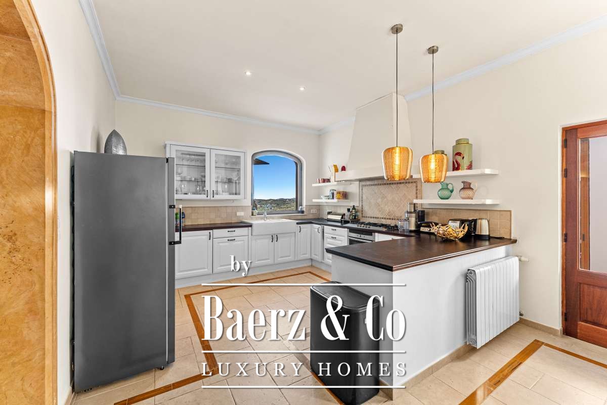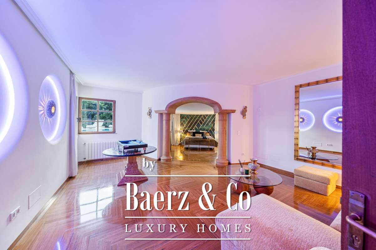 Villa Can Furnet with Panoramic Sea and City Views commands a privileged position within one of Ibiza’s most discreet and guarded residential enclaves. This villa articulates a rare sense of privacy, space and calm, yet Ibiza Town and Marina Botafoch remain within a ten-minute drive. The villa offers 992 m² of interior living over a 2,504 m² plot, with eight bedrooms and nine bathrooms, including two separate guest apartments with private entrances, thoughtfully designed for guests or staff who value privacy.