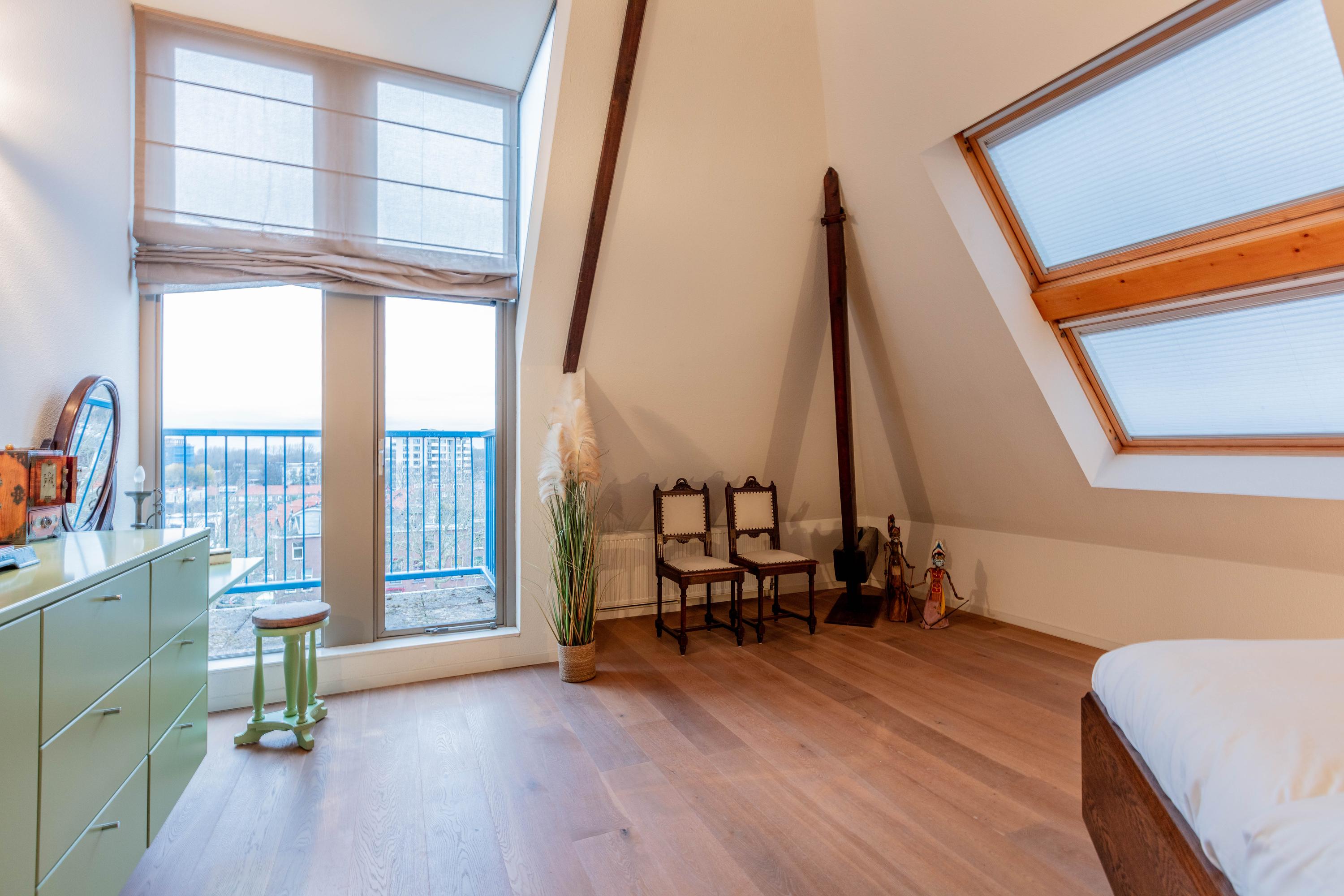 Deze kamer beschikt over een dakvenster en toegang tot een eigen balkon.