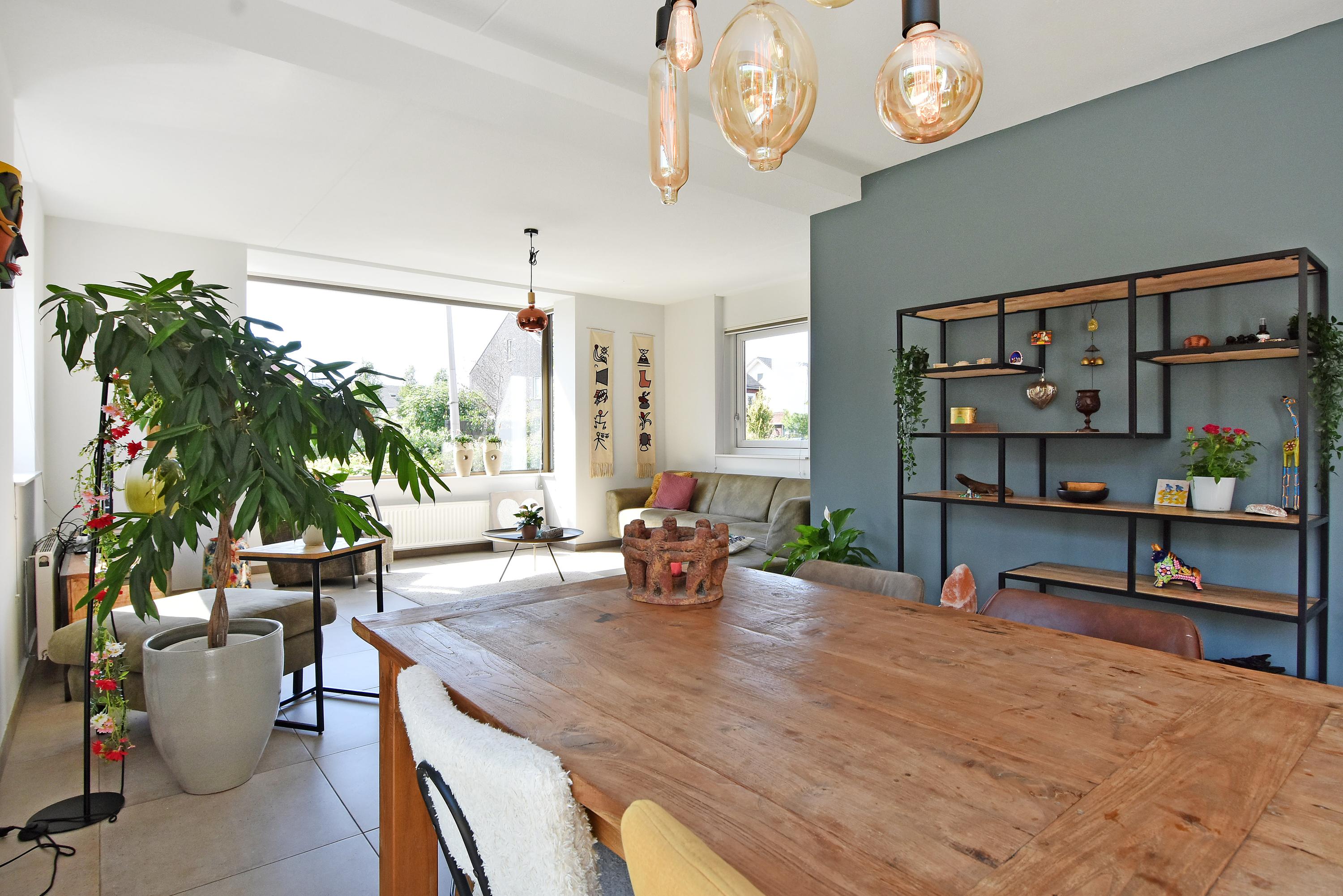 The spacious hall leads into the attractive, light-filled living room. The large sliding doors create a beautiful connection with the sunny garden. The garden has been recently landscaped and features lots of greenery, a lawn, a sunny terrace, a veranda and a canopy: a wonderful place to enjoy and relax all year round. The garden borders the water.