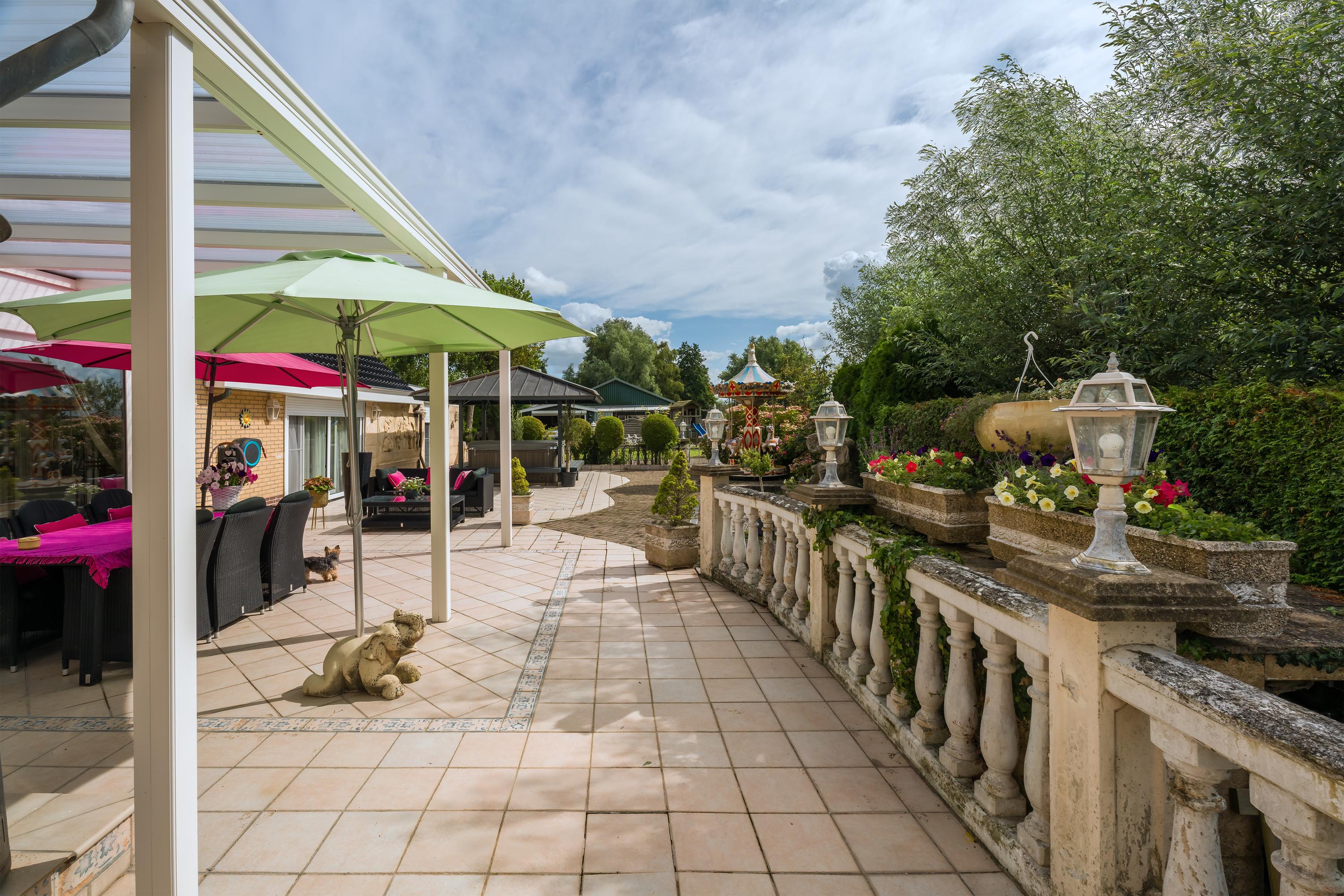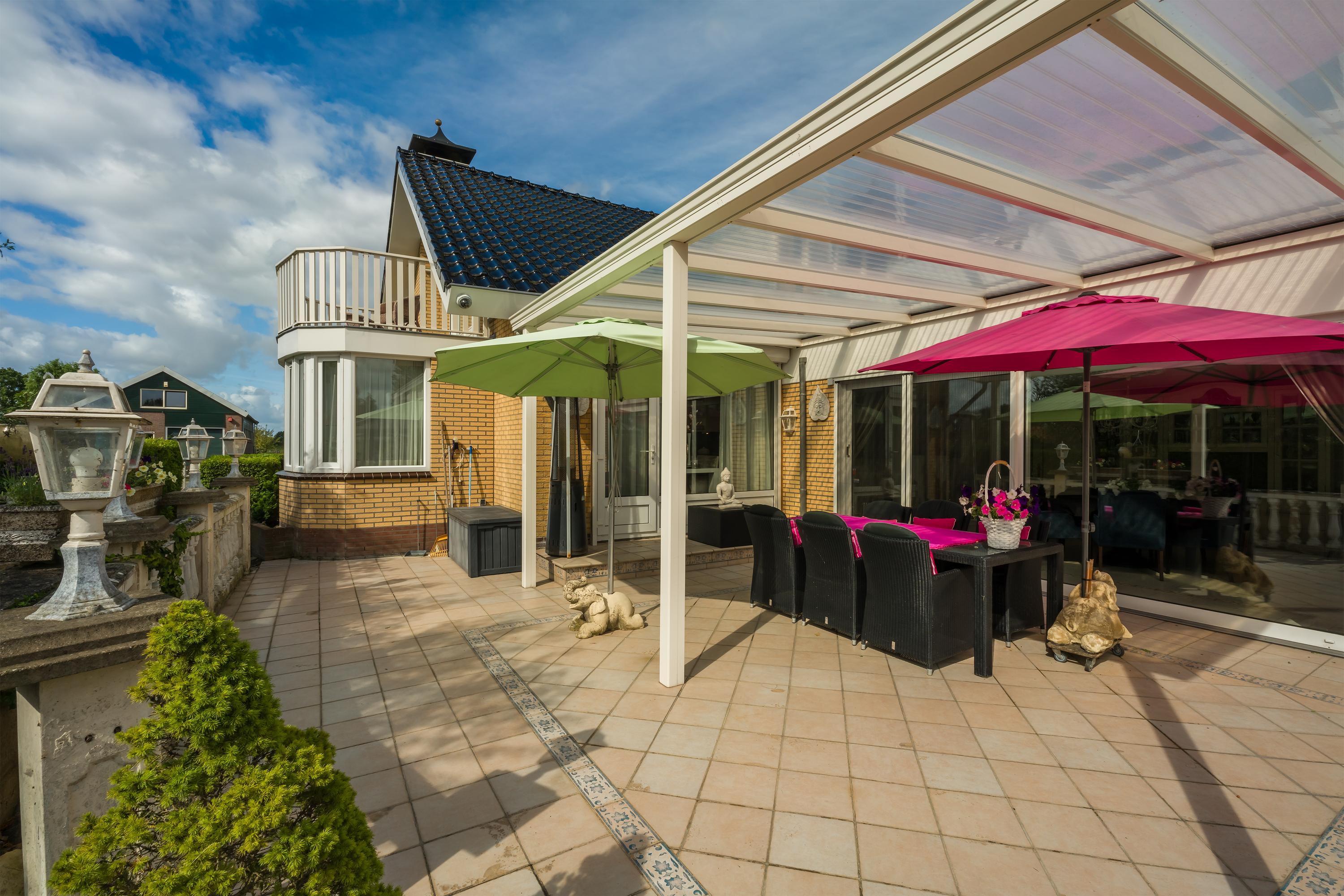 A beautifully enclosed private domain is hidden behind this cleverly positioned detached house with a guesthouse. The entire property exudes a grand vibe as soon as you drive up. Your eyes are drawn to the white iron gates that accentuate the green plot as you approach the gate. Your journey continues along the asphalt driveway, turning around at the back of the property and parking on the roundabout. From here, you can admire the American-style bungalow with its piled terrace, the spacious guesthouse, the commercial space, and the animal enclosures, where flamingos once graced the North Holland landscape.