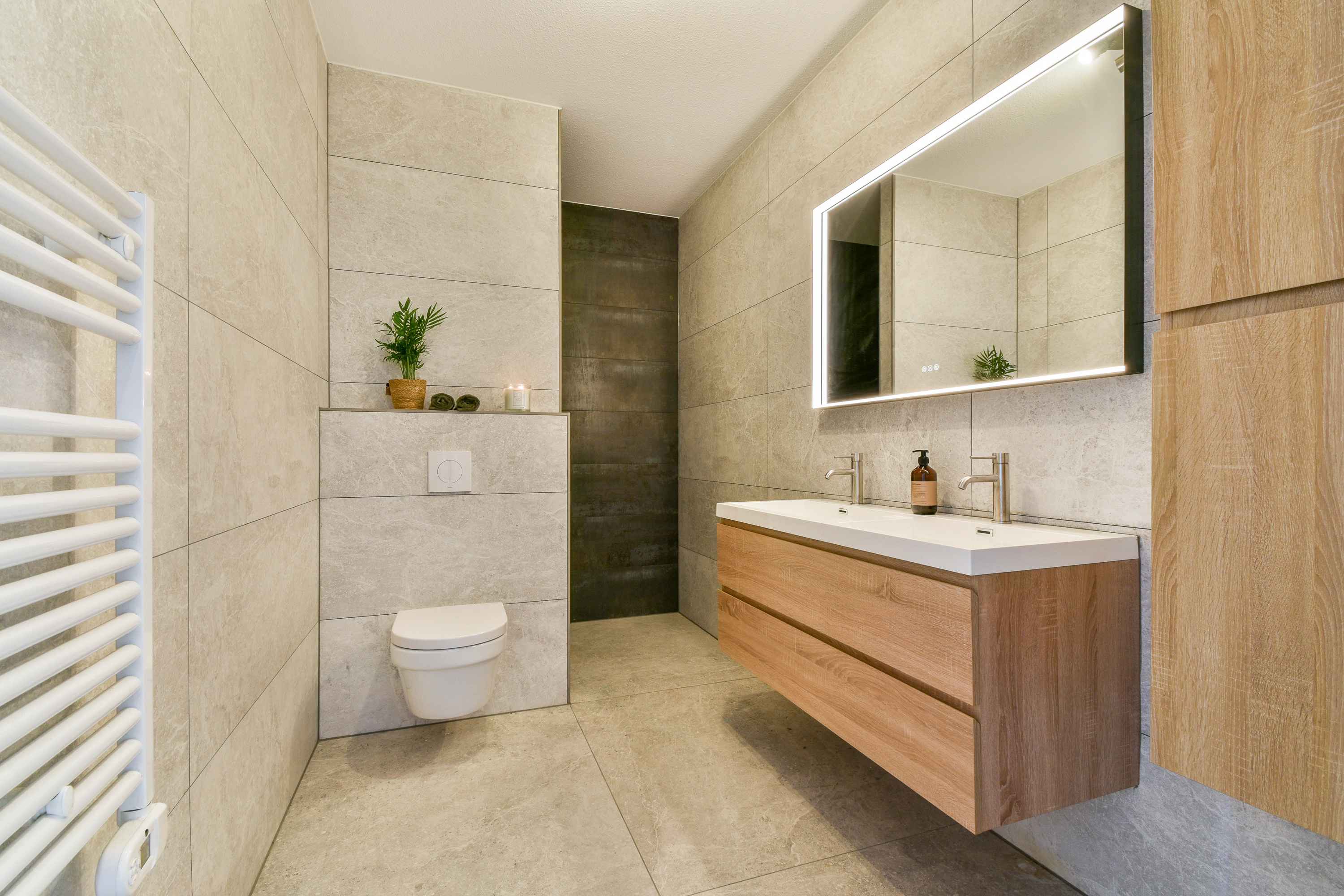 Bathroom 1 (~1.90 x 3.60 m): Fully tiled luxury bathroom with: