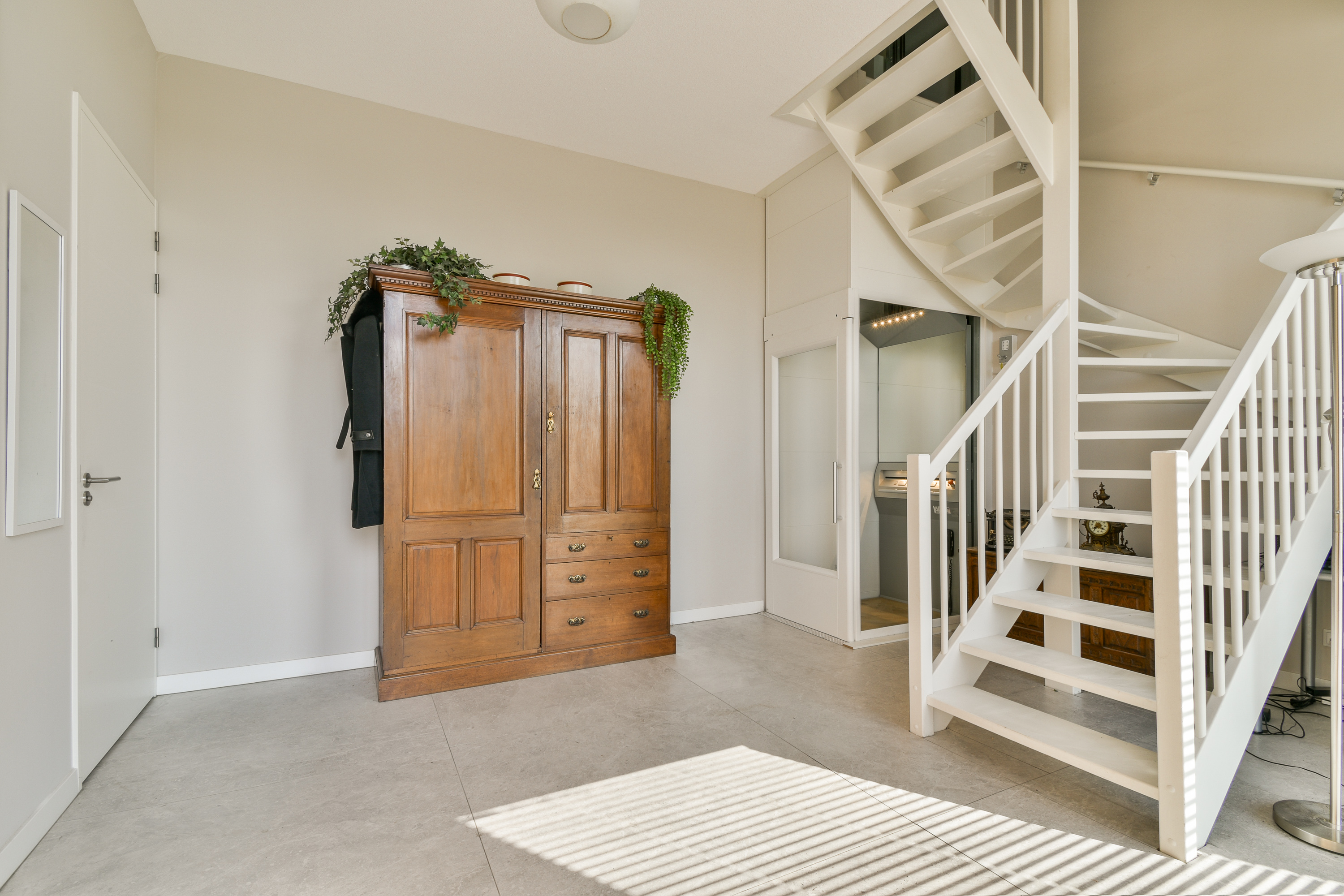 Entrance: Spacious hallway with stairs, lift access, indoor storage room, and guest toilet.
