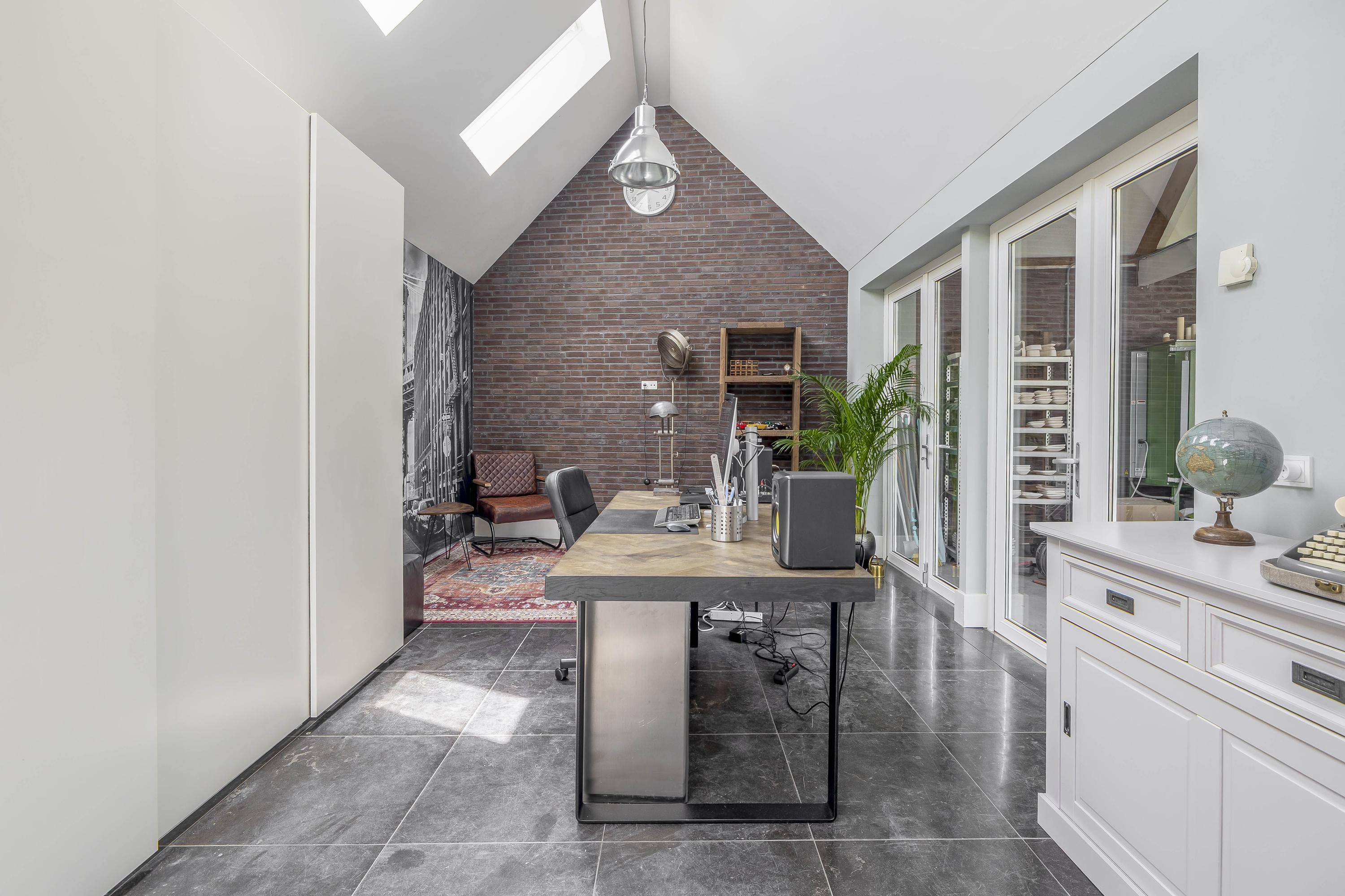 - Thanks to the living area of no less than 381 m², divided over the house, apartment in the basement, studio and office in the outbuilding, there are enormous possibilities for use of this unique object.