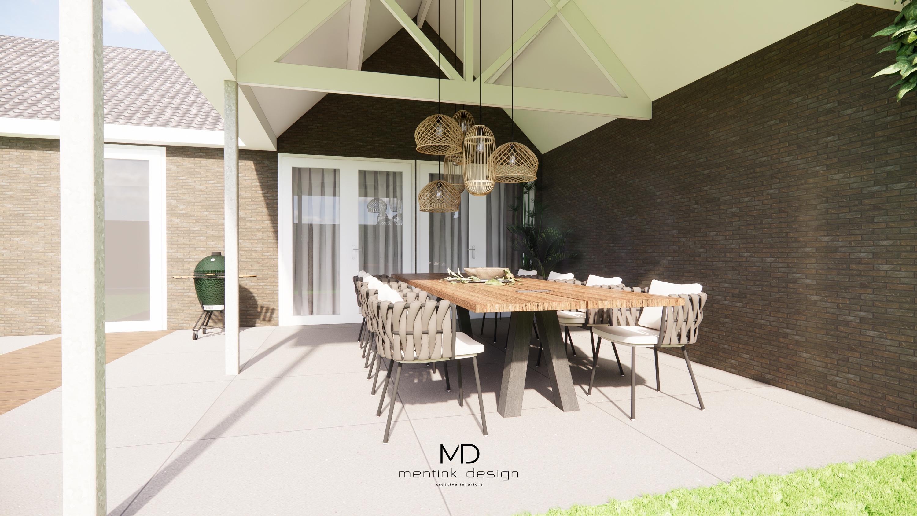 In the rear part of the outbuilding is an attractive office or garden room. Thanks to the visible ridge construction and four Velux skylights, this room is wonderfully spacious and light. Double French doors give direct access to the adjacent patio cover, making this room ideal for work, relaxation or hobby.