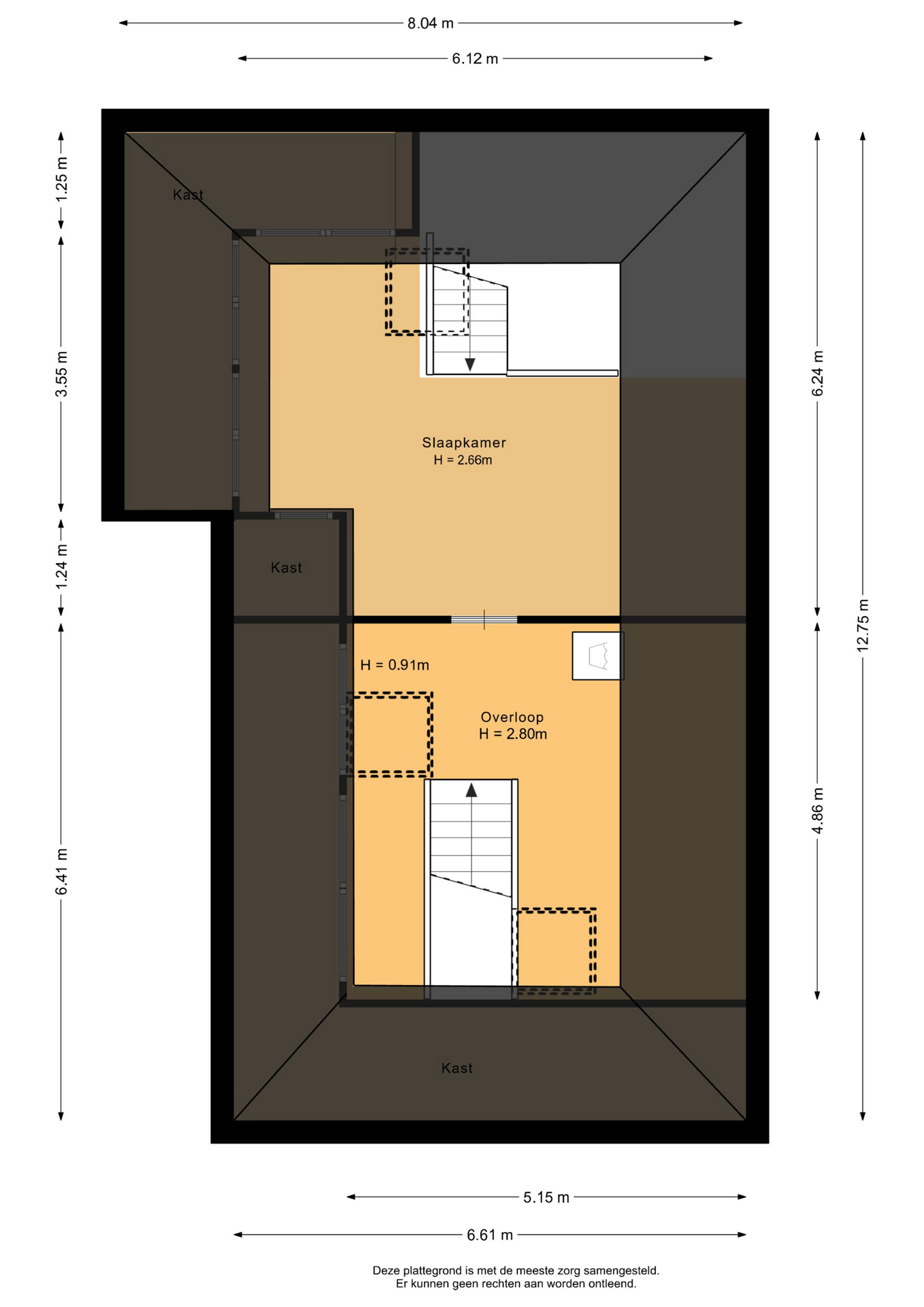 Furthermore, this room has a practical built-in closet with water connection and drainage, a generous closet wall and a staircase that provides access to a surprisingly spacious attic.