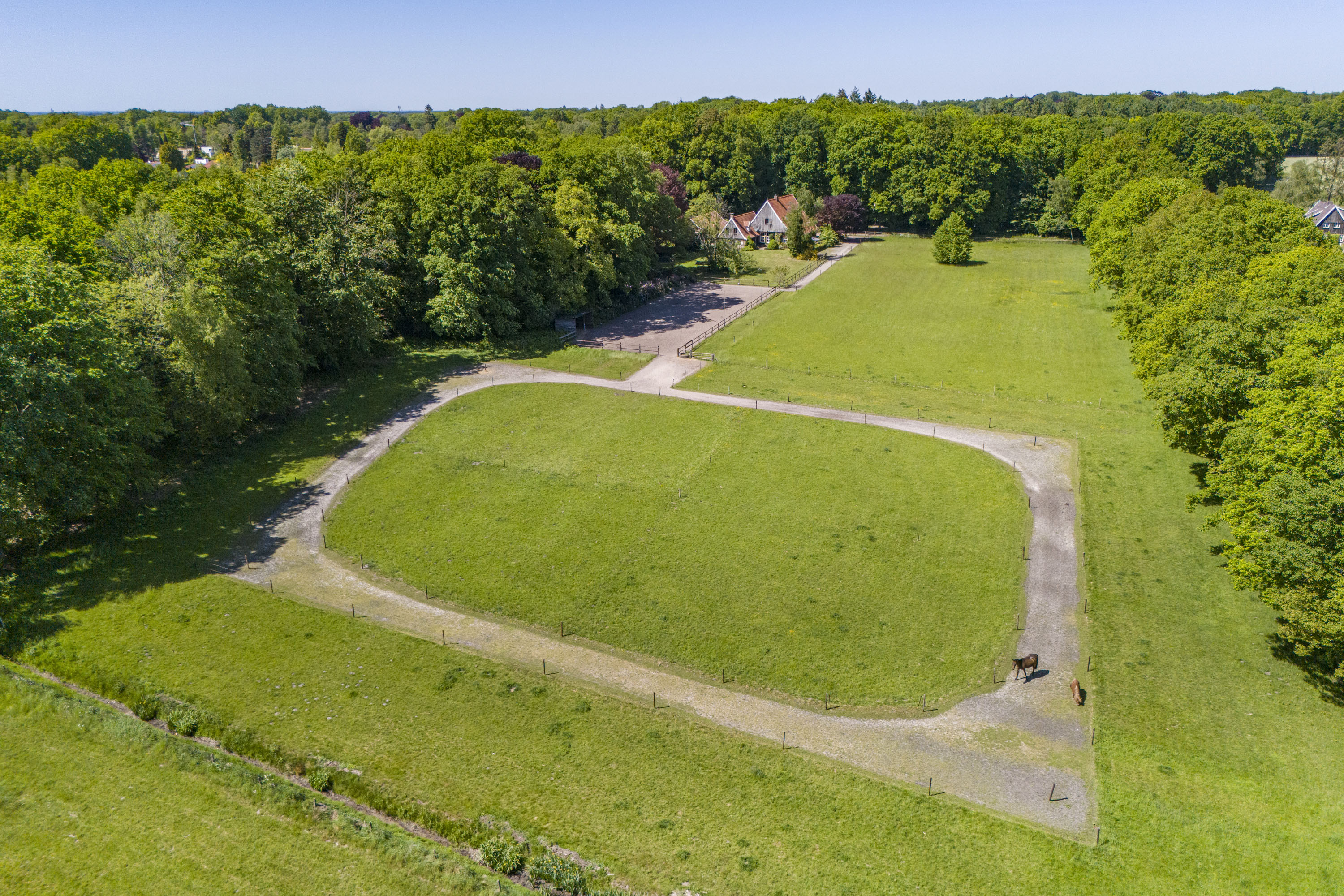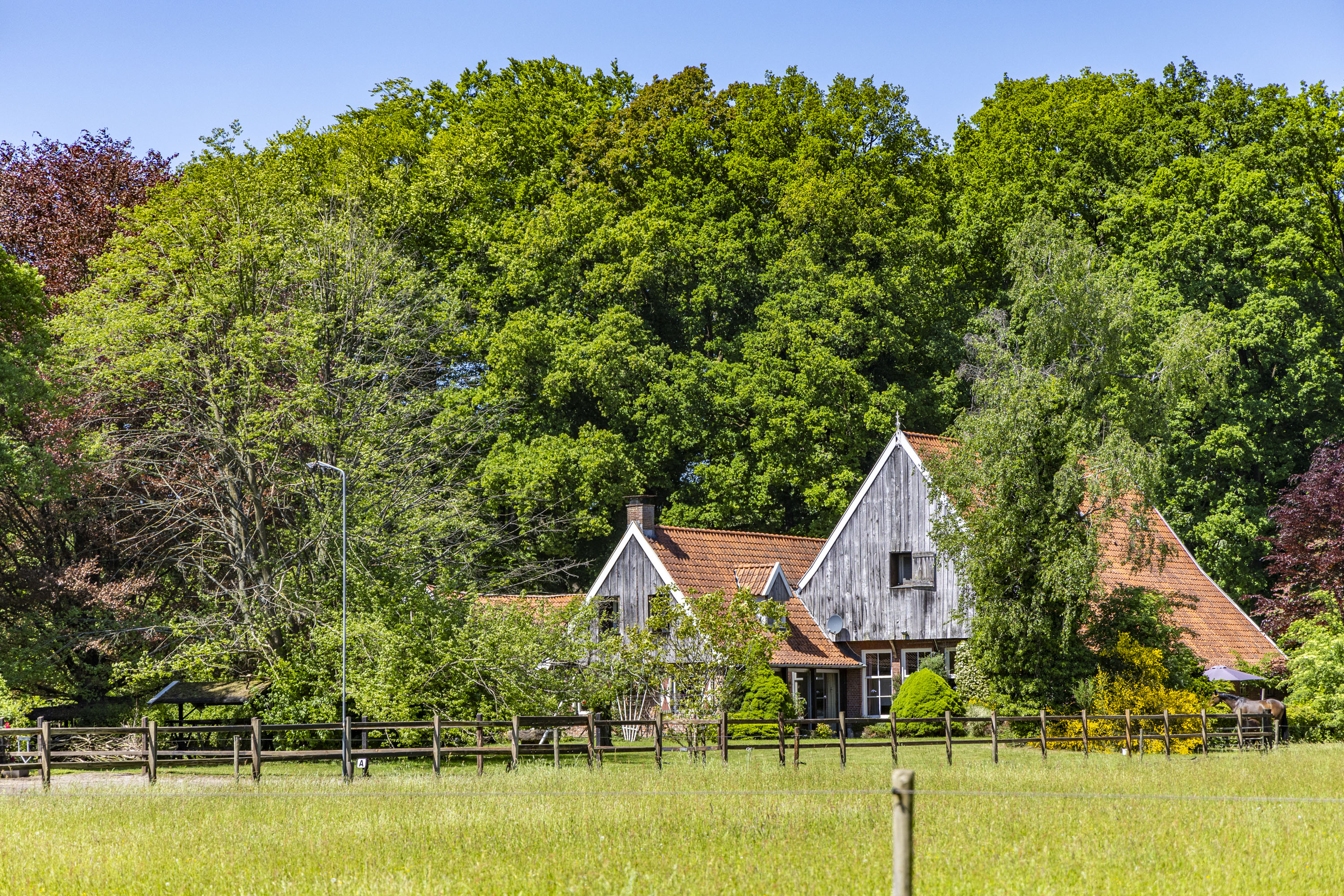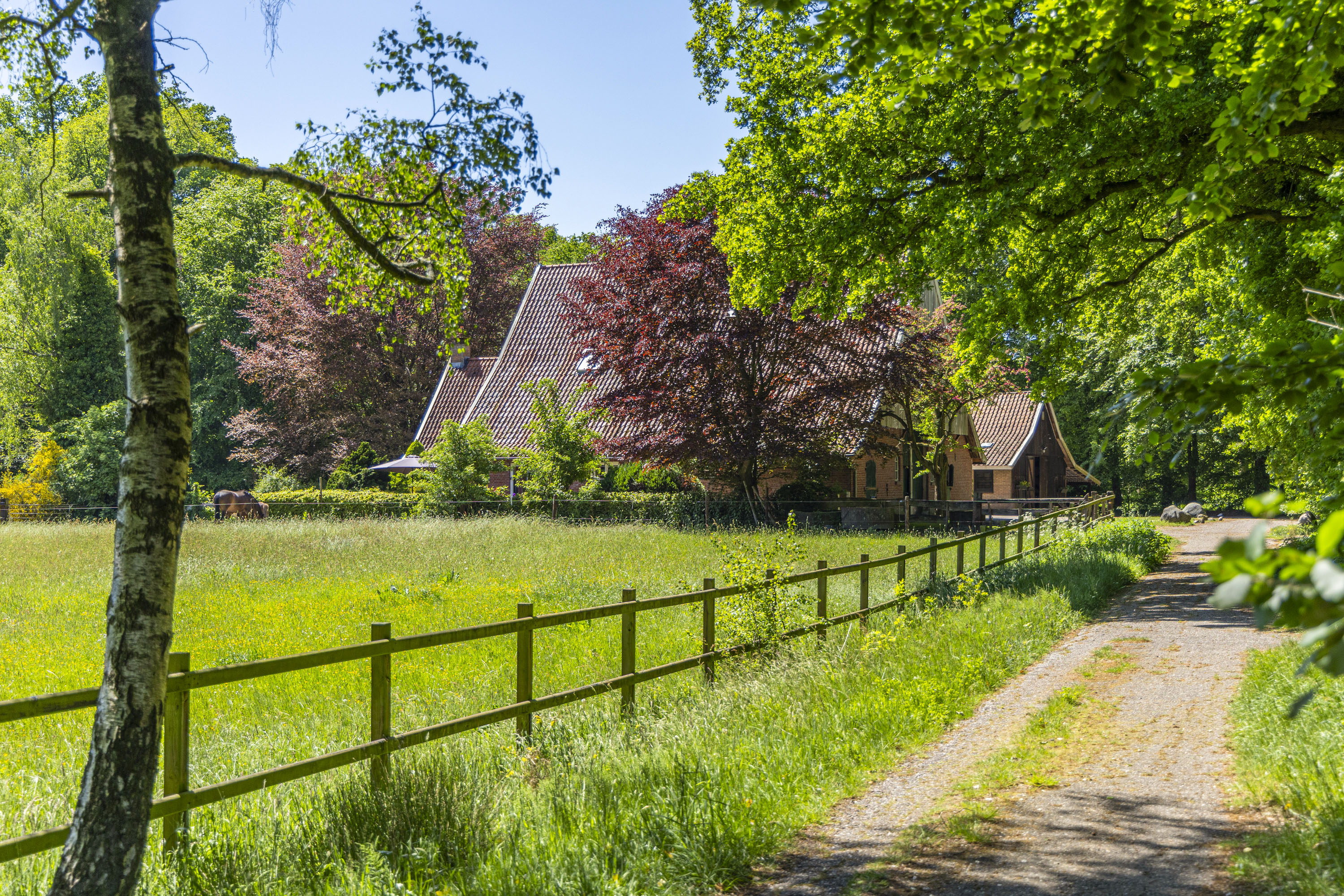 Estate Wienenbleek spans approximately 7.24 hectares, consisting of around 4.5 hectares of meadows, bordered by about 2.4 hectares of forest and hedgerows. The meadows, which include a riding arena, are ideal for horses or other livestock, but can also be left natural to serve as a beautiful transition to the forest.