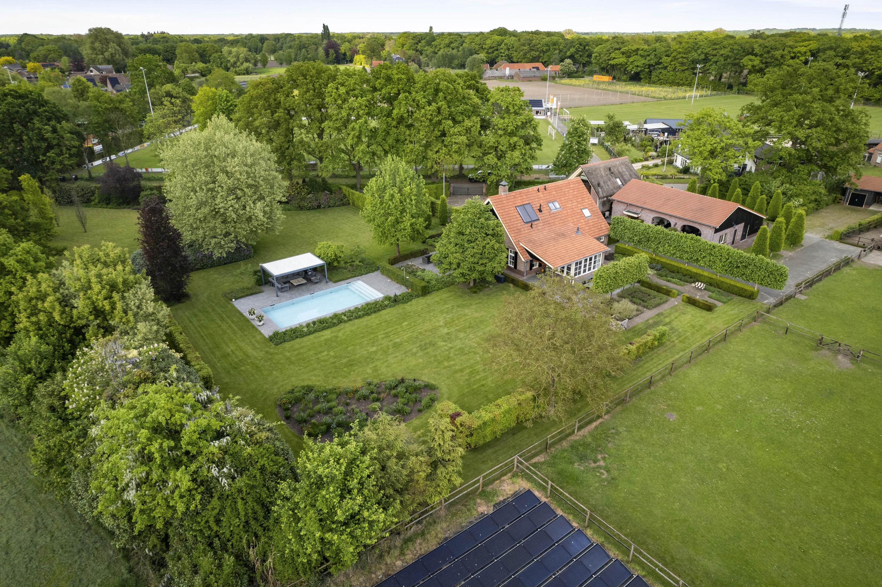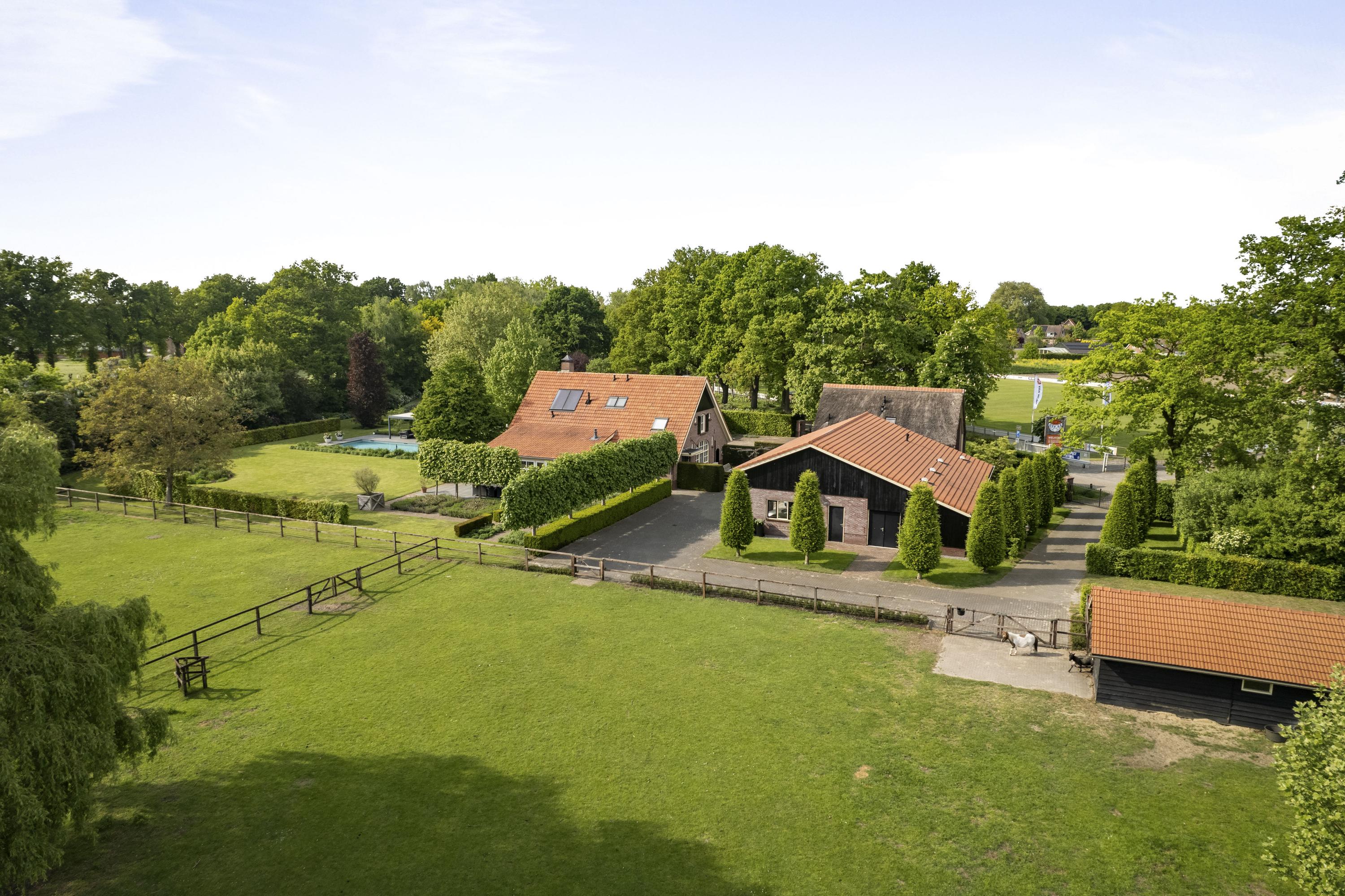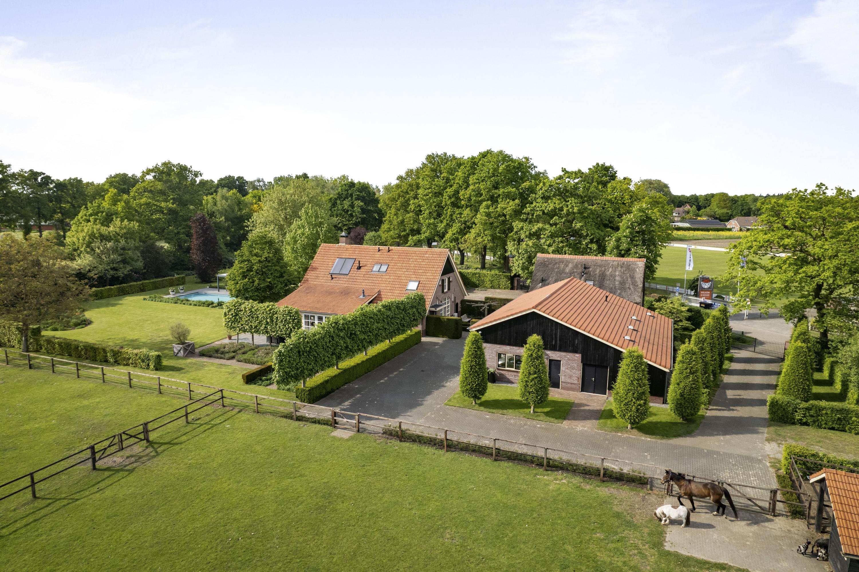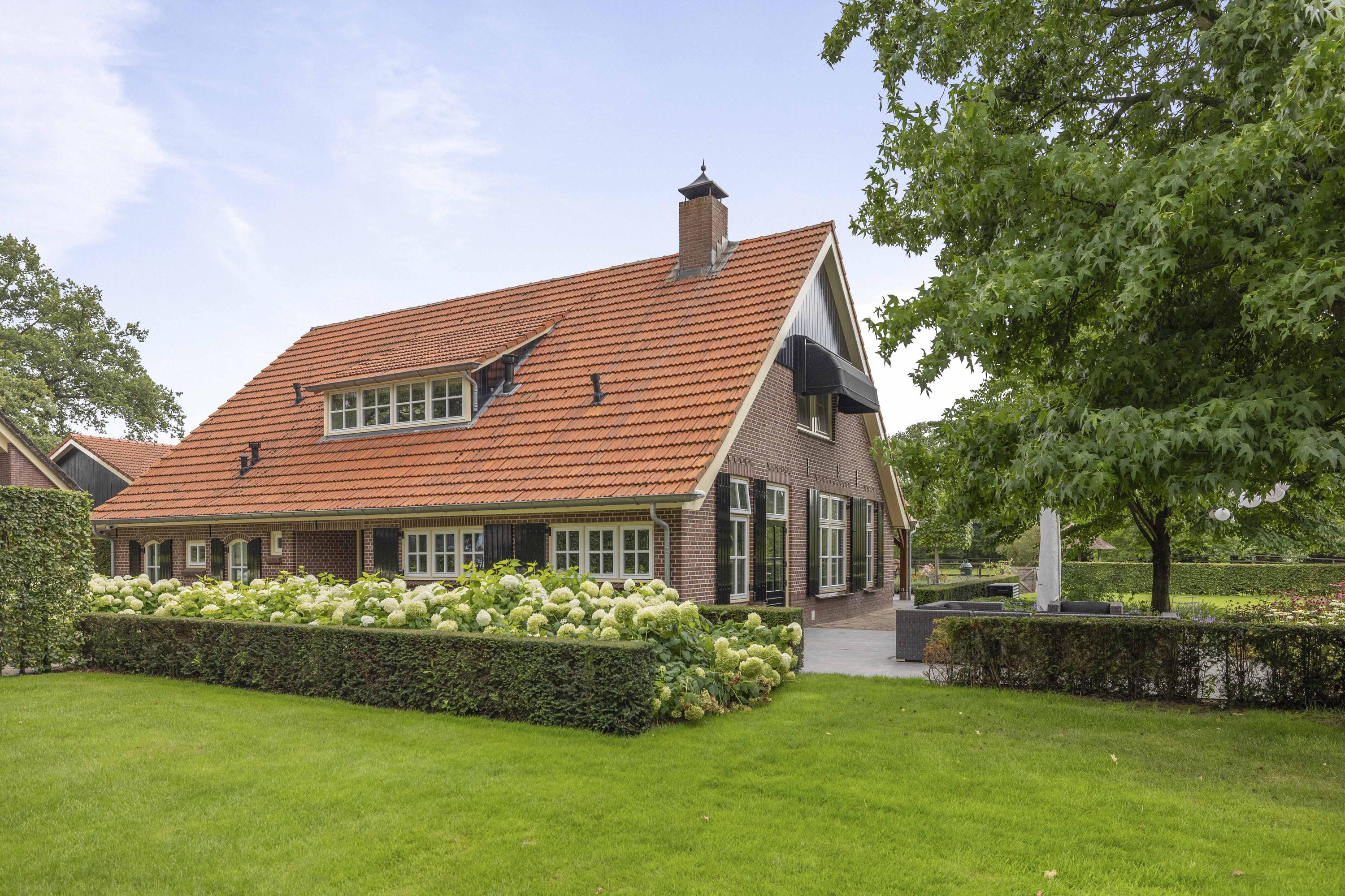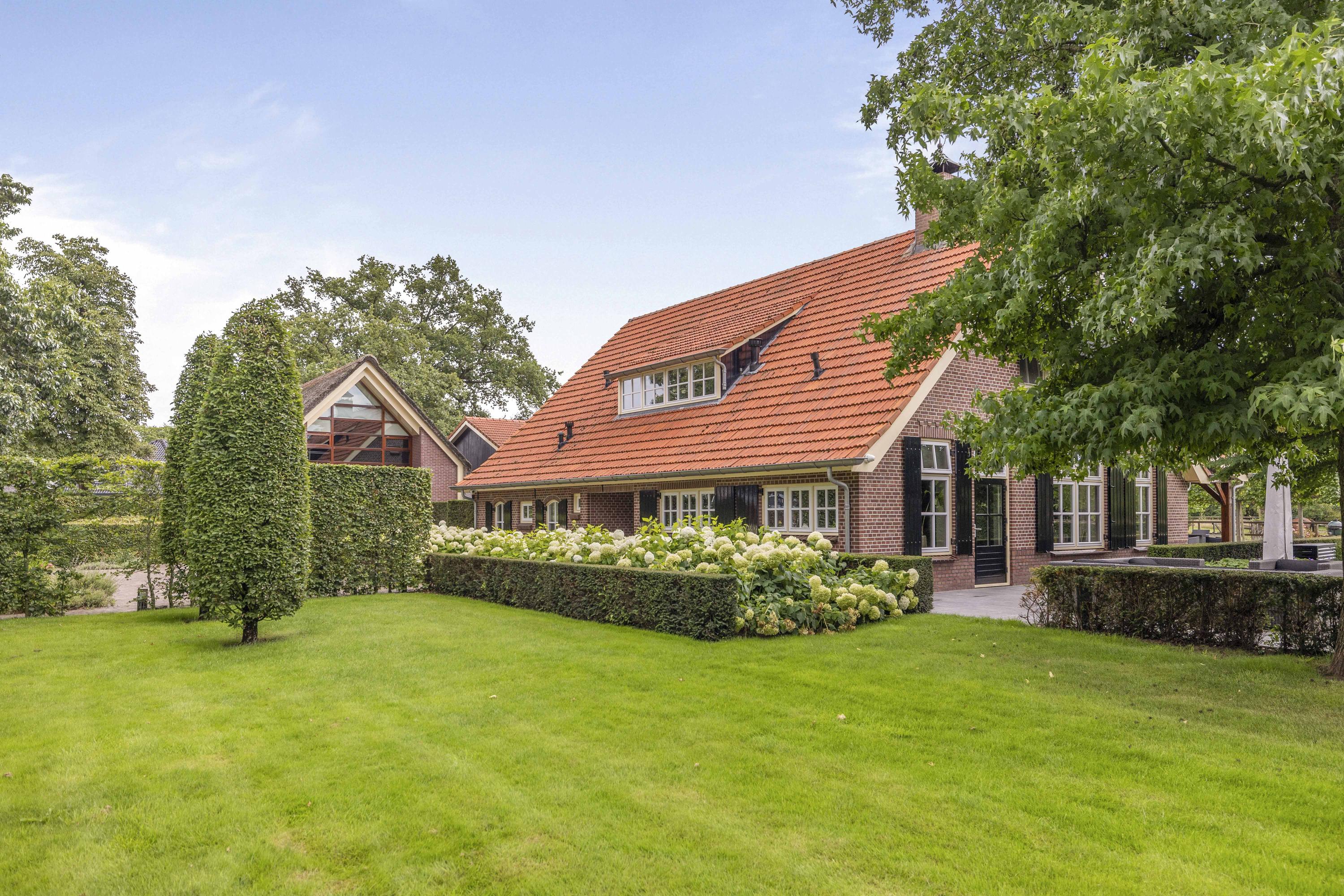 On the edge of the picturesque village of Geesteren stands this magnificent country house with guest house and office space—a place where tradition and high-end living meet. This extremely luxurious ensemble covers a generous plot of over 1.9 hectares, consisting of impressive ornamental gardens, a beautiful ‘paddock paradise’ and the ancient orchard.