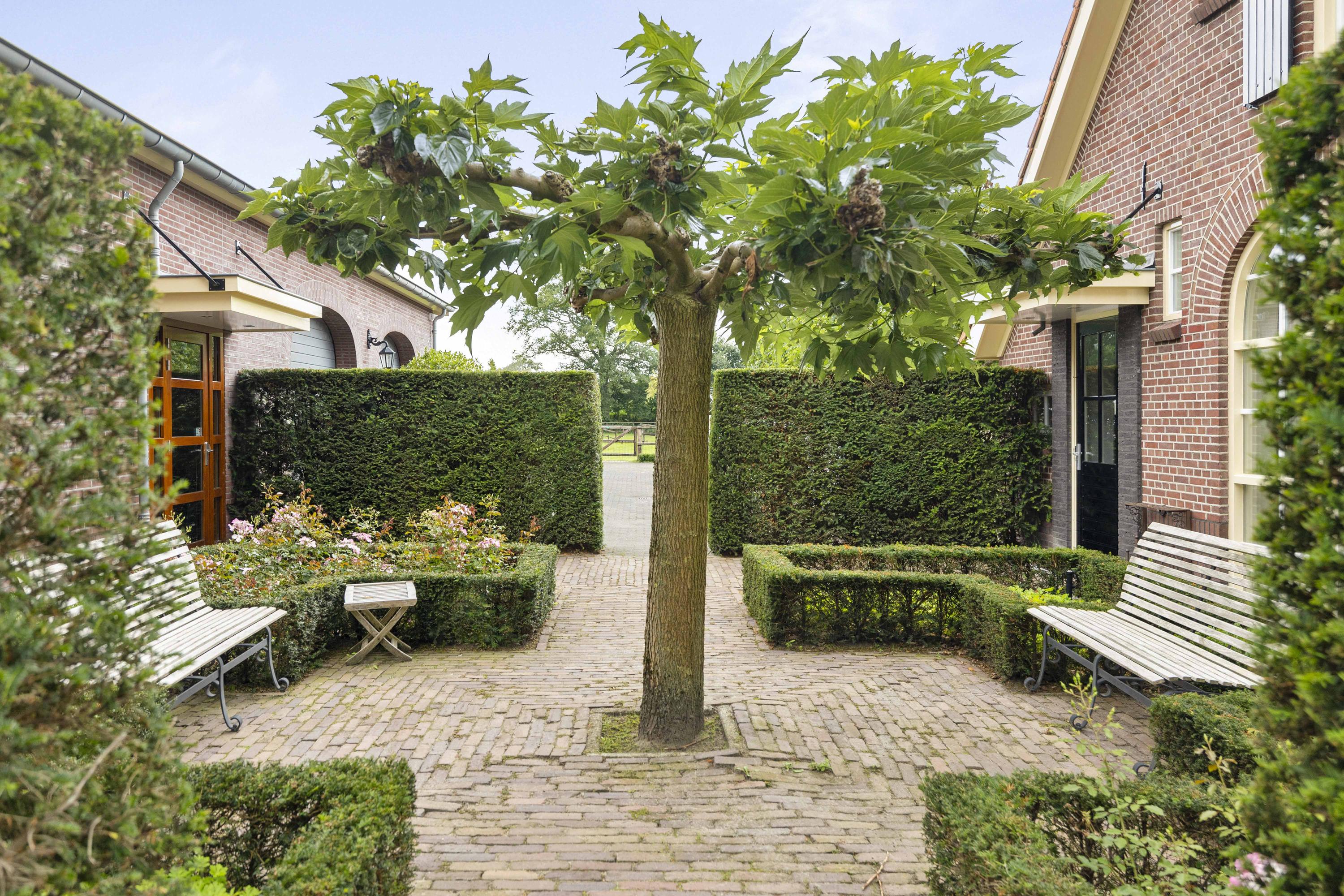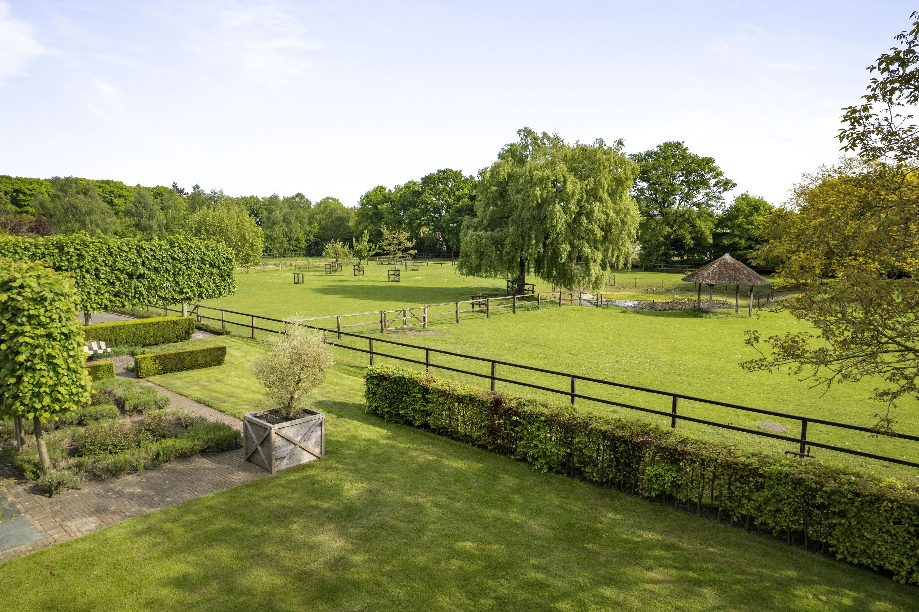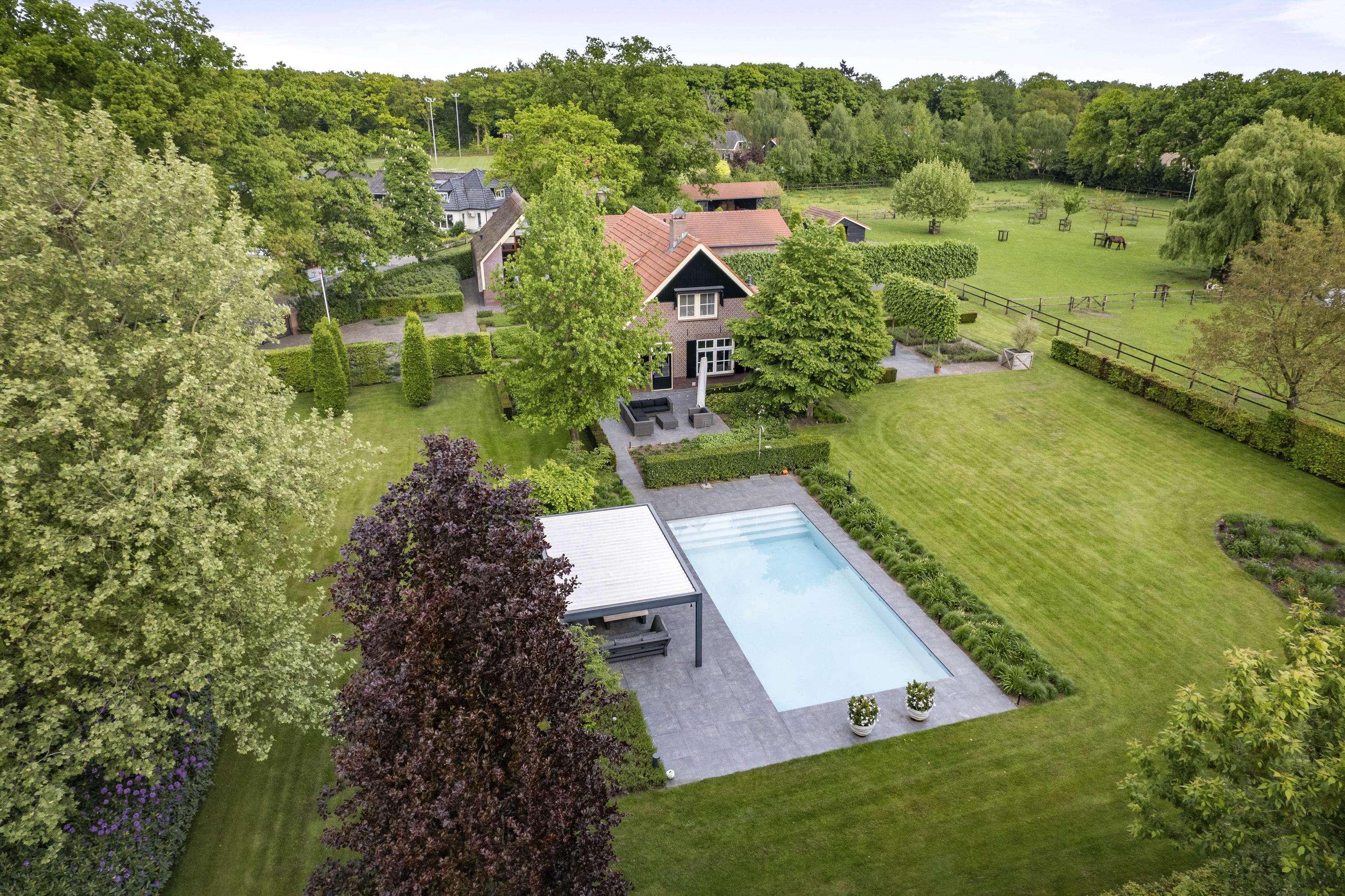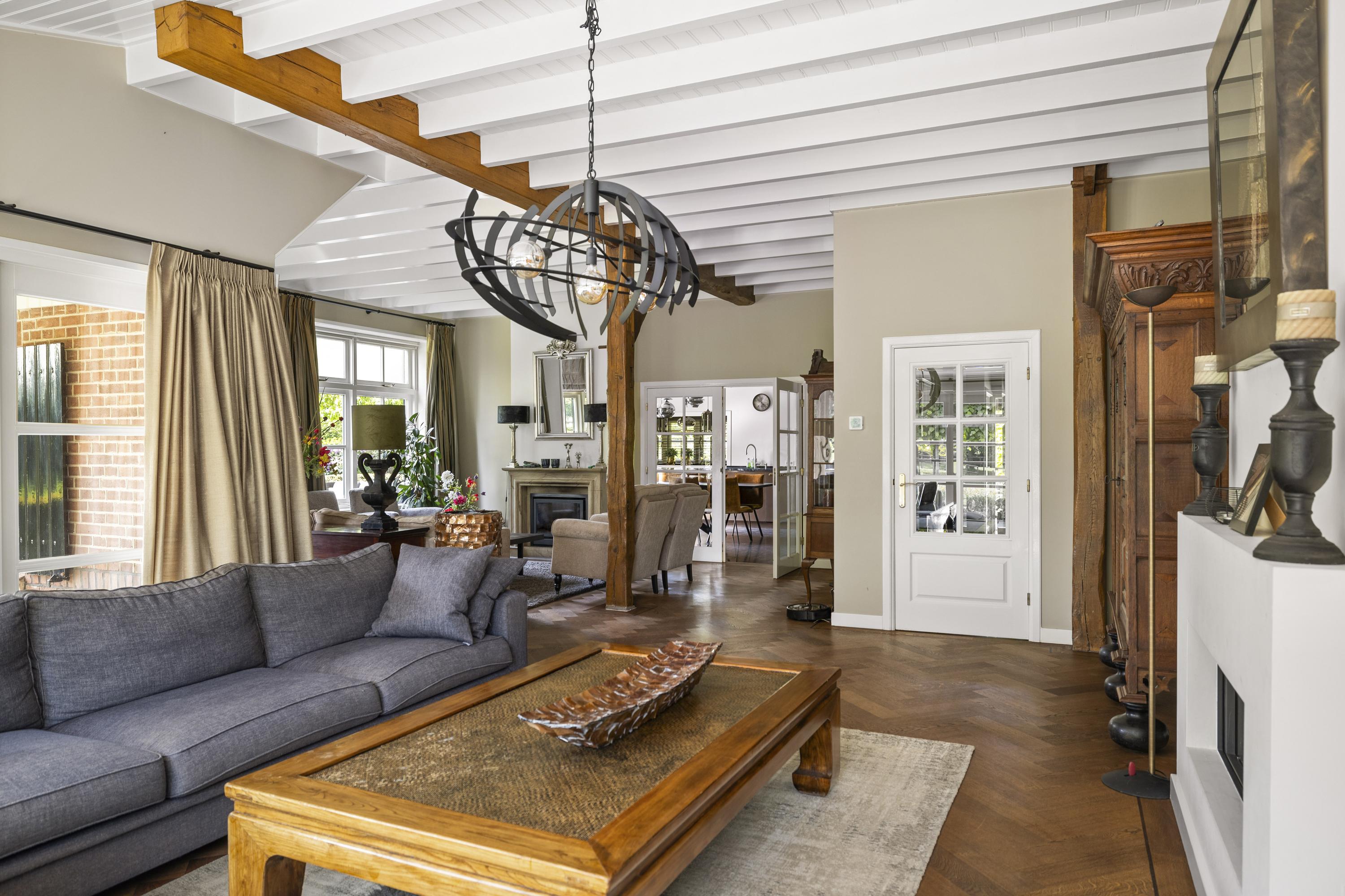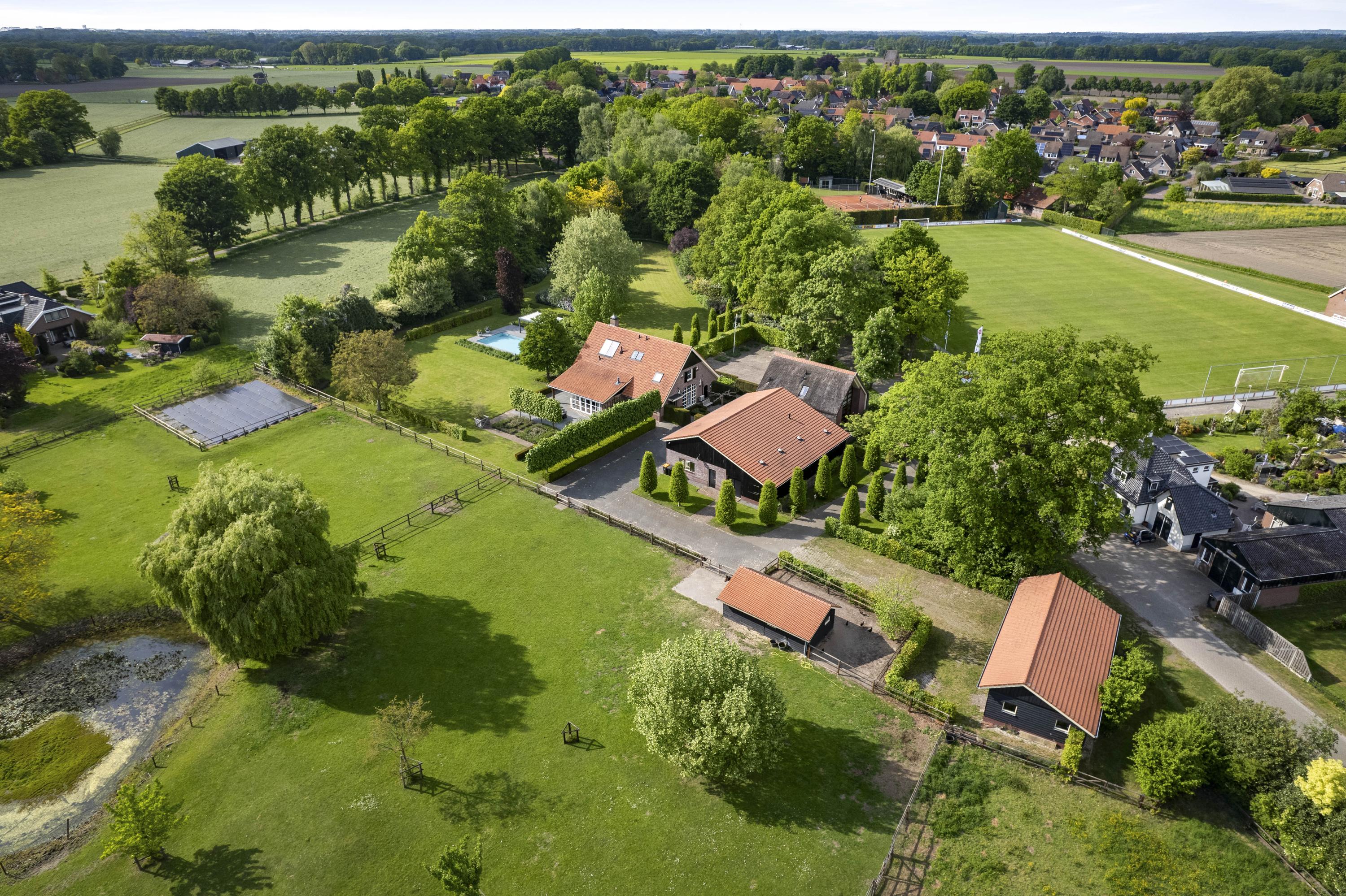 On the edge of the picturesque village of Geesteren stands this magnificent country house with guest house and office space—a place where tradition and high-end living meet. This extremely luxurious ensemble covers a generous plot of over 1.9 hectares, consisting of impressive ornamental gardens, a beautiful ‘paddock paradise’ and the ancient orchard.