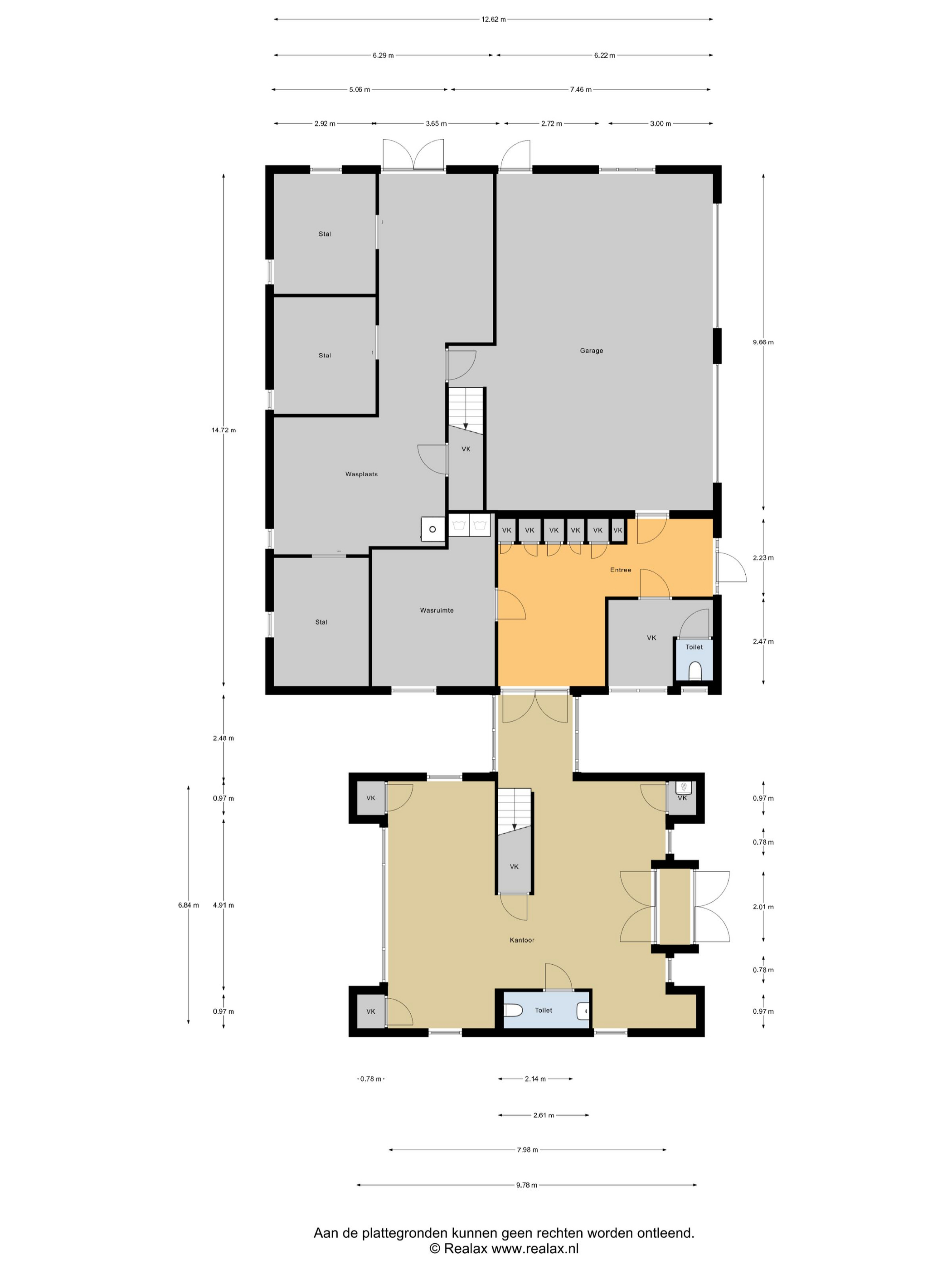 The entrance is located both at the front and in the stables. From the stable complex, there is a bright hall with a series of attractive built-in cupboards. On the left is a storage room and the toilet, and at the rear is the large laundry room with connections for a washing machine and dryer.
