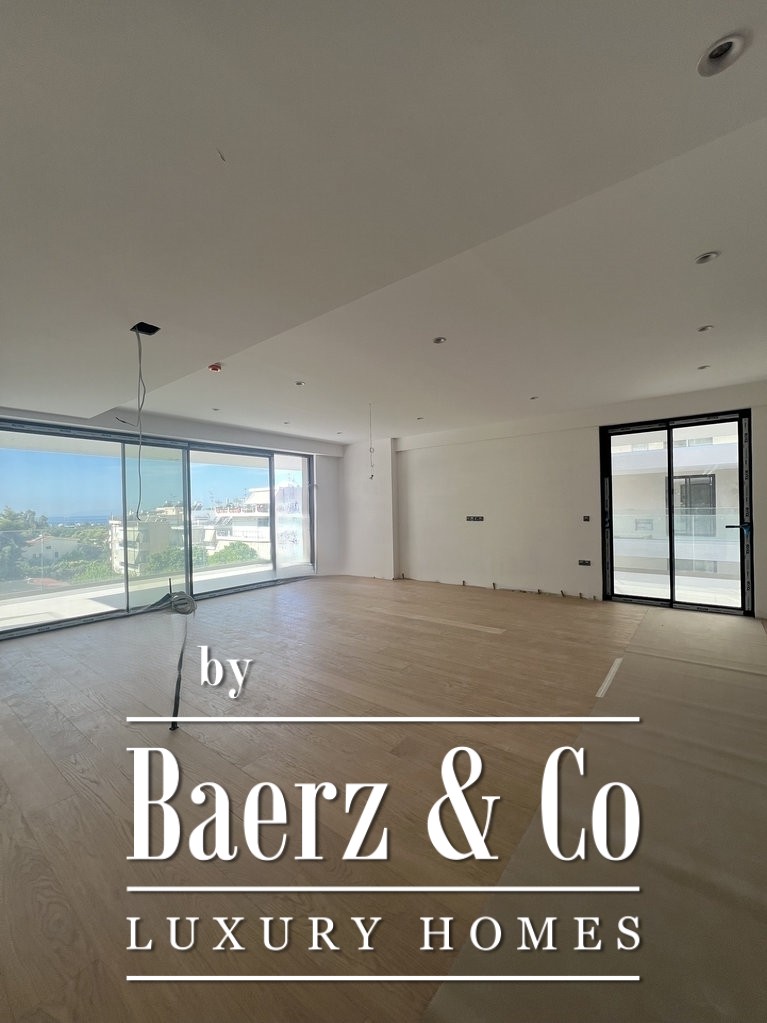 Apartment Glyfada offers a refined living experience in the sought after Golf area, presenting a newly built residence on the second floor with panoramic sea views. The property features 100 m² of understated contemporary design, including an open plan living space that connects the bright lounge with a modern kitchen, creating a welcoming atmosphere throughout.