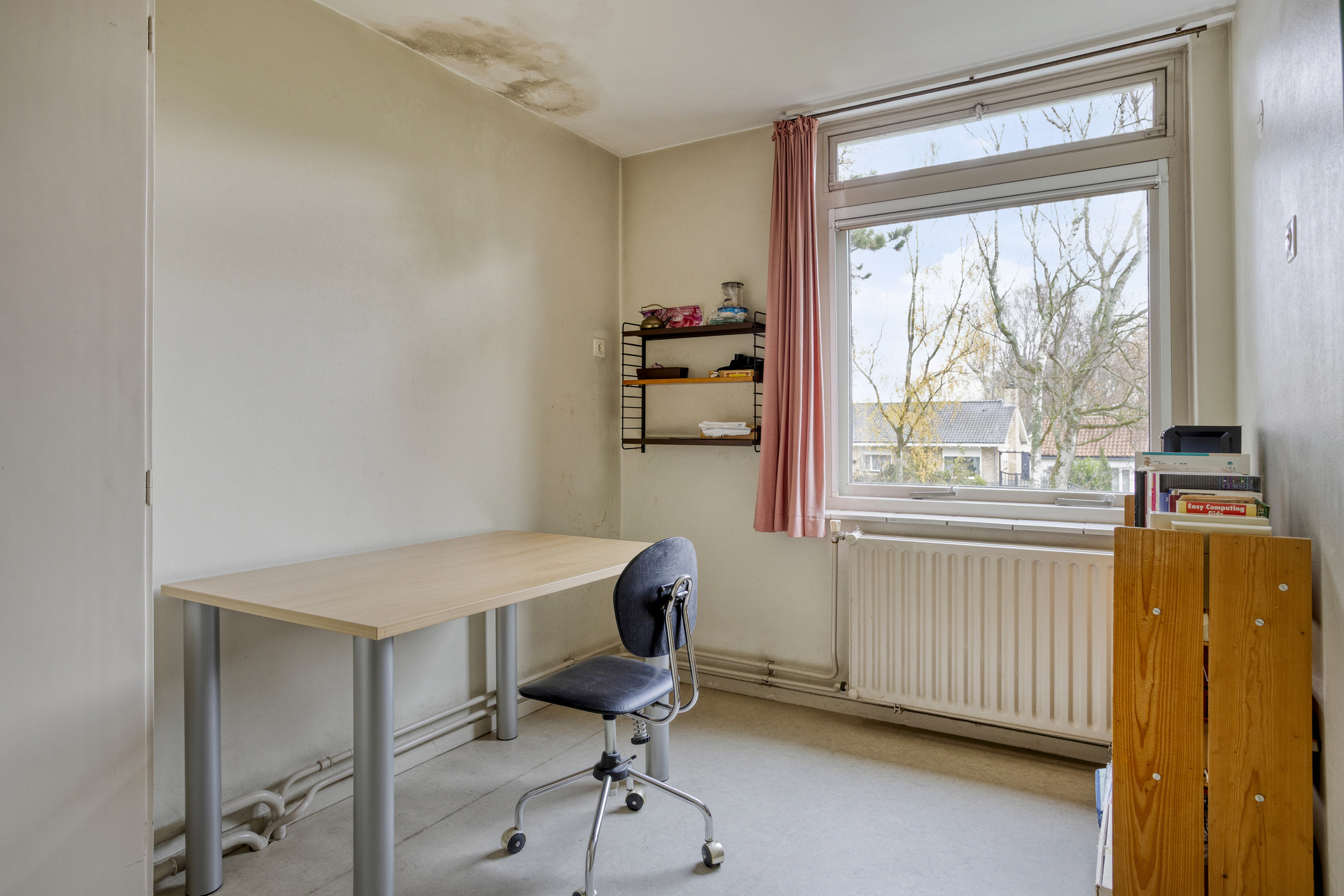 Study, plastered walls, carpeted floor, plastered ceiling;