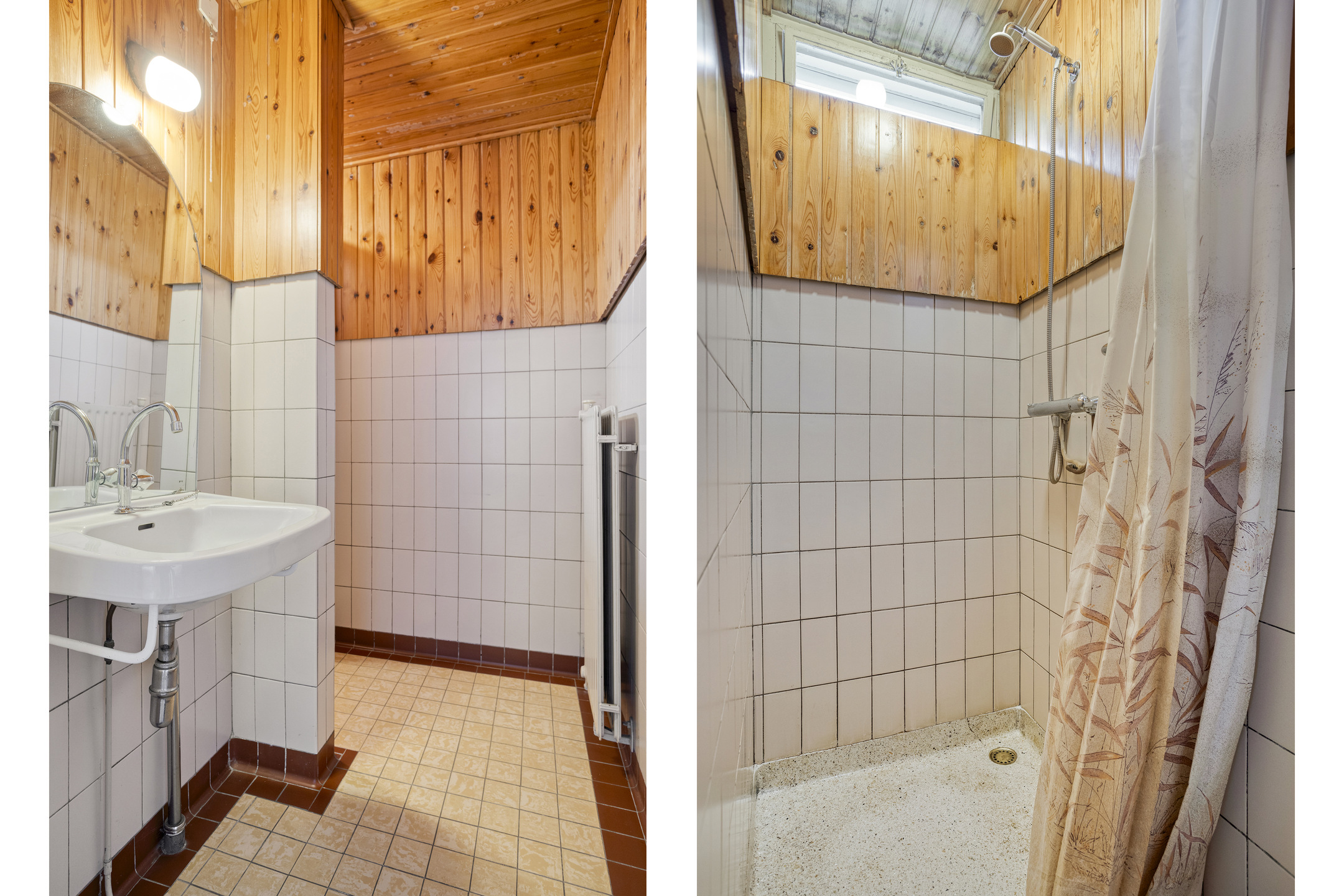 Fully tiled toilet with washbasin;