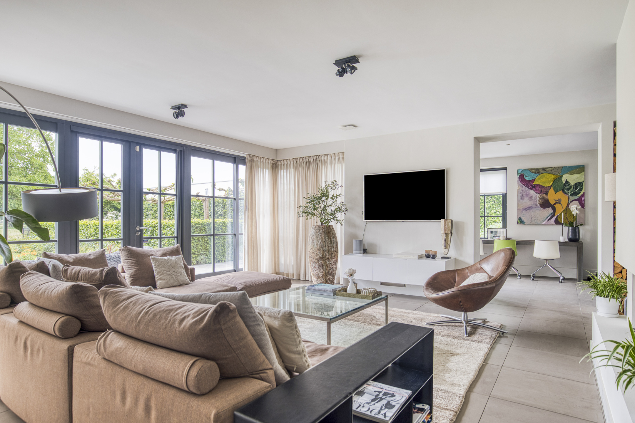 Detached villa Huijbergen offers an extraordinary blend of comfort, refined finishes, and future-ready living in a serene green setting. Completed in 2008, this villa provides 301 m² of living space on a 1,030 m² plot, combining intelligent architecture with understated luxury. Upon entry, light and volume set a welcoming tone. The half open living at the heart of the home looks onto the garden, with doors opening onto terraces, while a Boffi kitchen with island and integrated appliances forms the ideal setting for gatherings. Adjoining are a spacious utility room and additional storage. Across the ground floor are two distinct living areas, providing separation for relaxation, entertaining, work, or play, each with direct access to the outdoors.