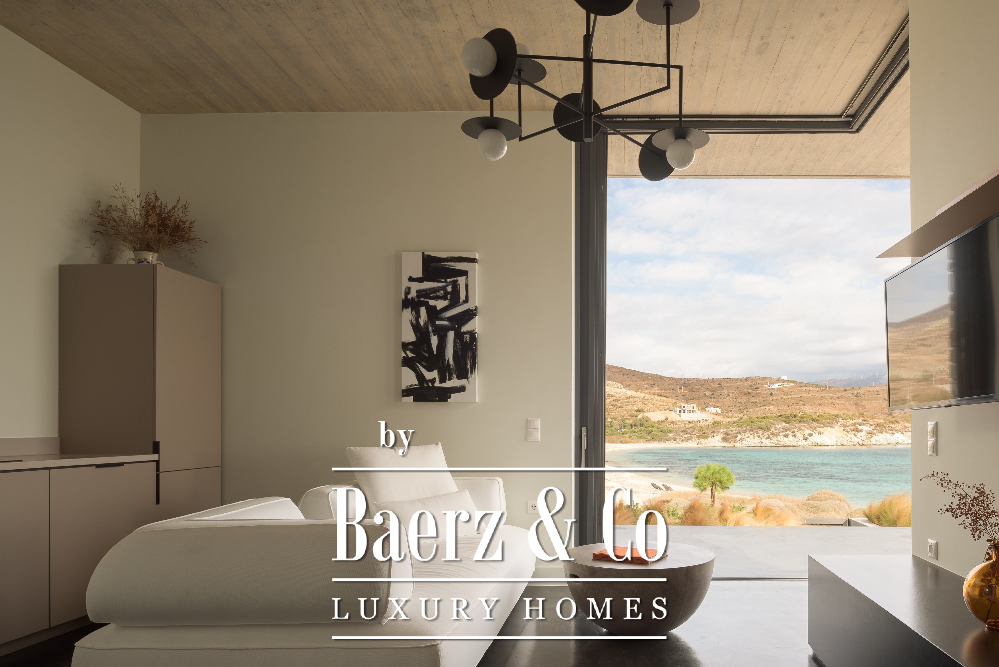 Terraces open onto the beach, yet maintain a sense of seclusion, granting unmediated access to the rhythms of the water. Every detail, from air conditioning throughout to smart televisions and espresso machines, supports a relaxed yet sophisticated lifestyle. The beachfront setting offers both sanctuary and immersion in Karystos’ natural beauty, with local vineyards, ancient sites, hiking trails, and windsurfing close by. This luxury villa for sale in Karystos is ideal as a private refuge, a holiday residence, or a considered investment—delivering Mediterranean living in its purest form.