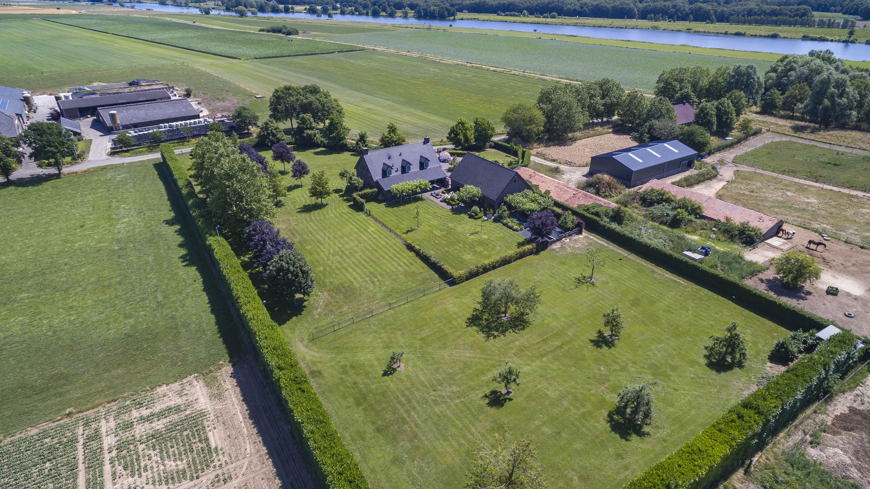 The villa immediately stands out with its distinctive shutters and unique façade colour – a true eye-catcher in Kessel. Elevated on a terp, the property is even visible from the opposite side of the river Maas.